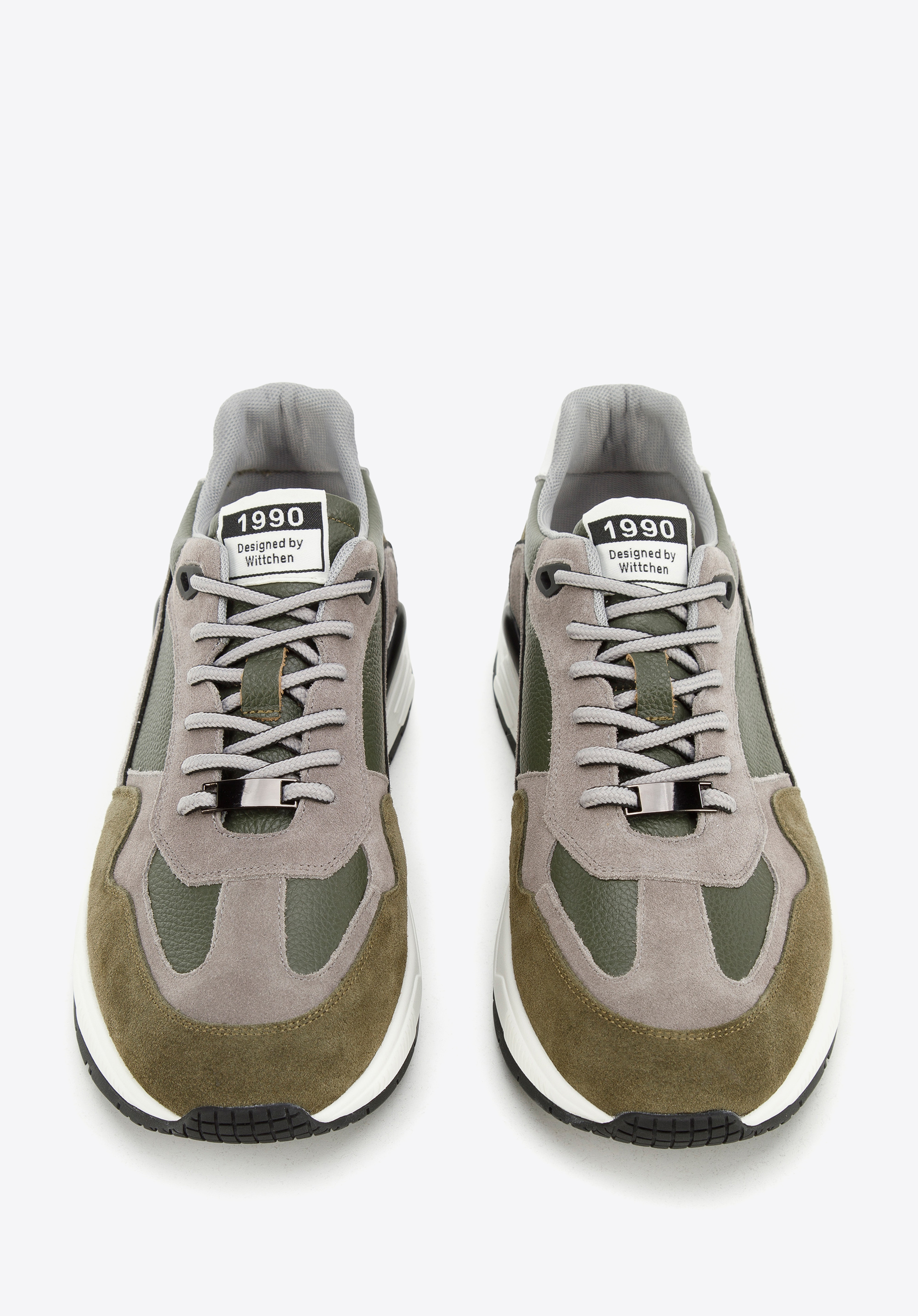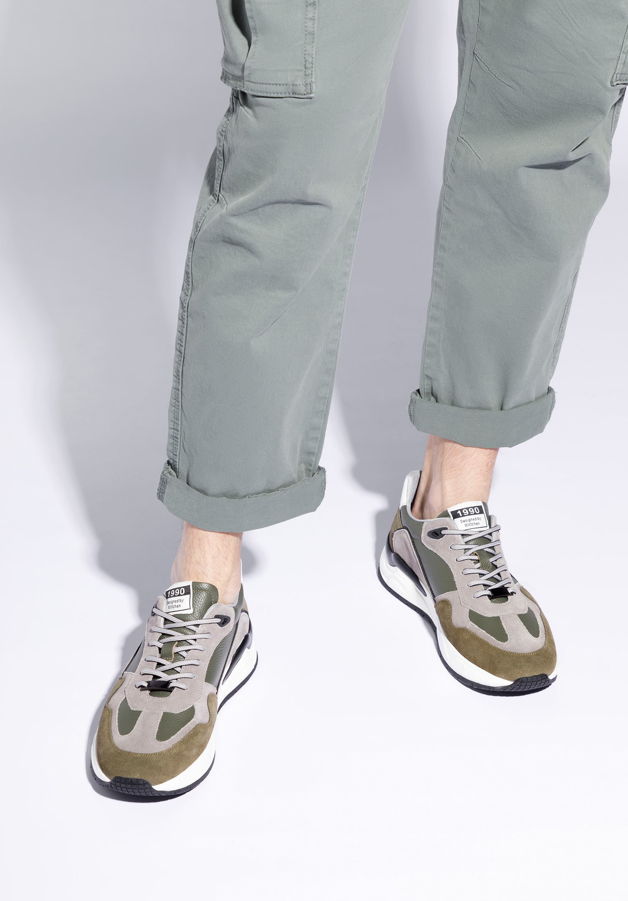 Adidași pentru bărbați din piele cu inserții din piele intoarsă verde - gri