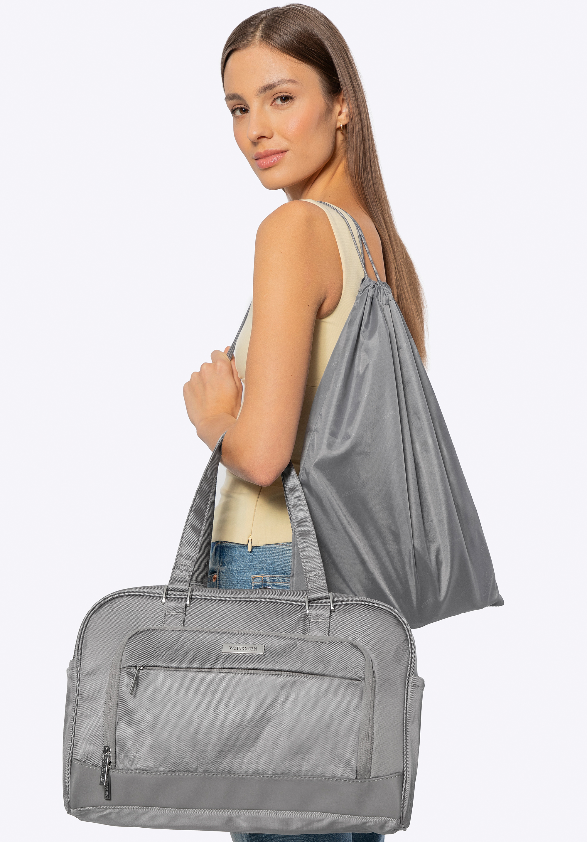 Bagaj de mână compact și funcțional gri-deschis