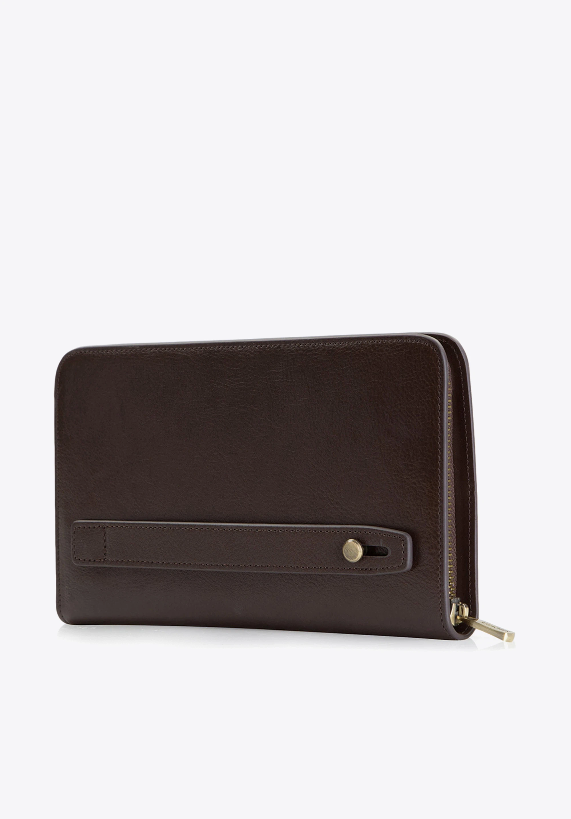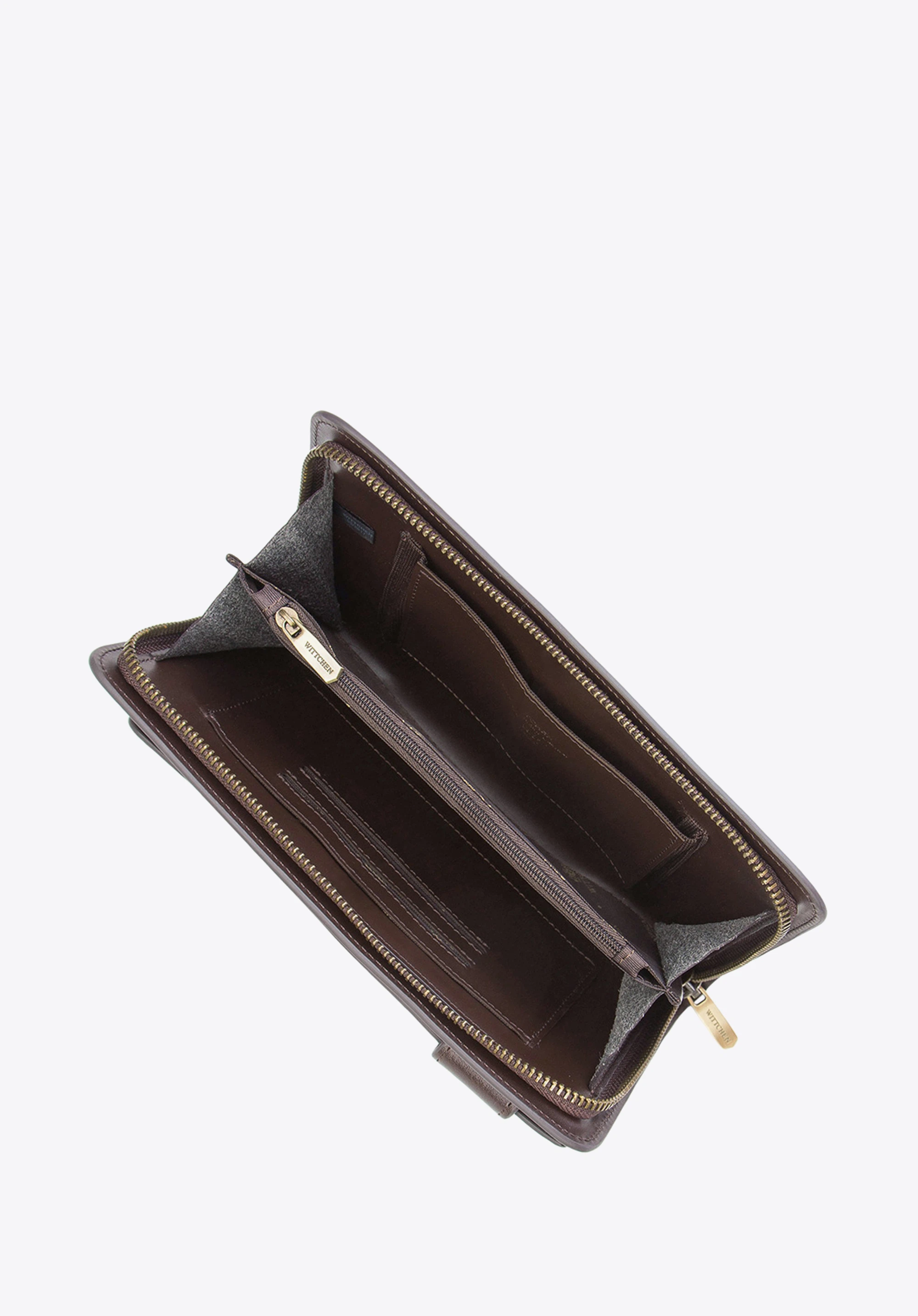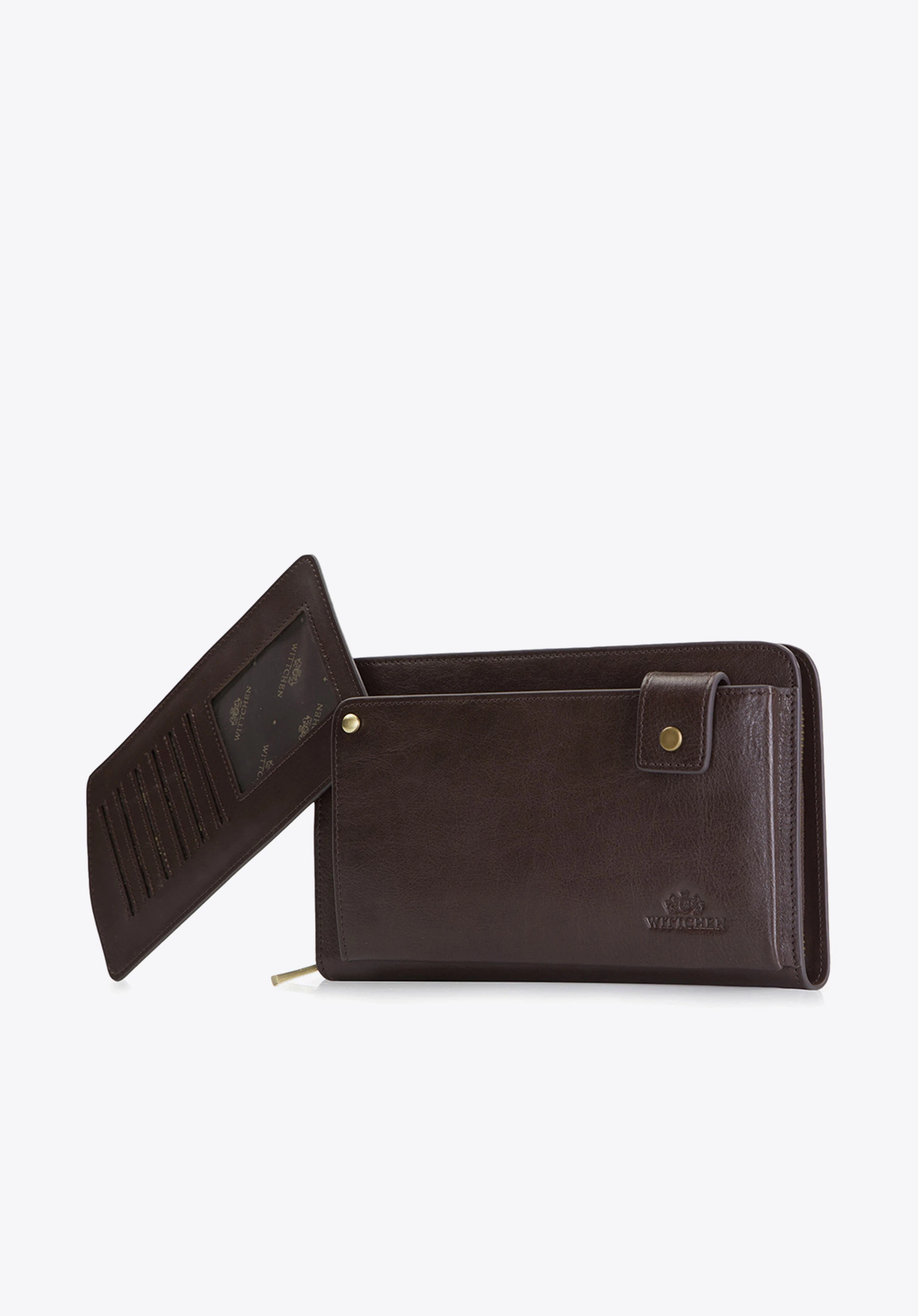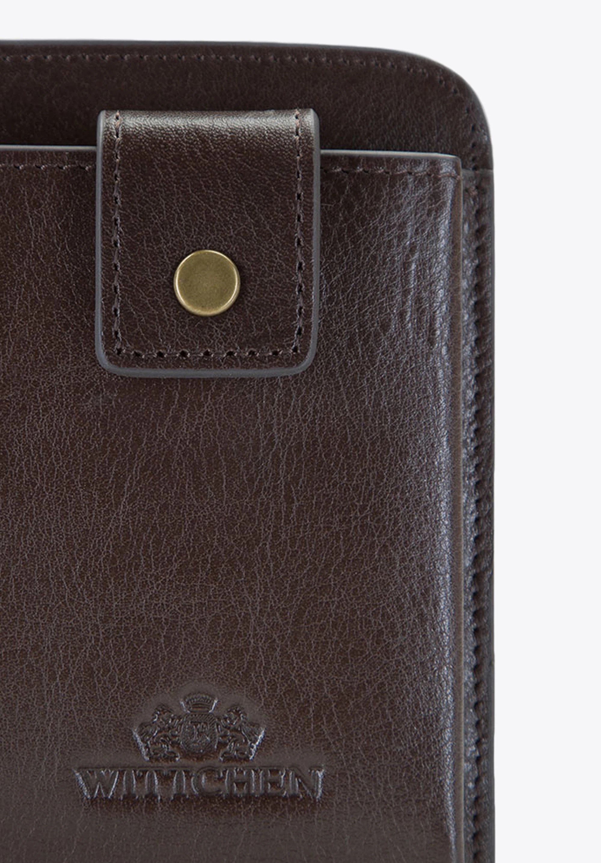 Plic compact realizat manual din piele cu juguri vizibile, care subliniaza caracterul stilat al modelului.Pe partea din față a plicului există o siglă vizibilă - stema WITTCHEN în relief în piele .Funcționalitatea gadgetului este asigurată de o inserție de card extrasă, care a fost atașată în buzunarul frontal.Situat pe spate curea la îndemână atunci când transportați plicul, va permite suplimentar protecția accesoriilor depozitate în acesta.
