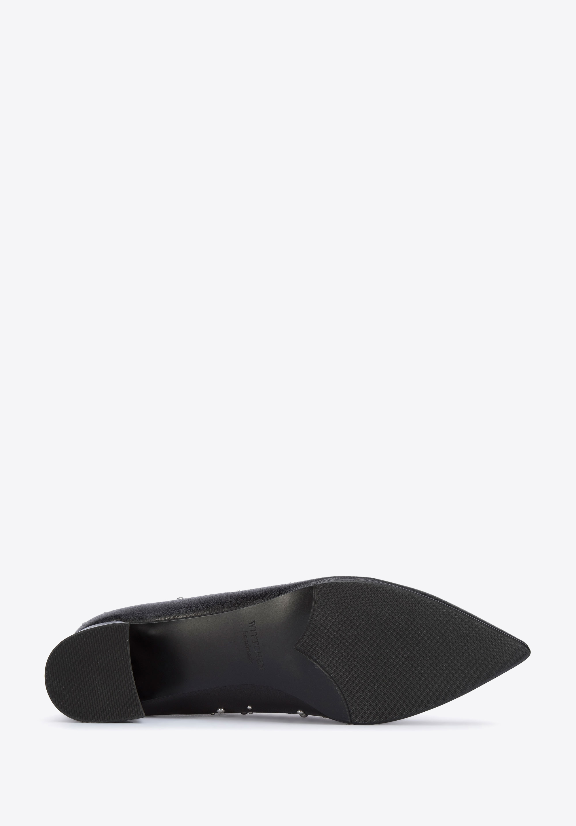 din piele naturală de cea mai bună calitate.Croaiala bine conturată și botul ascuțit subțiază optic piciorul.Datorită