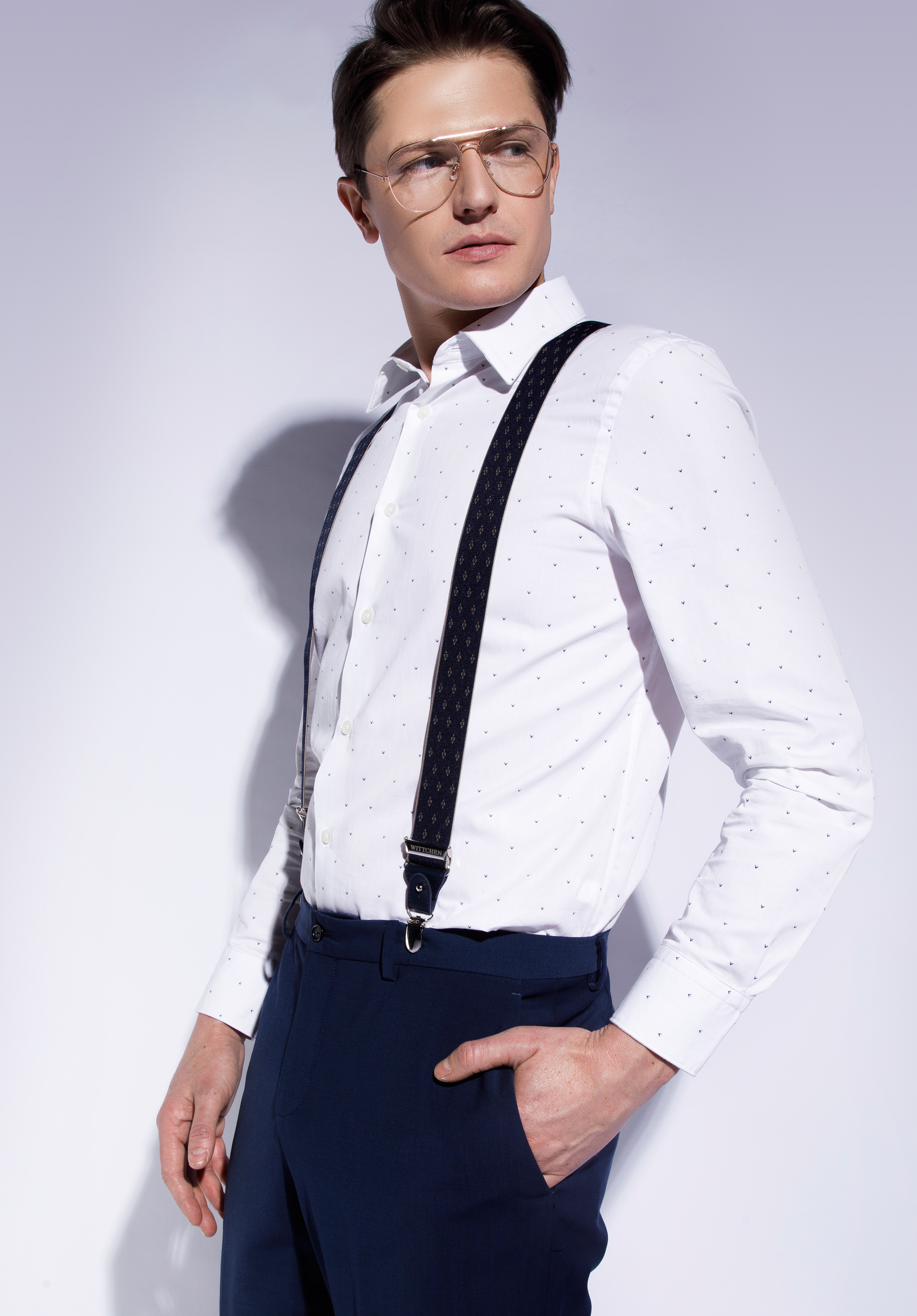 Sfatul nostru: pentru a menține un look elegant purtați bretele colorate și o cravatăsau o jachetă.