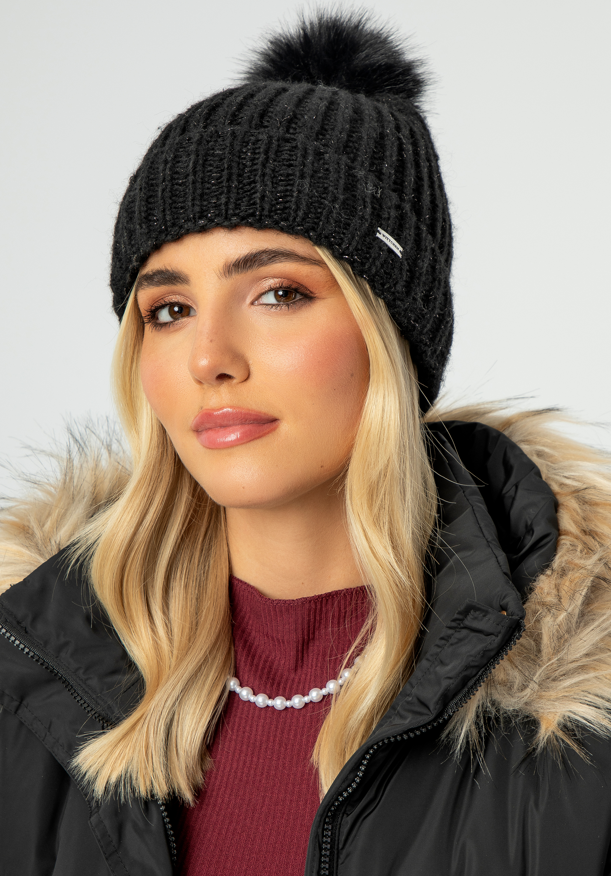 - Detalii: Logo subtil al producătorului în față și un pompon elegant din blană artificială .