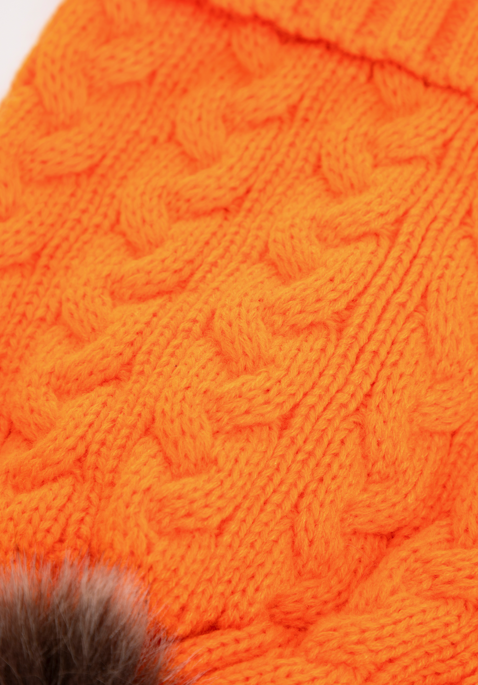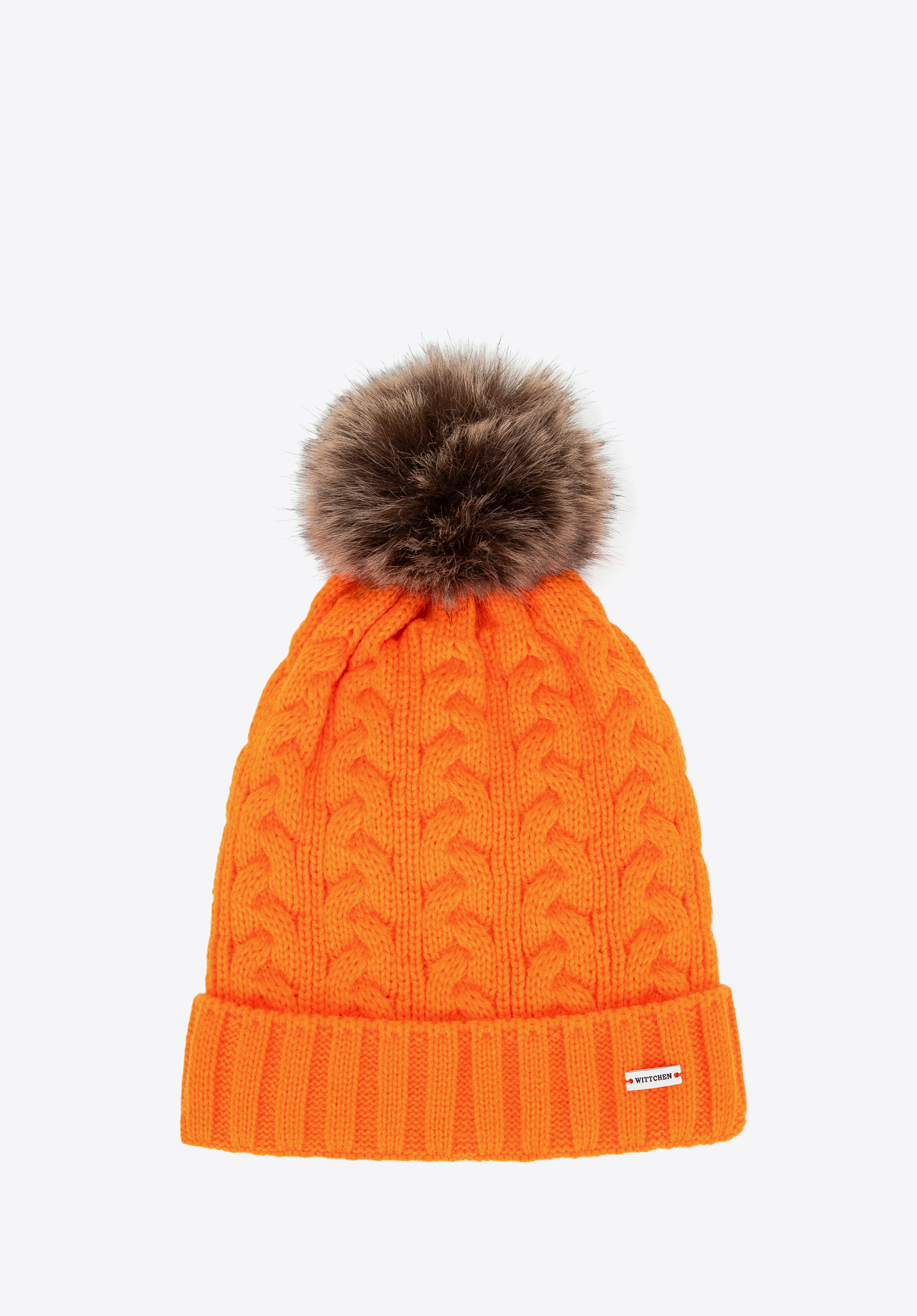 Căciulă de iarnă pentru femei, tricotată cu împletituri și pompon Culoare: portocaliu