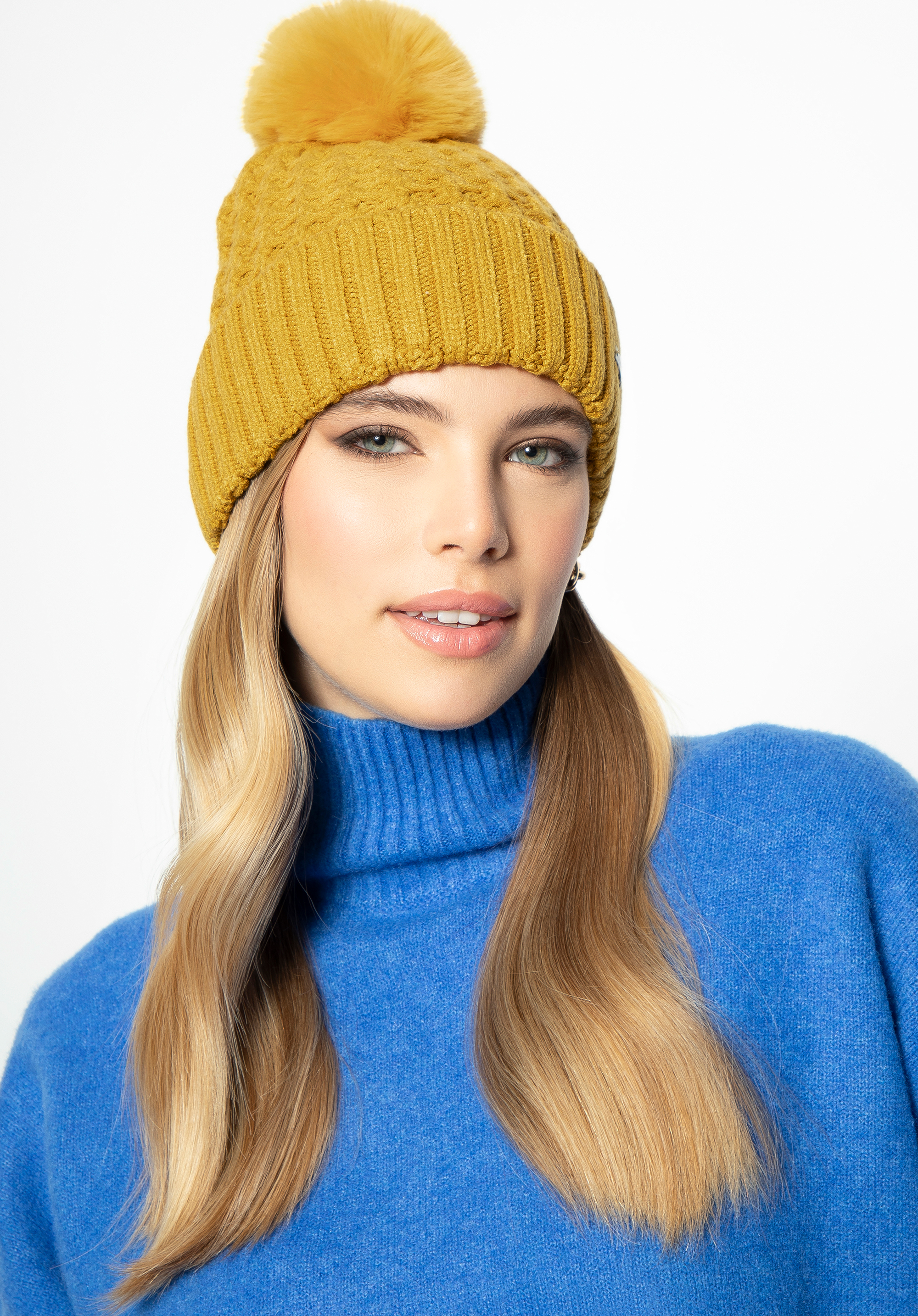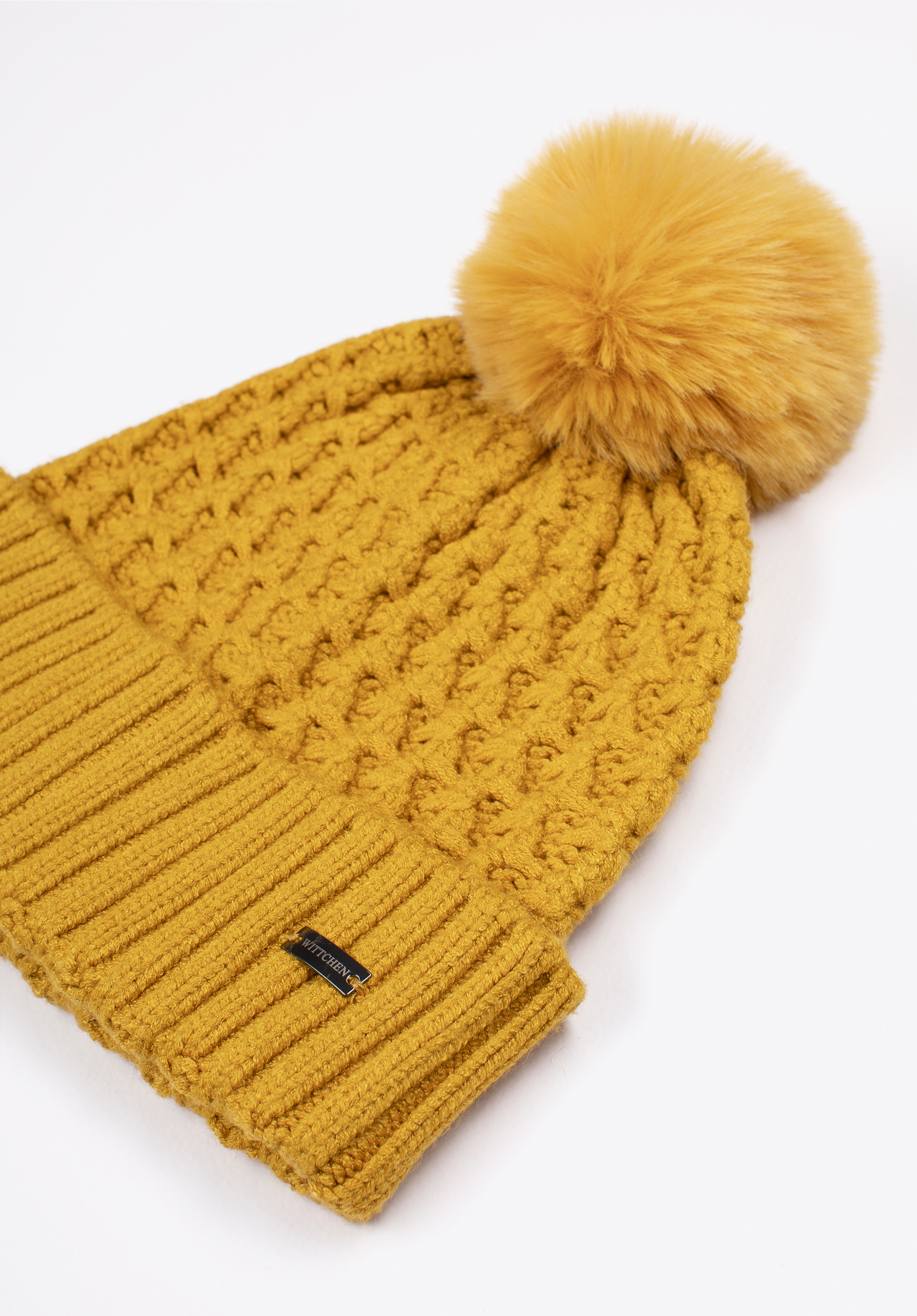 Tricotul moale face din această căciulă de iarnă pentru femei un câștigător . Confecționată dintr-un fir elastic, acest accesoriu este ideal pentru zilele răcoroase de iarnă. Căciula este tricotată texturat și decorată cu un pompon din blană artificială. Poate fi combinată cu o jachetă din fleece și o jachetă matlasată. Un mod elegant de a învinge frigul.