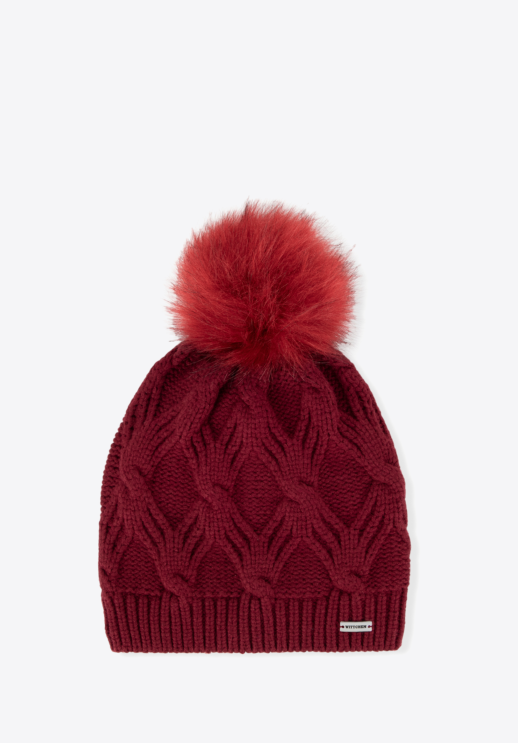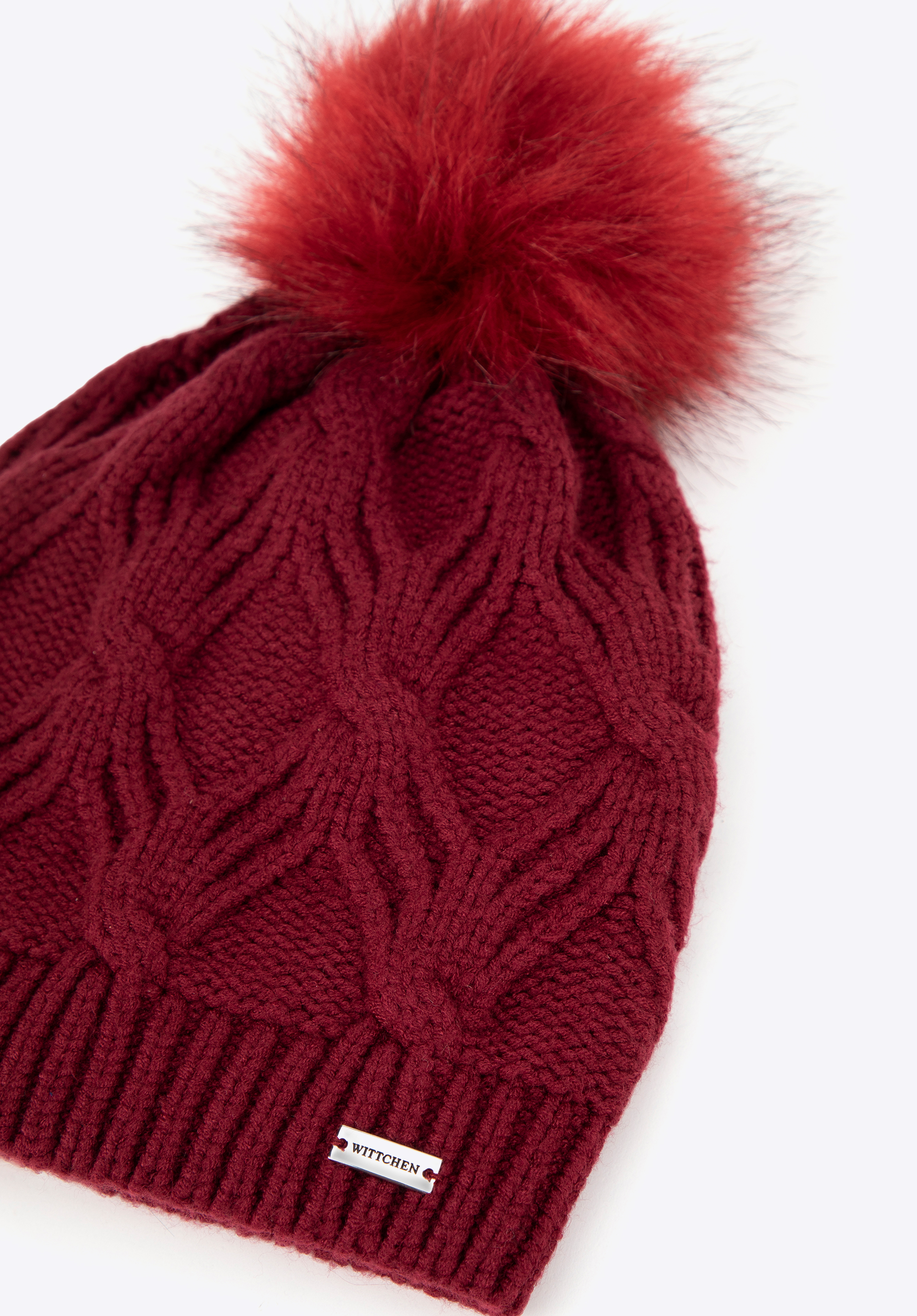 Căciulă tricotată de iarnă pentru femei cu pompon bordo