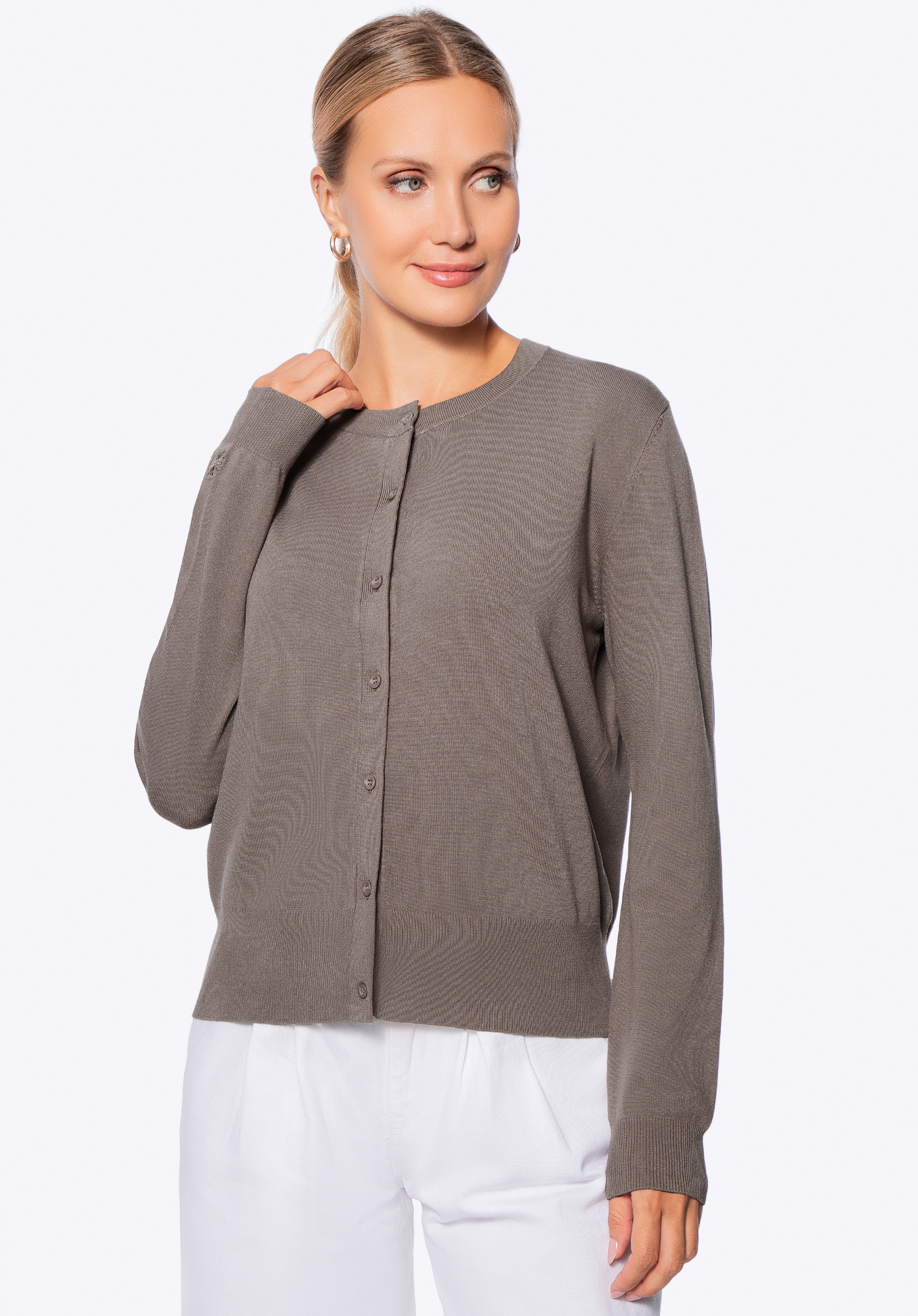 Acest cardigan combină moliciunea și confortul pe care le veți aprecia în fiecare zi. Confecționat dintr-un amestec delicat de viscoză și nailon , oferă o senzație minunat de ușoară și plăcută la atingere. Închiderea cu nasturi pe toată lungimea vă permite să îl stilizați oricum doriți - purtați-l deschis pentru un aspect relaxat sau încheiat pentru o notă de eleganță. Decolteul rotund și mânecile lungi cu manșete striate evidențiază caracterul clasic și atemporal al acestei piese vestimentare, făcându-l un element de bază indispensabil în garderoba dumneavoastră.
