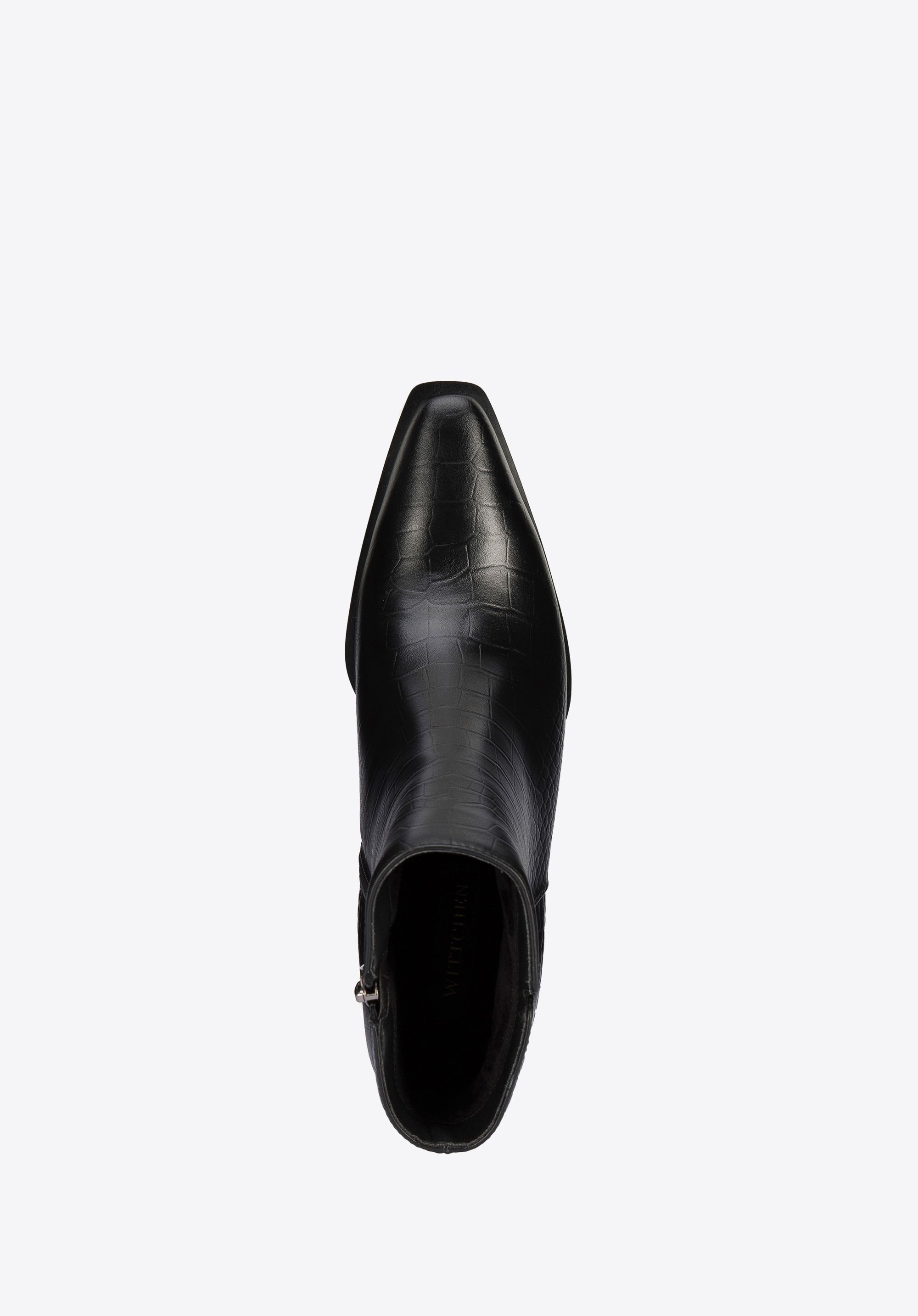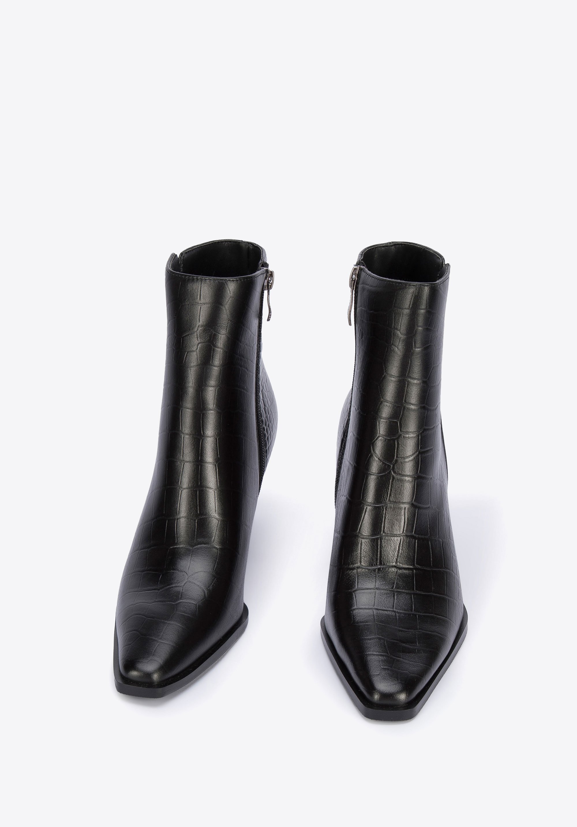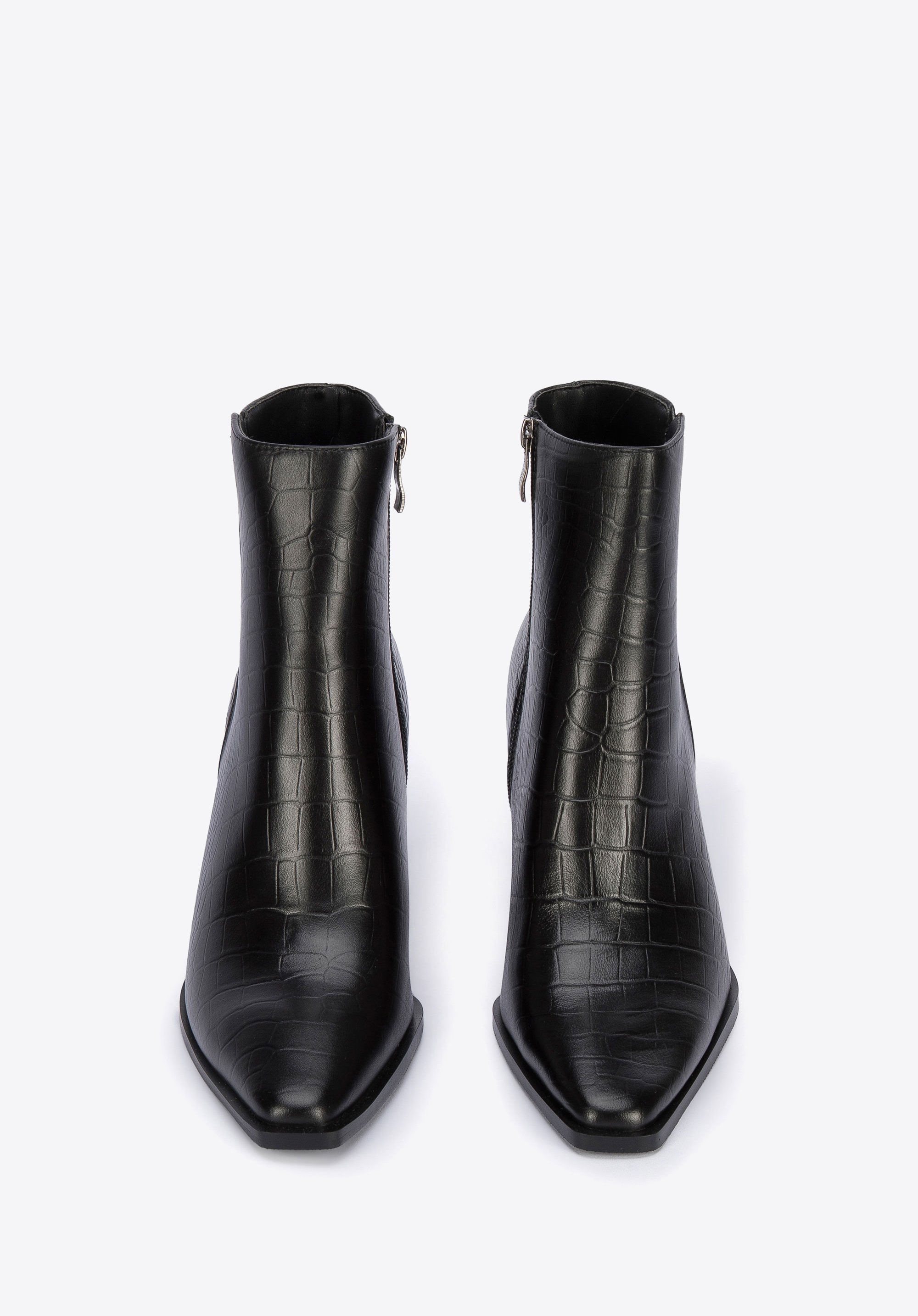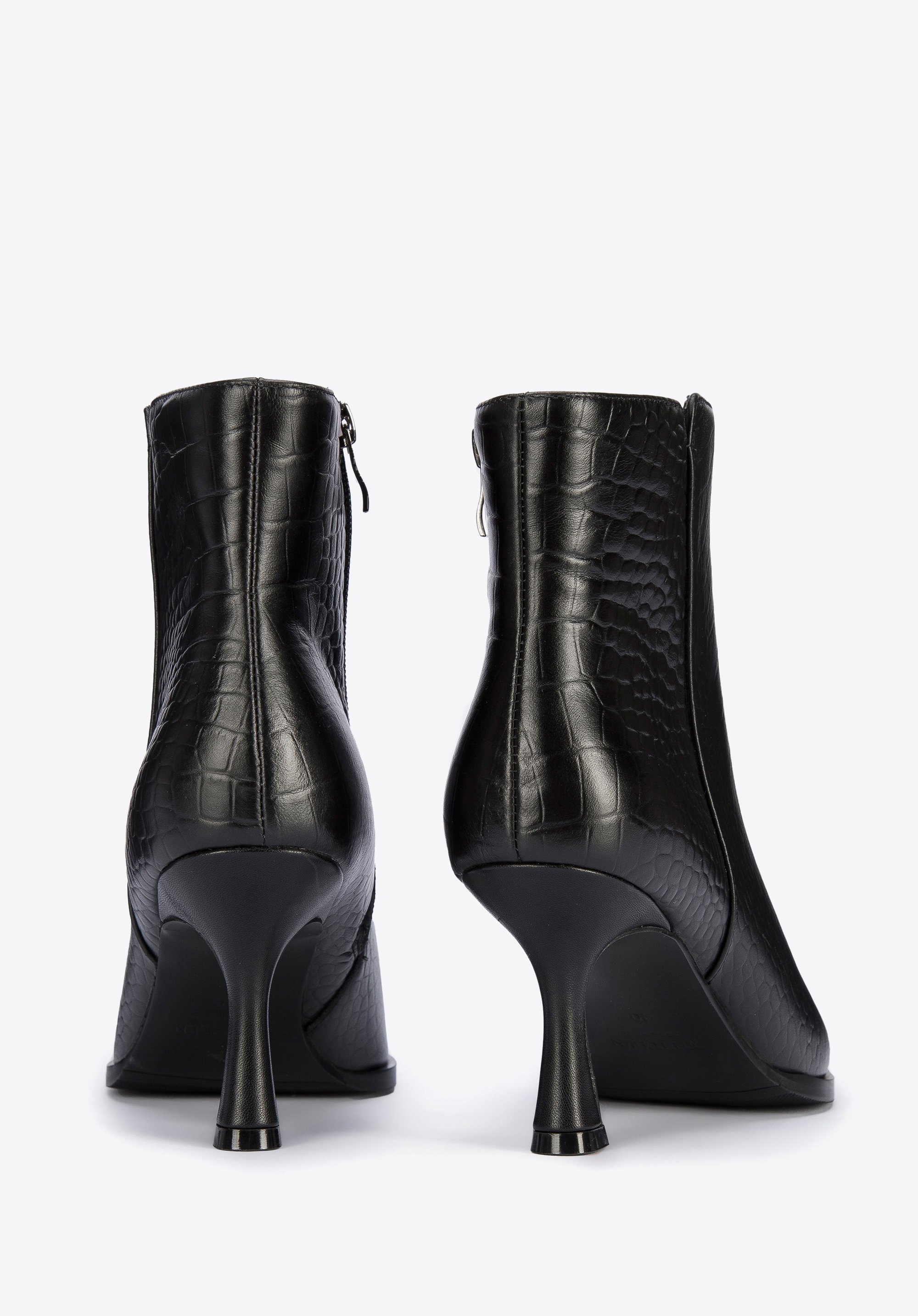 Pantofii din piele croco cu toc ascuțit sunt un accesoriu original pentru femeile moderne cărora le place să se joace cu moda.