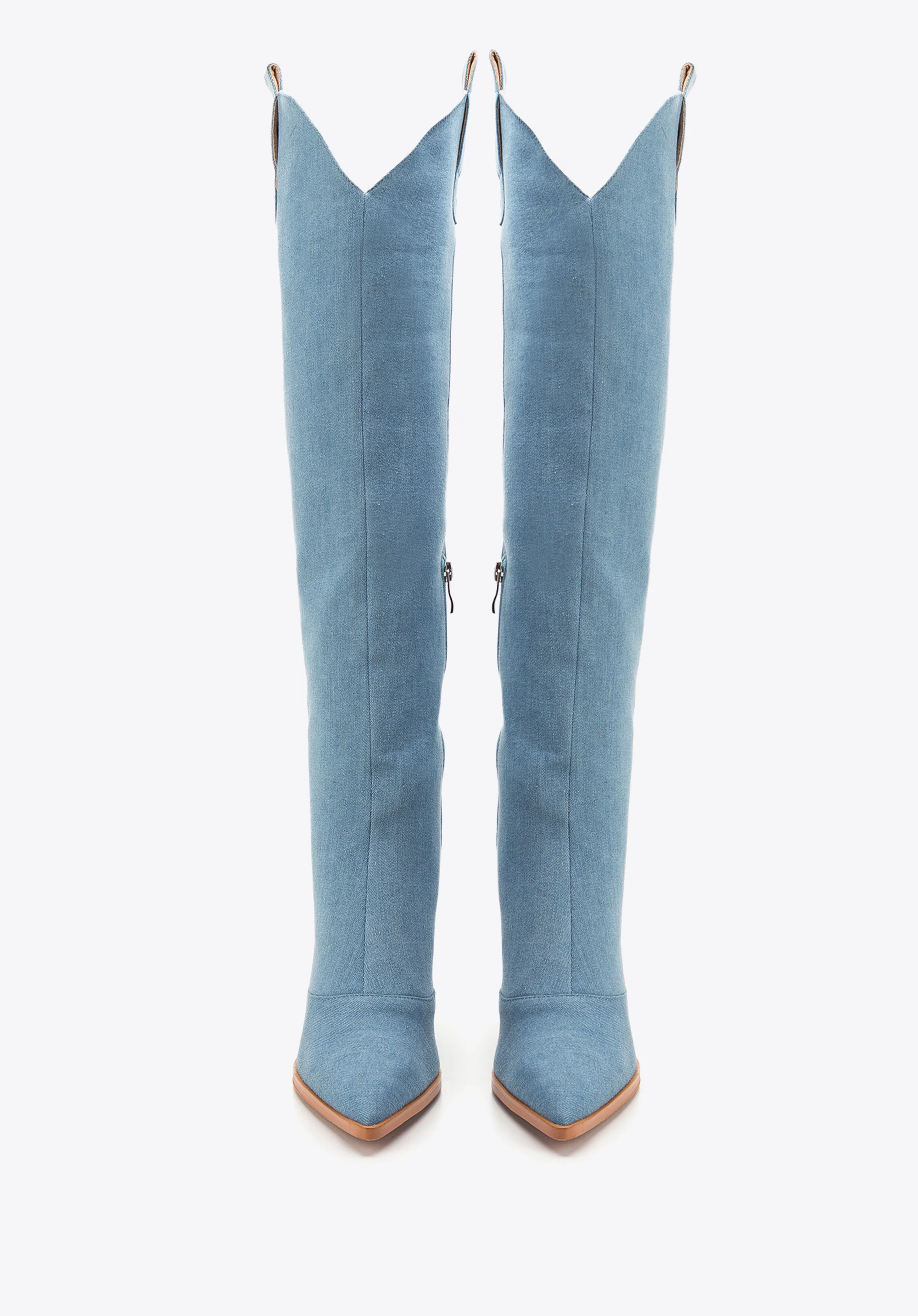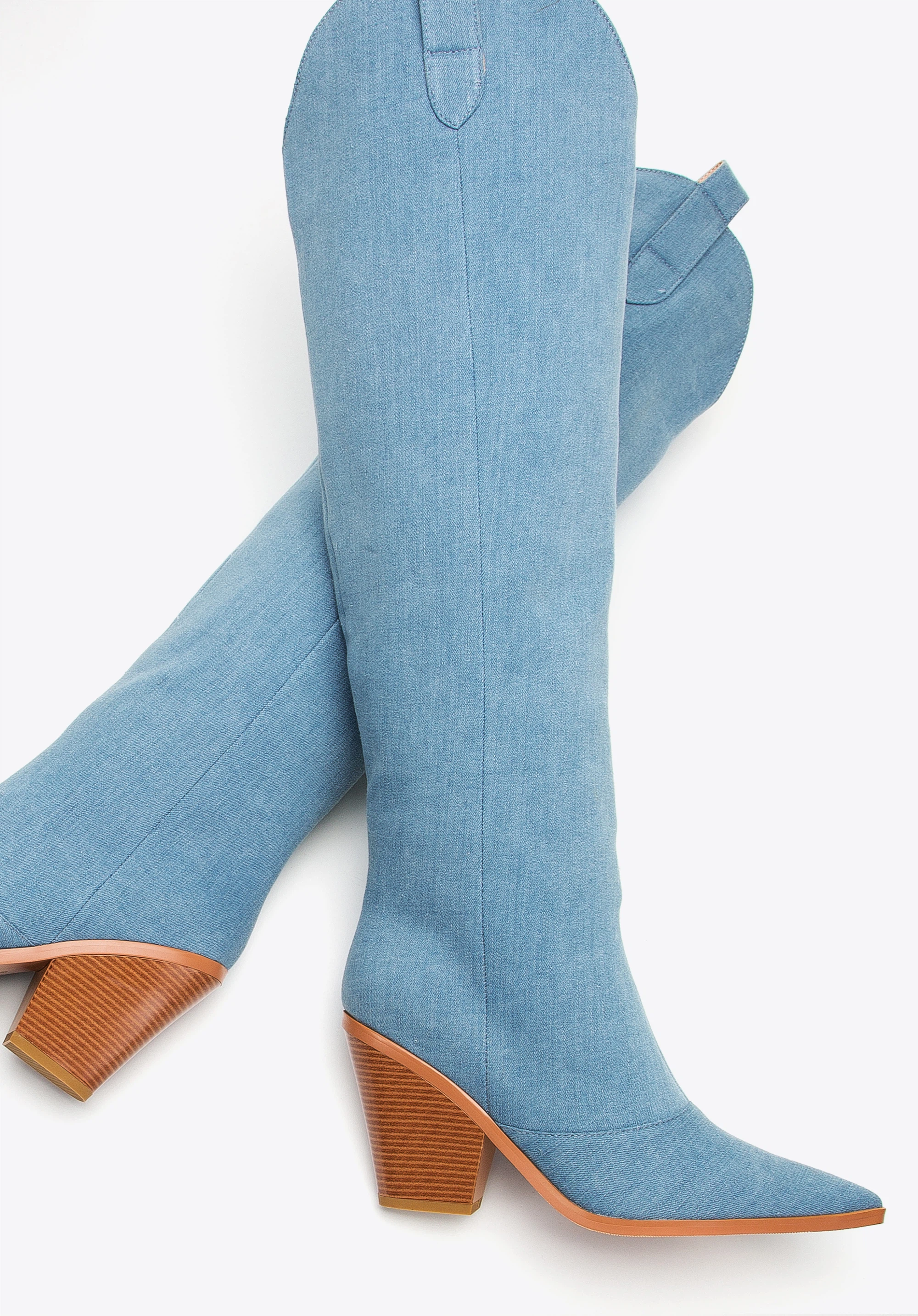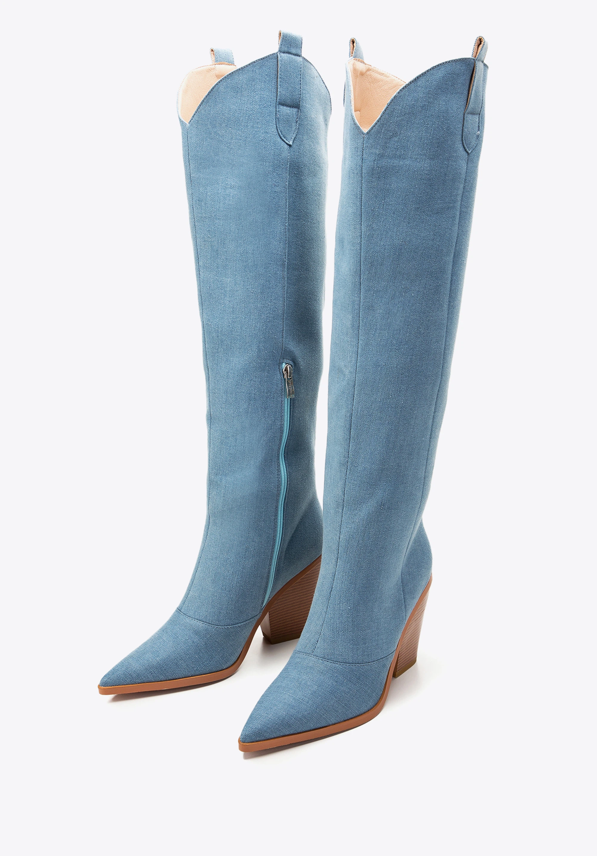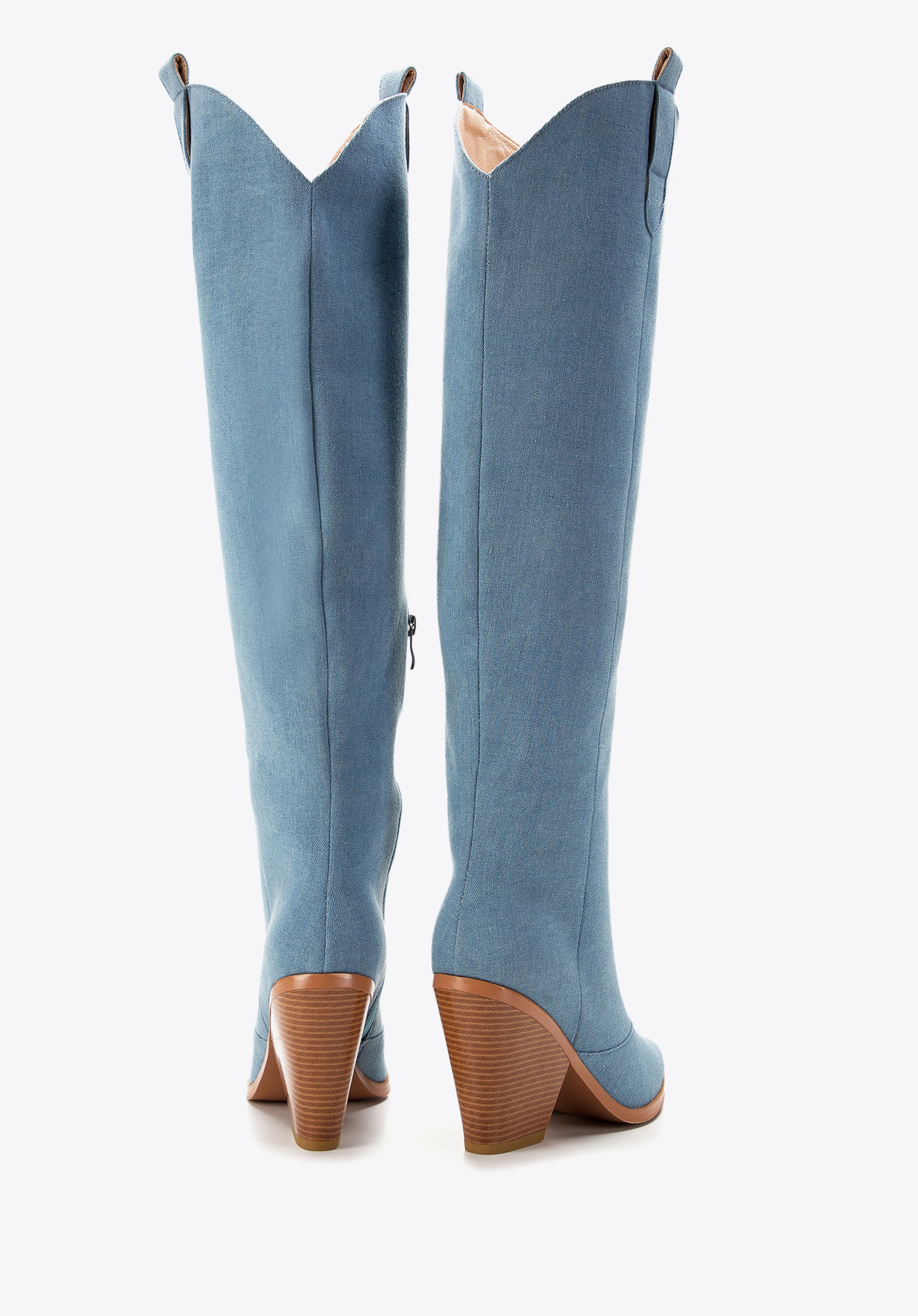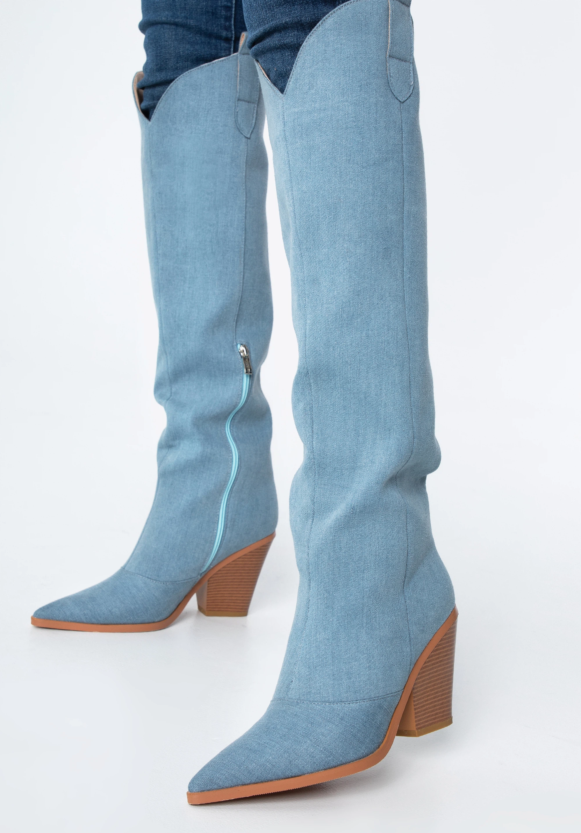 Cizme de cowboy de damă înalte până la genunchi albastru deschis