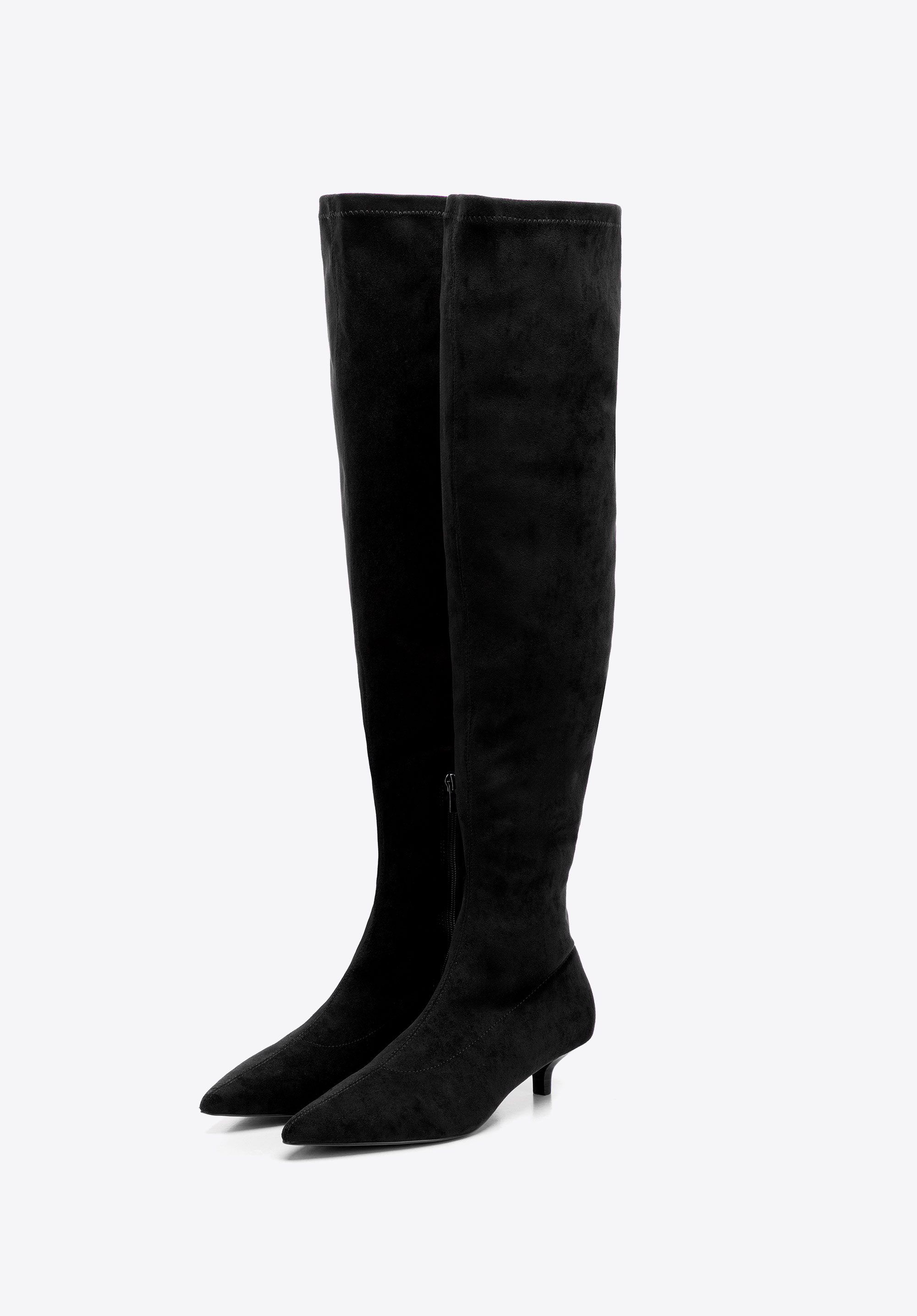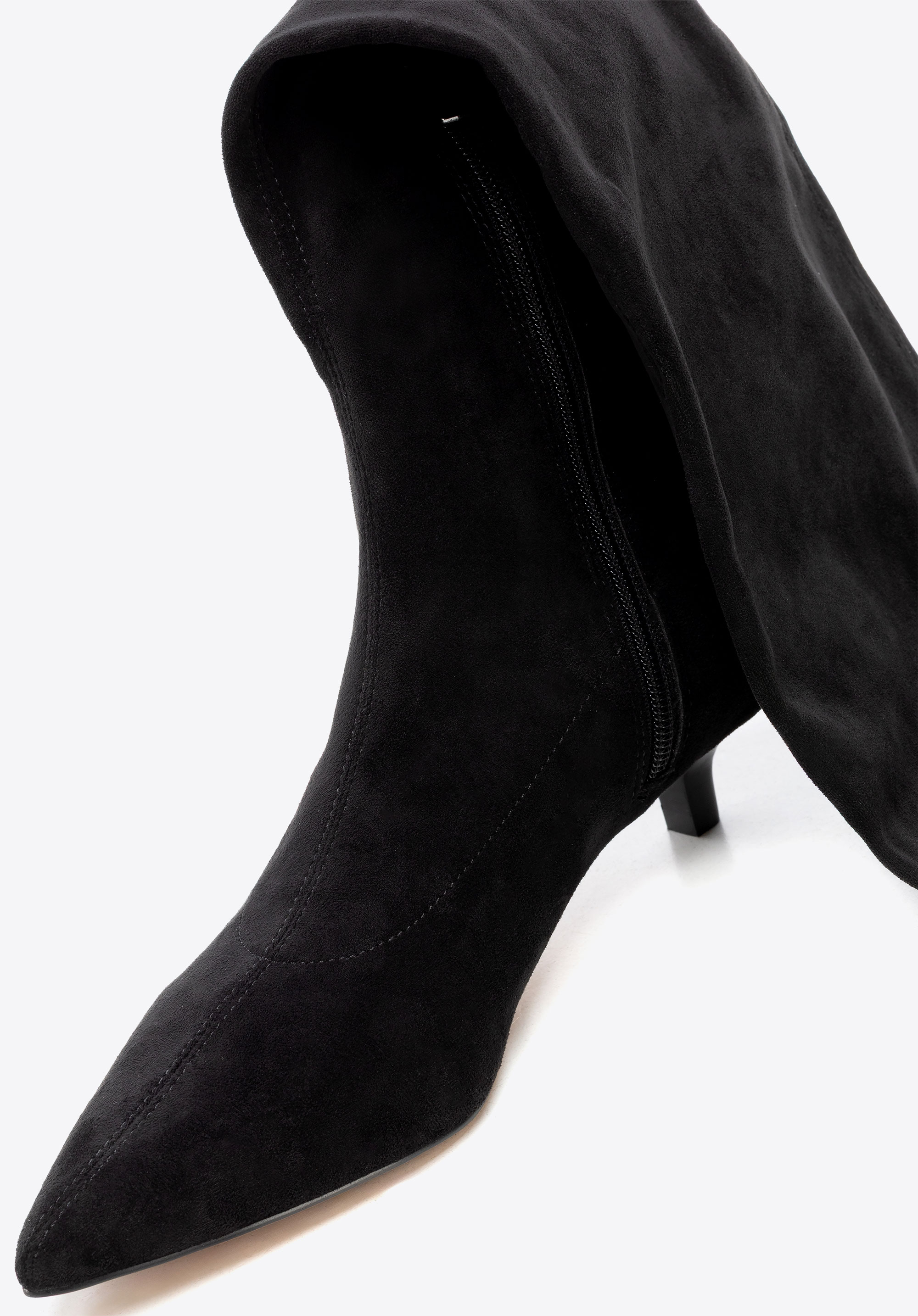 Aceste cizme la modă combină o siluetă clasică cu detalii moderne. Tija ajustată modelează frumos piciorul, în timp ce vârful ascuțit subțiază piciorul, adăugând o senzație de lejeritate siluetei generale. Tocul mic asigură stabilitate și confort pe tot parcursul zilei, iar cusăturile decorative conferă cizmelor un caracter elegant și stilat. Perfecte pentru femeile care apreciază o combinație de eleganță și confort - cizme care completează atât ținutele de zi cu zi, cât și pe cele mai rafinate.
