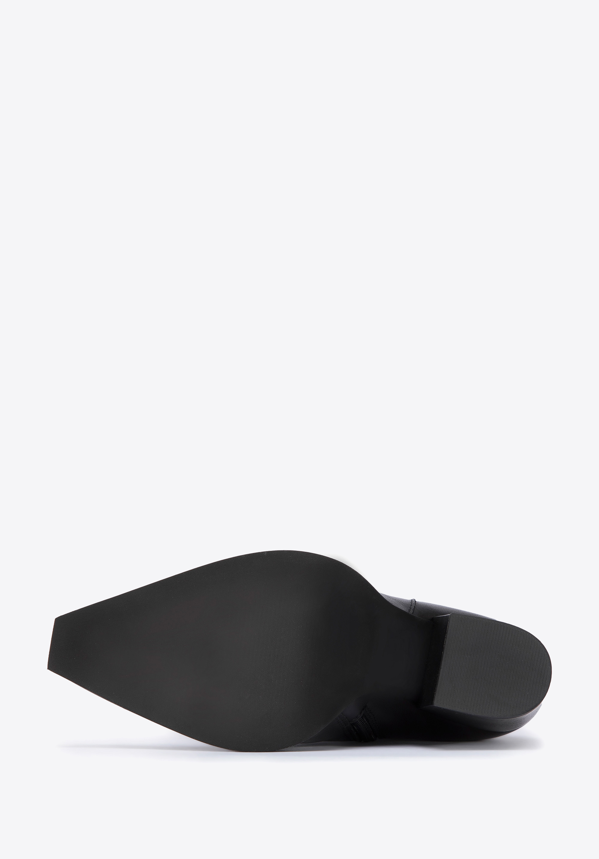 vârf conic și o talpă unghiulară, care i iese ușor în afară de conturul pantofului.