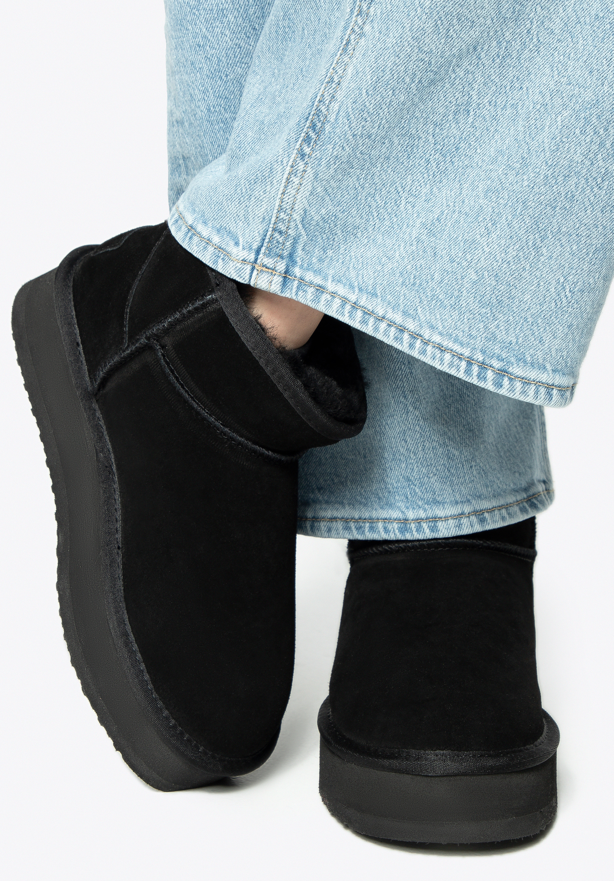 Aceste cizme elegante de damă sunt perfecte pentru femeia atentă la modă. Fabricate din piele întoarsă de calitate superioară, durabile, oferă o potrivire confortabilă care se mulează pe picioarele tale. În interior, căptușeala de lână menține căldura, oferind în același timp confort suprem. Talpa anti-alunecare are un design inteligent cu crampoane pentru un picior sigur în toate condițiile. Cu forma lor atemporală și vârful rotunjit, aceste cizme nu se demodează niciodată. Interiorul somptuos de blană le face o alegere confortabilă pentru vremea rece. Datorită stilului lor ușor de încălţat, puteți ieși pe ușă în cel mai scurt timp.