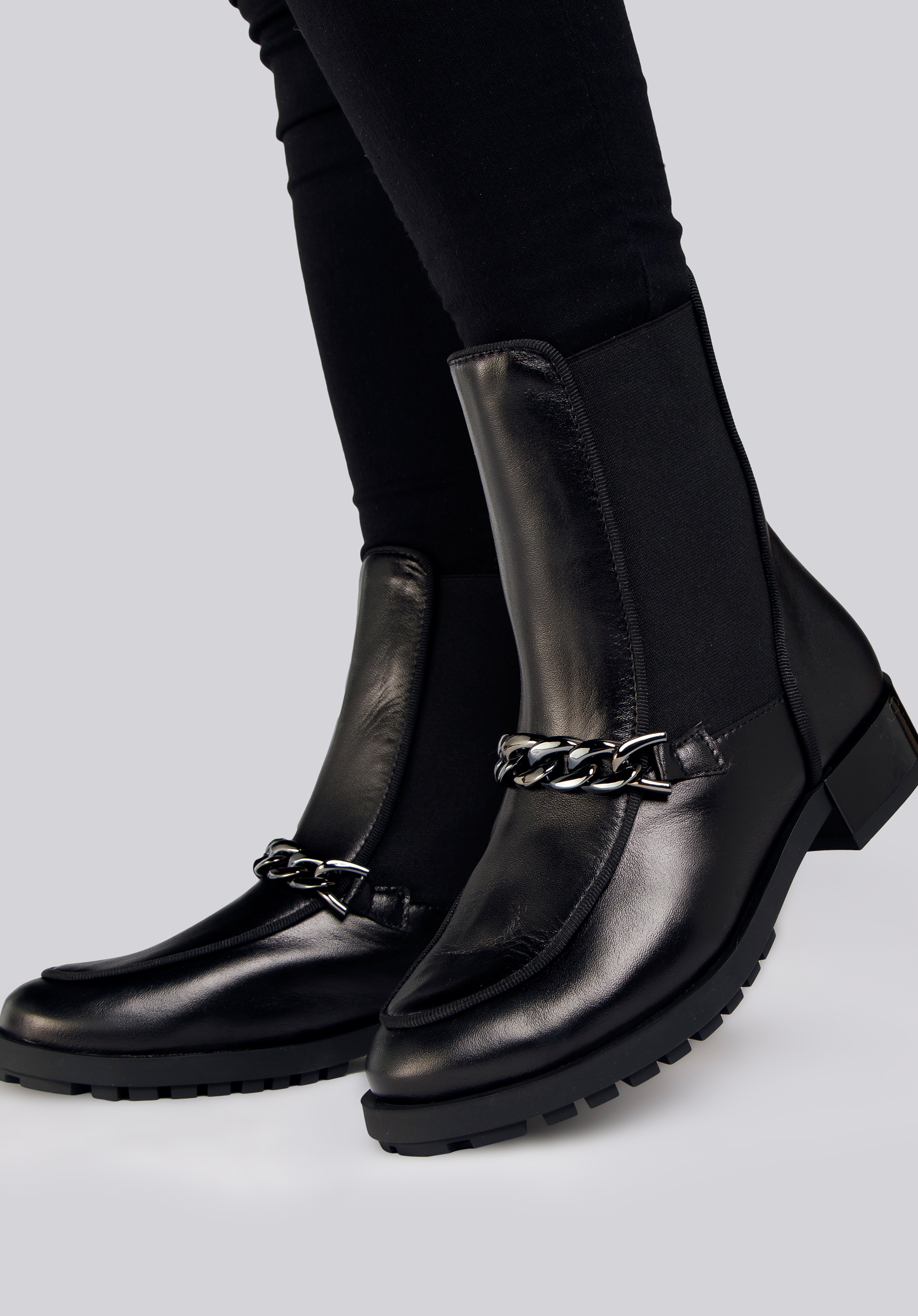 Cizme din piele cu elastice pe laterale si lant negru