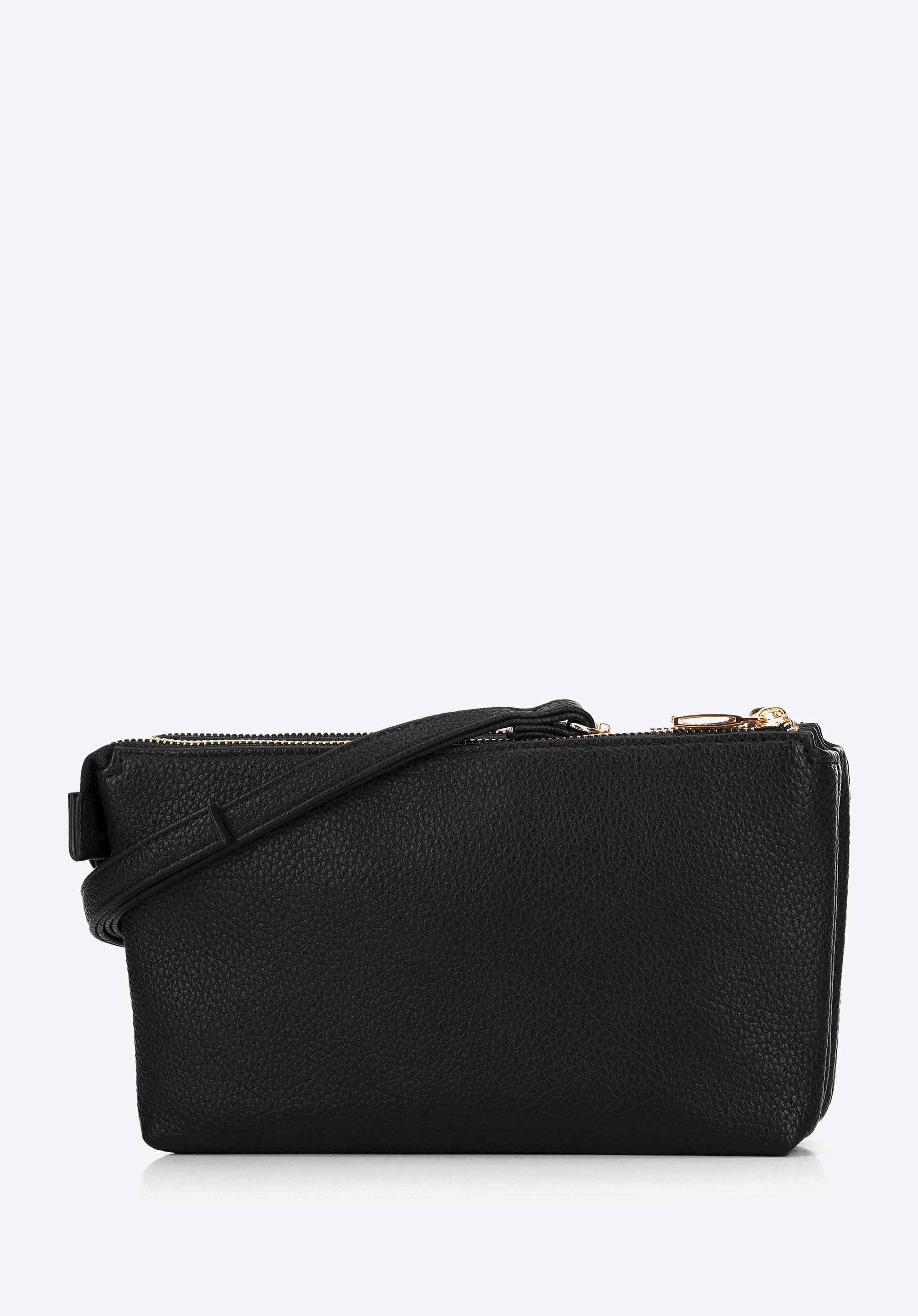 - Design cu două compartimente: Datorită celor două compartimente, îți poți organiza cu ușurință obiectele mici. Un compartiment are un buzunar deschis, ideal pentru telefon sau chei, în timp ce celălalt are un buzunar cu fermoar pentru a păstra în siguranță documente și obiecte de valoare.