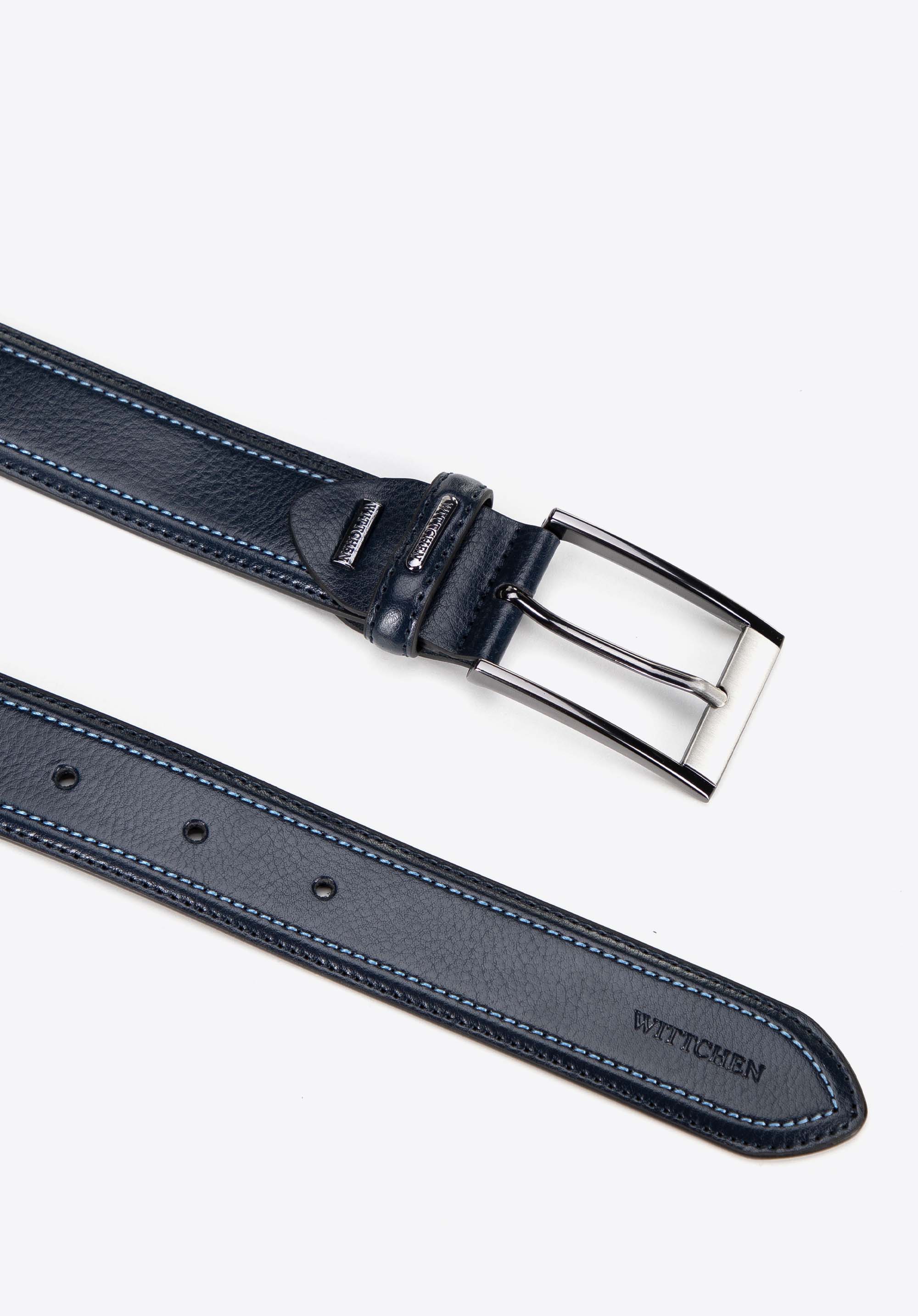 Calitate înaltă, eleganță excepțională și un detaliu modern subtil – iată cureaua noastră care cu siguranță vă va pune în valoare garderoba. Fabricată din piele naturală premium, această curea îmbină stilul clasic cu o notă de prospețime datorită cusăturilor albastre contrastante. Funcționează perfect în diverse ansambluri, de la casual la formal, dând look-ului tău un caracter unic.