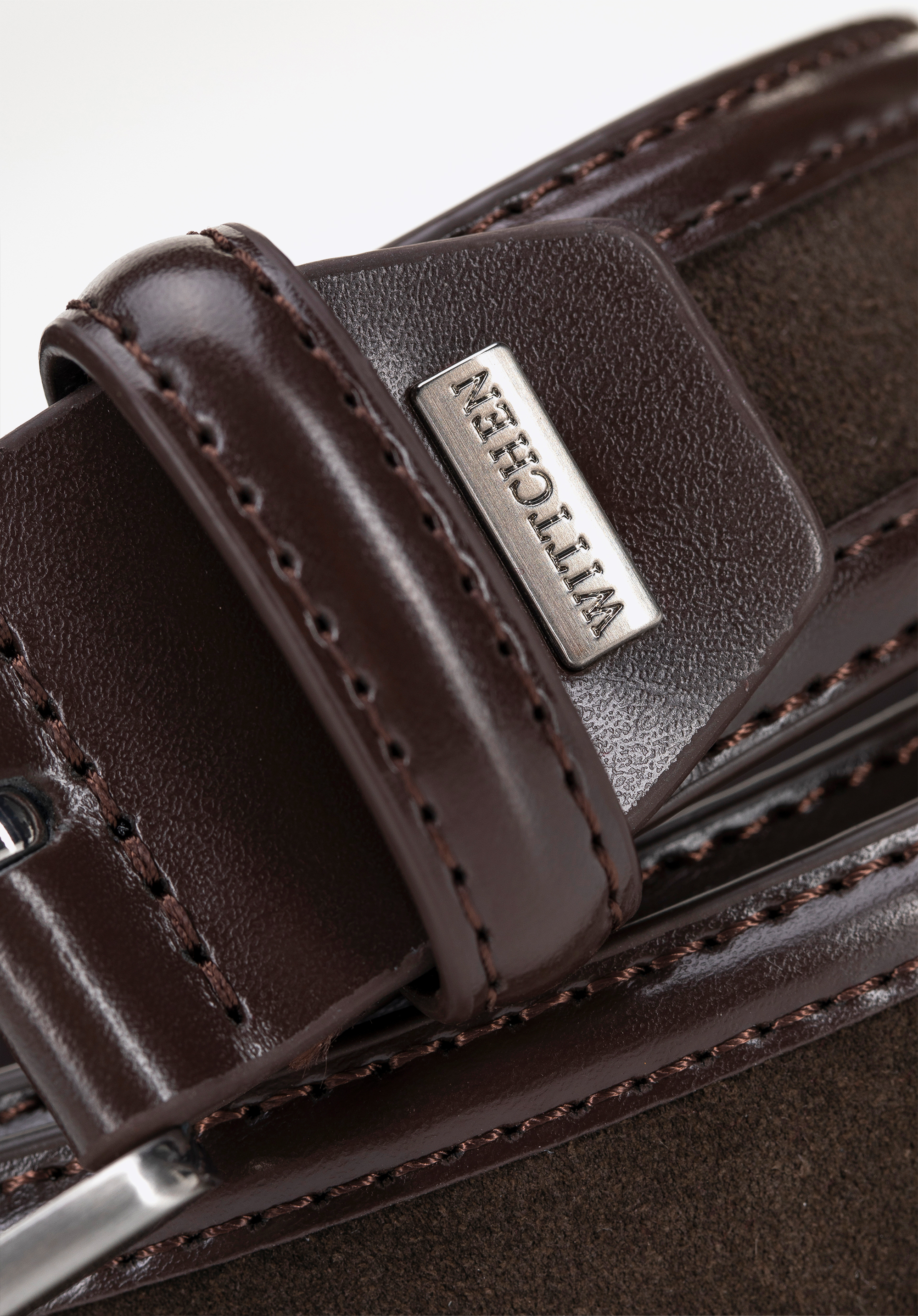 - Detalii fine: Logo-ul în relief pe vârf și un accent decorativ lângă cataramă reflectă măiestria premium a curelei.