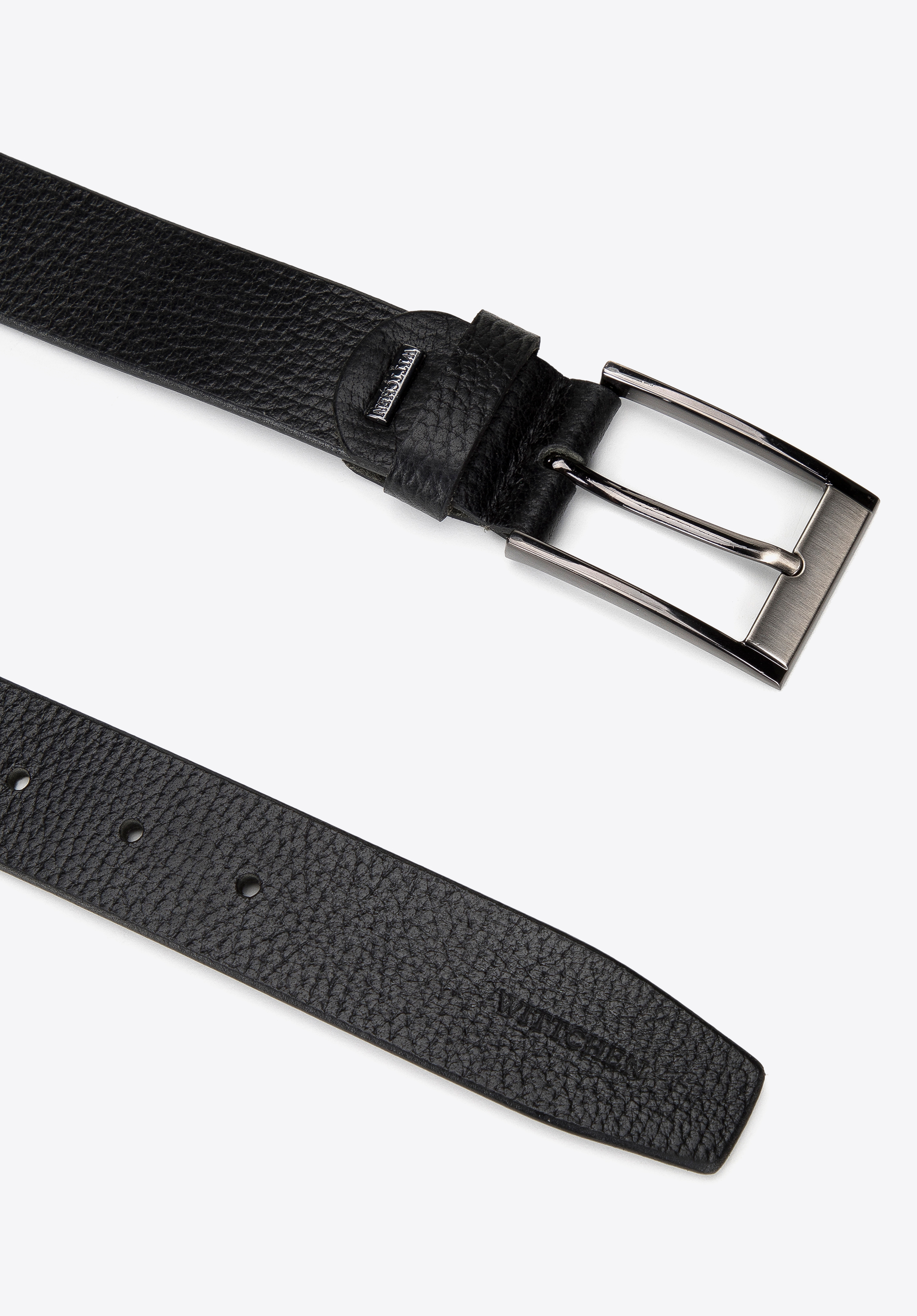 Această curea elegantă este o alegere excelentă pentru bărbații pentru care finisajul meticulos și designul clasic sunt de cea mai mare importanță. Acest accesoriu este împodobit cu o cataramă clasică argintie . Fabricat din piele naturală de cea mai înaltă calitate, cu textură pietrișată, acest accesoriu pentru bărbați va rezista mulți ani de acum înainte. Această centură pentru bărbați este un accesoriu clasic și modern în același timp.