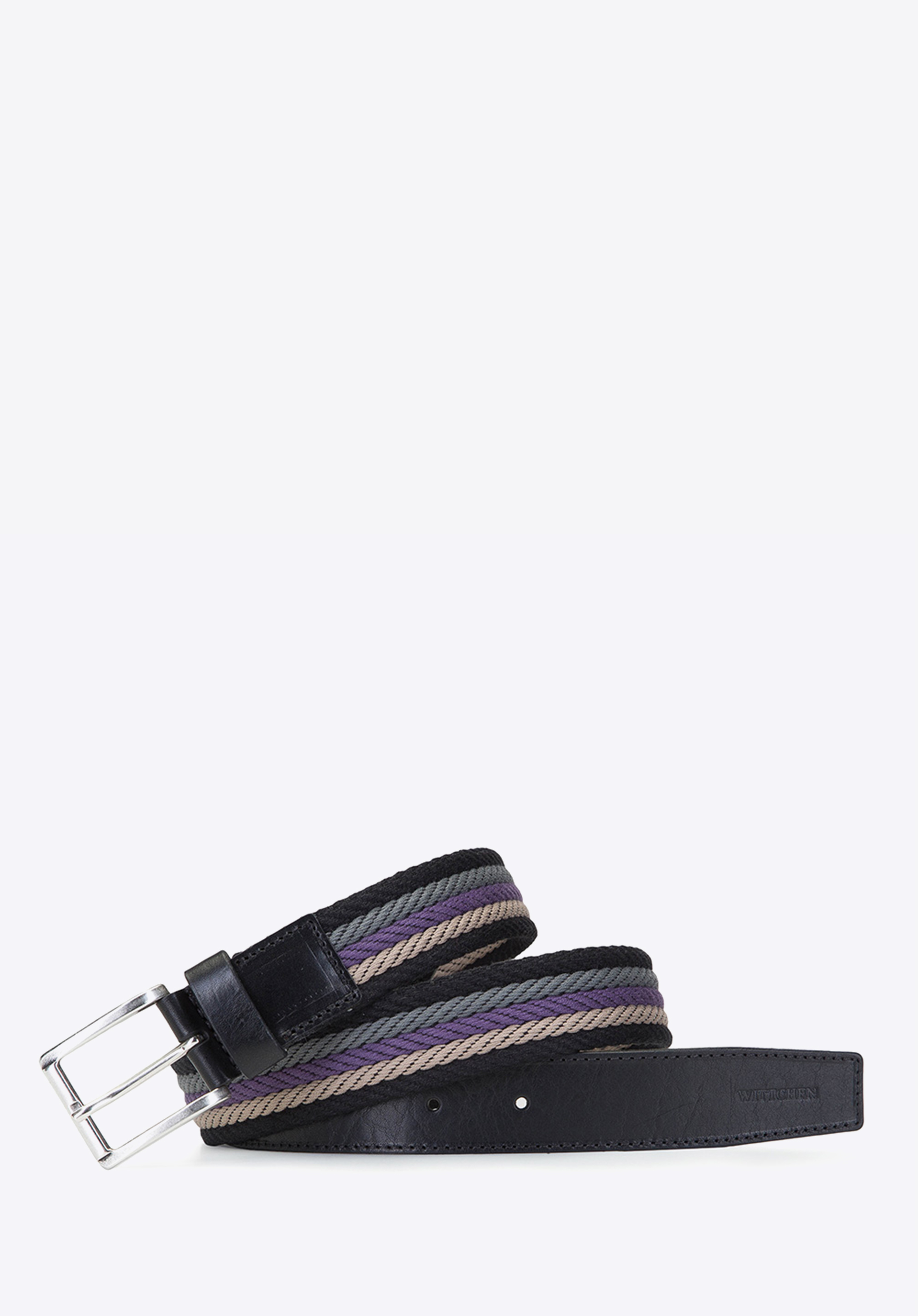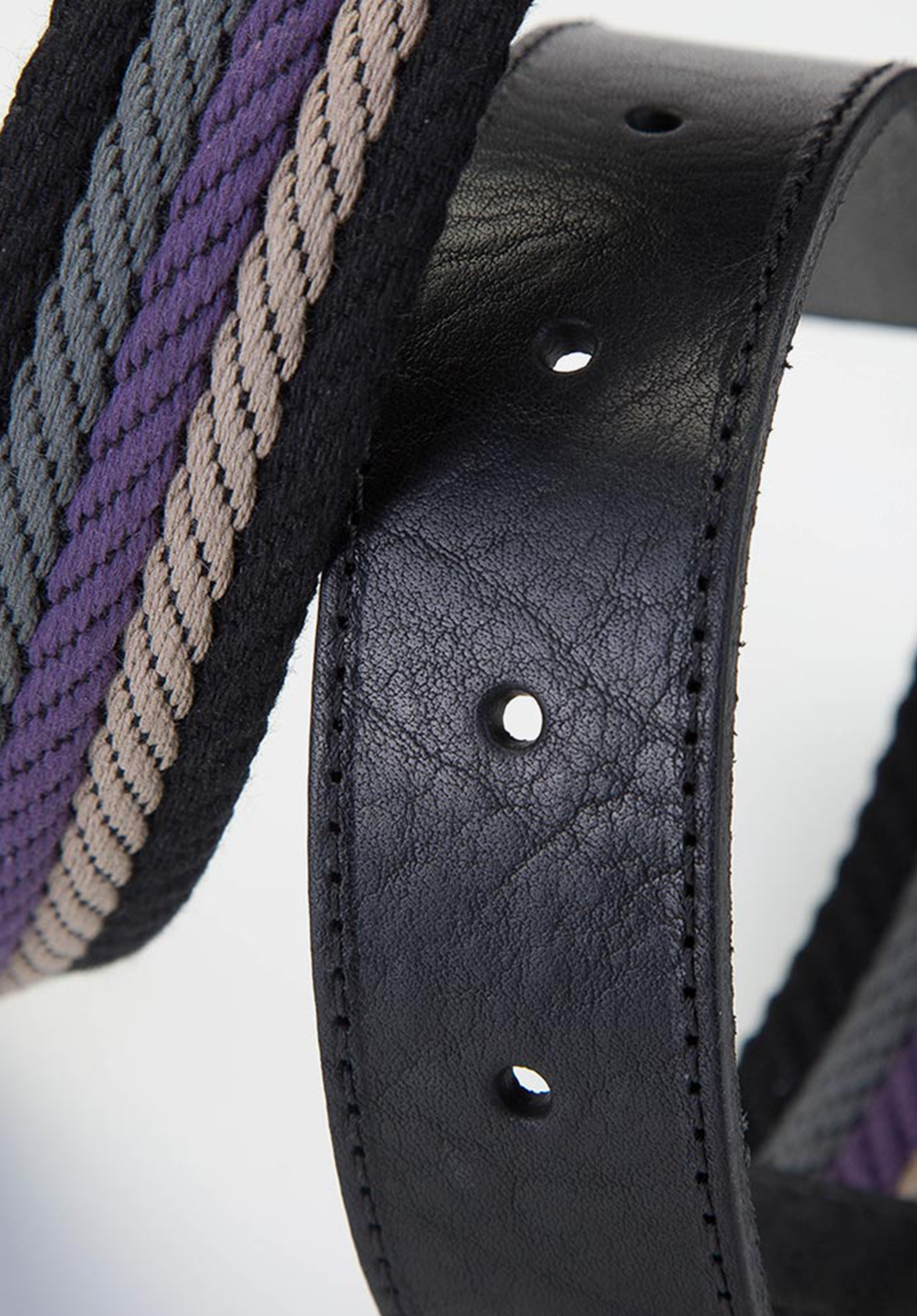 Accesoriu original bărbătesc pentru îmbrăcăminte informală.Cureaua este realizata din doua materiale: piele naturală si sfori de bumbac, care formeaza o impletitura colorata .Este finisat cu o cataramă clasică argintie cu o îndoire elegantă. Cureaua din piele naturală si impletitura de bumbac se potrivește bine cu mulți pantaloni de zi cu zi, cum ar fi: bermude din denim, catifea sau in.