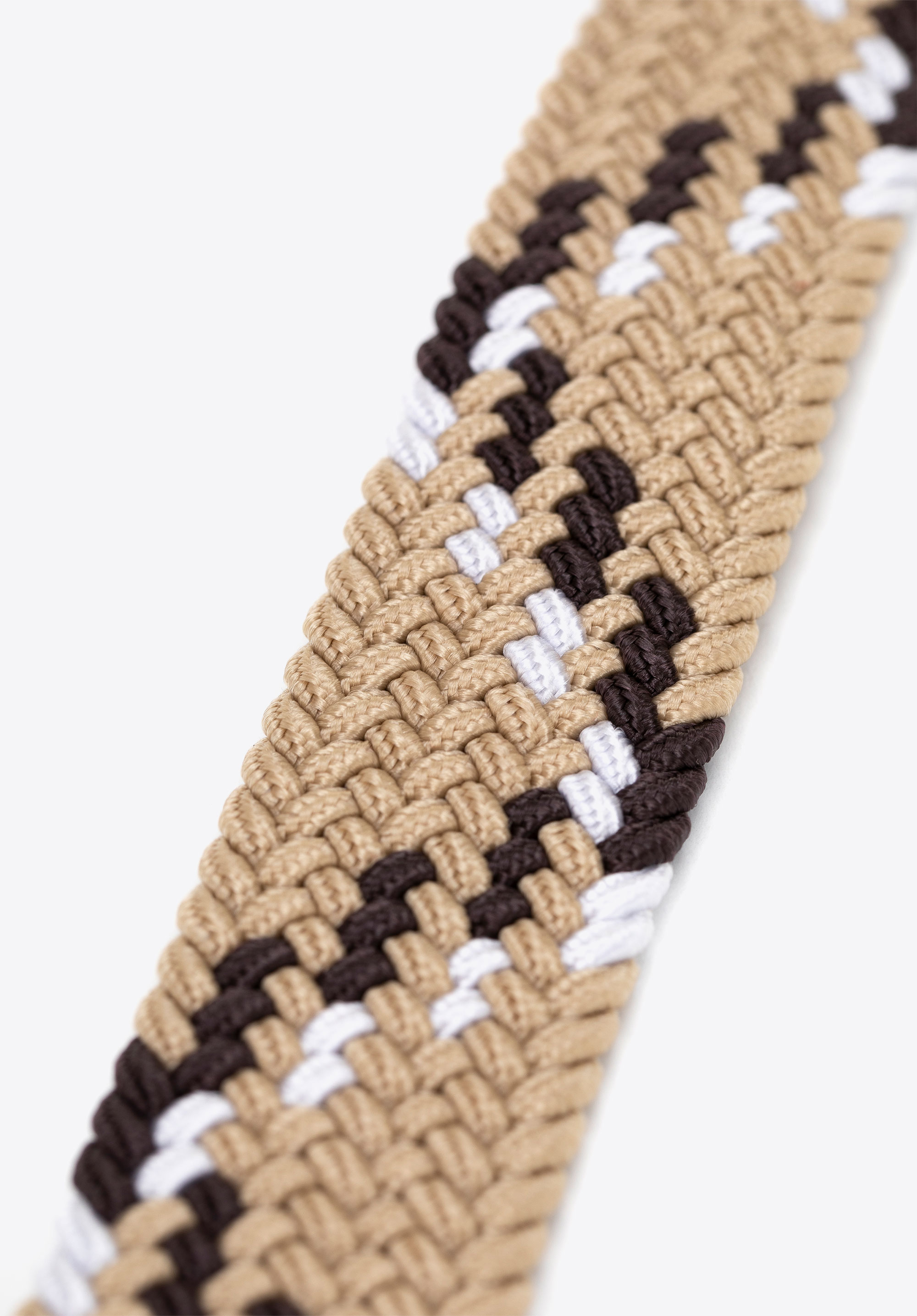 Un accesoriu elegant și funcțional care îmbină caracterul contemporan cu detaliile clasice. Această curea bărbătească este confecționată dintr-o țesătură elastică durabilă, care se adaptează perfect corpului, asigurând confort pe tot parcursul zilei. Catarama simplă dreptunghiulară , imprimată în relief cu logo-ul mărcii, subliniază designul său minimalist, dar elegant. Detaliile suplimentare din piele naturală de la cataramă și vârful curelei conferă un finisaj rafinat și sporesc durabilitatea.