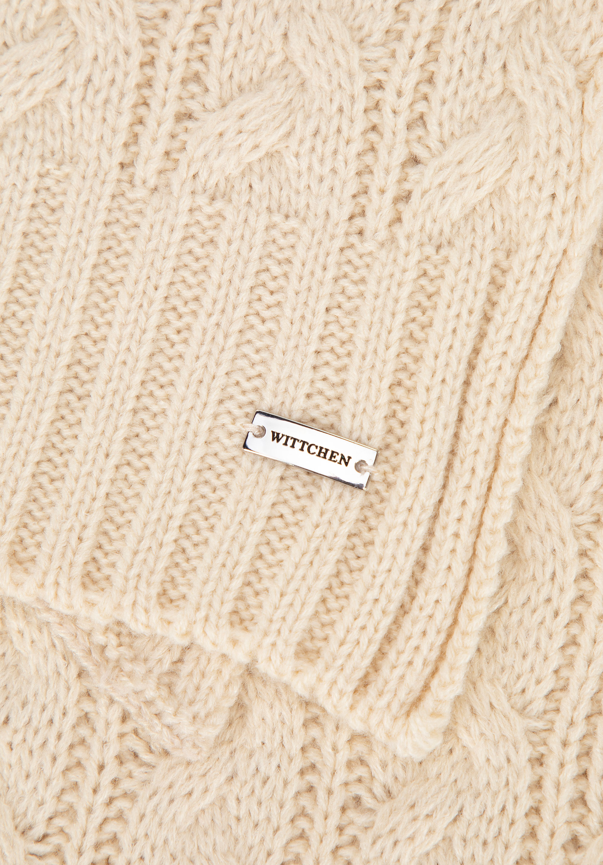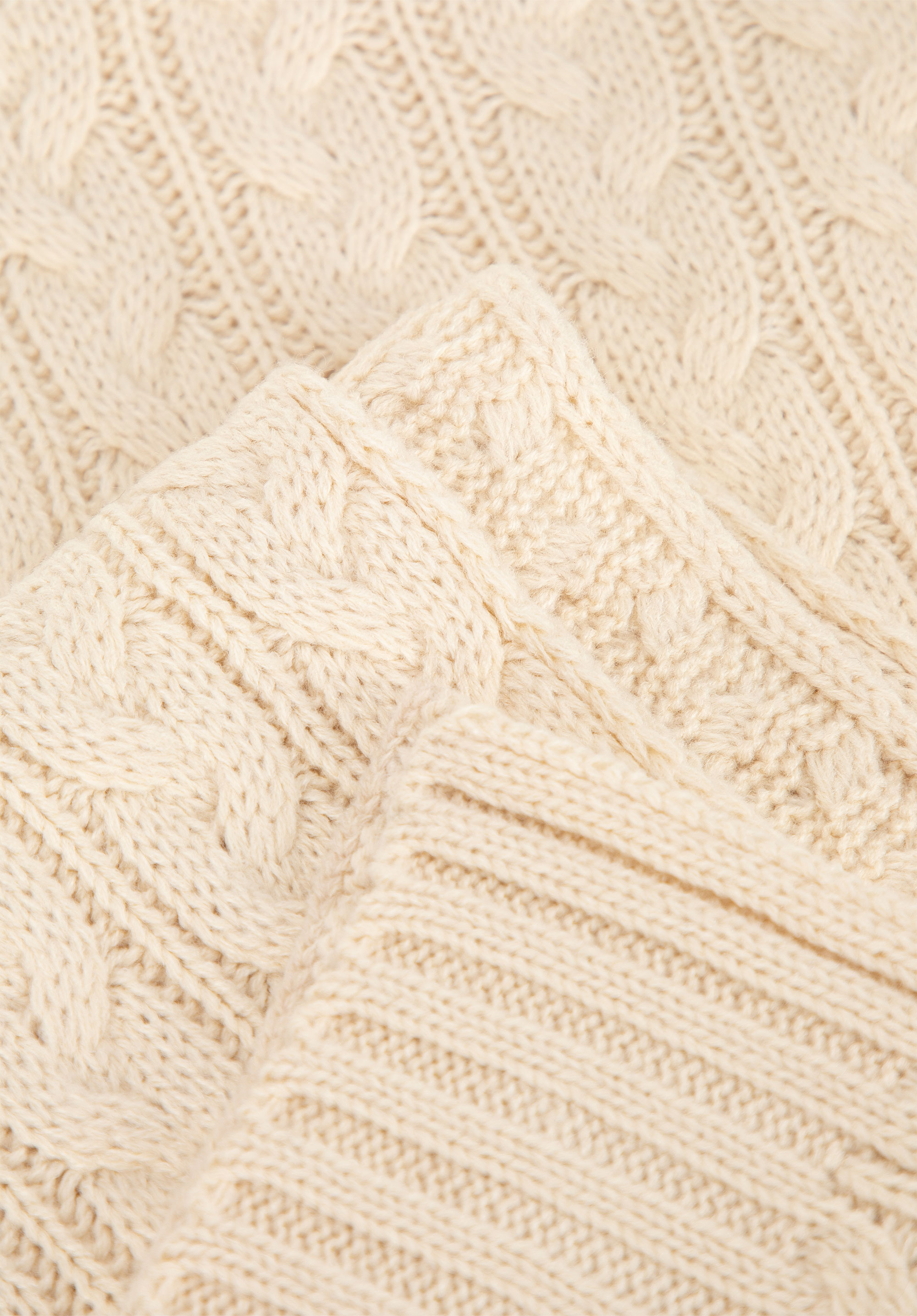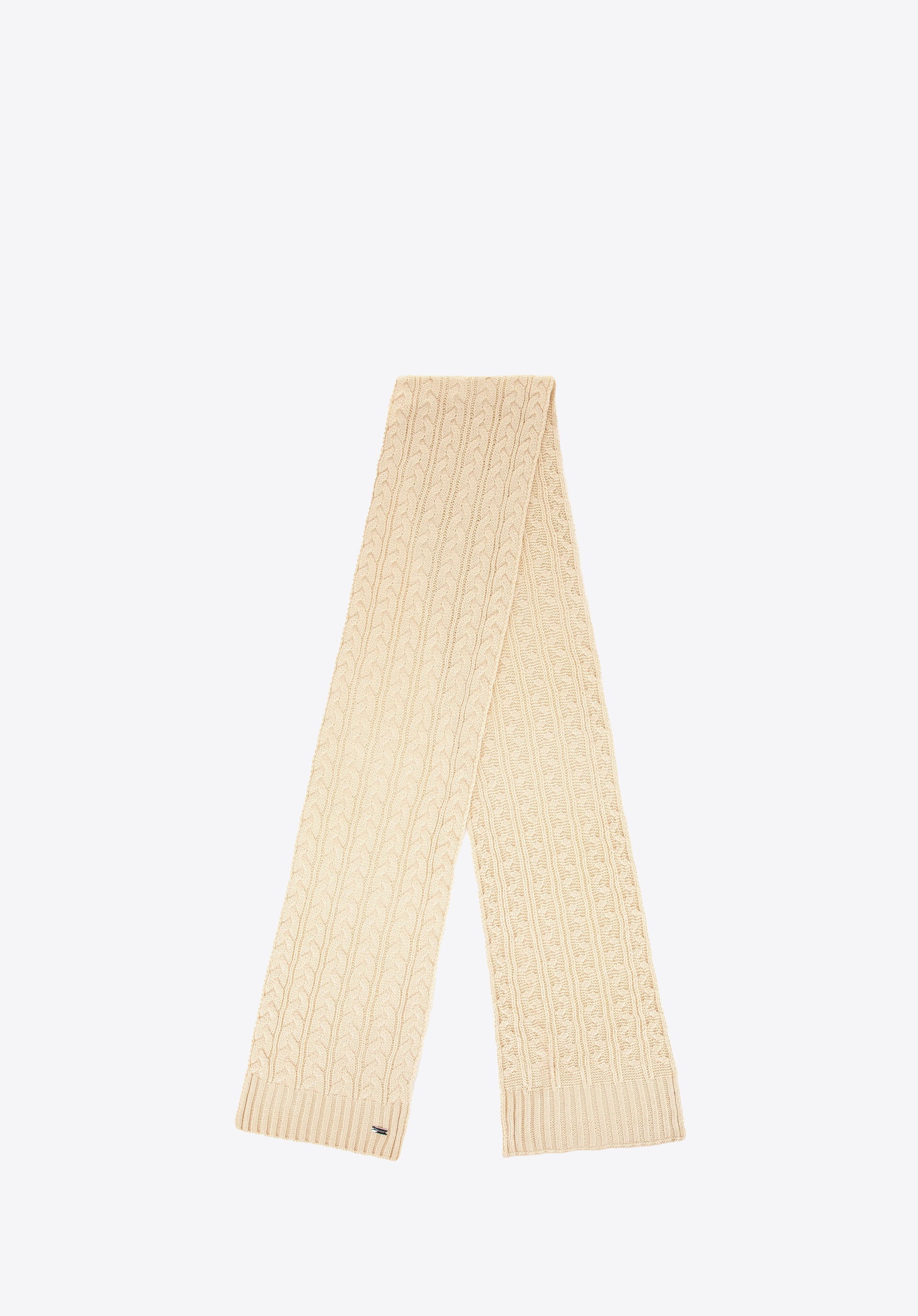 Eșarfă acrilică tricotată cu împletituri pentru femei crem