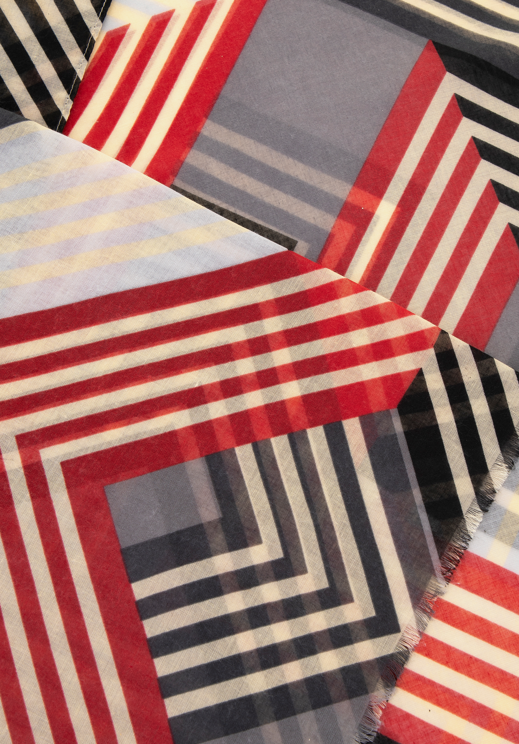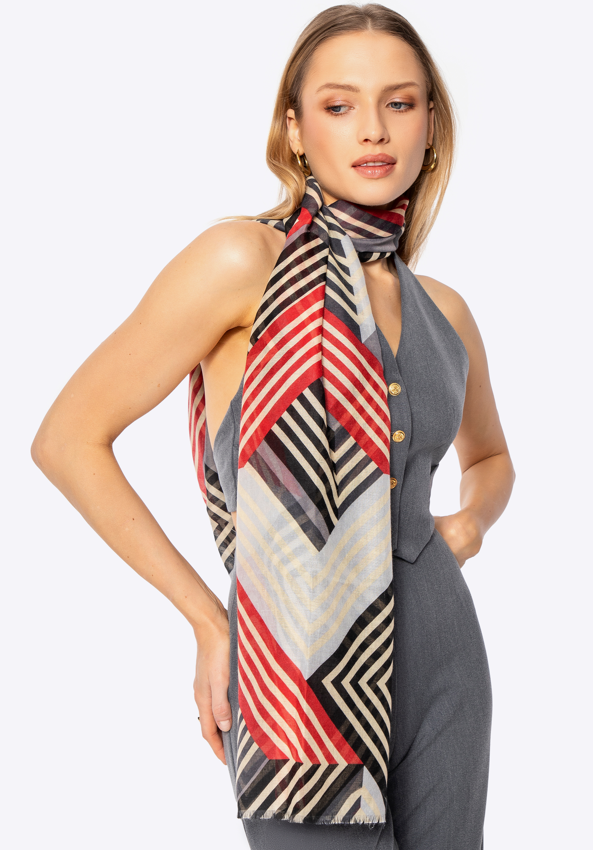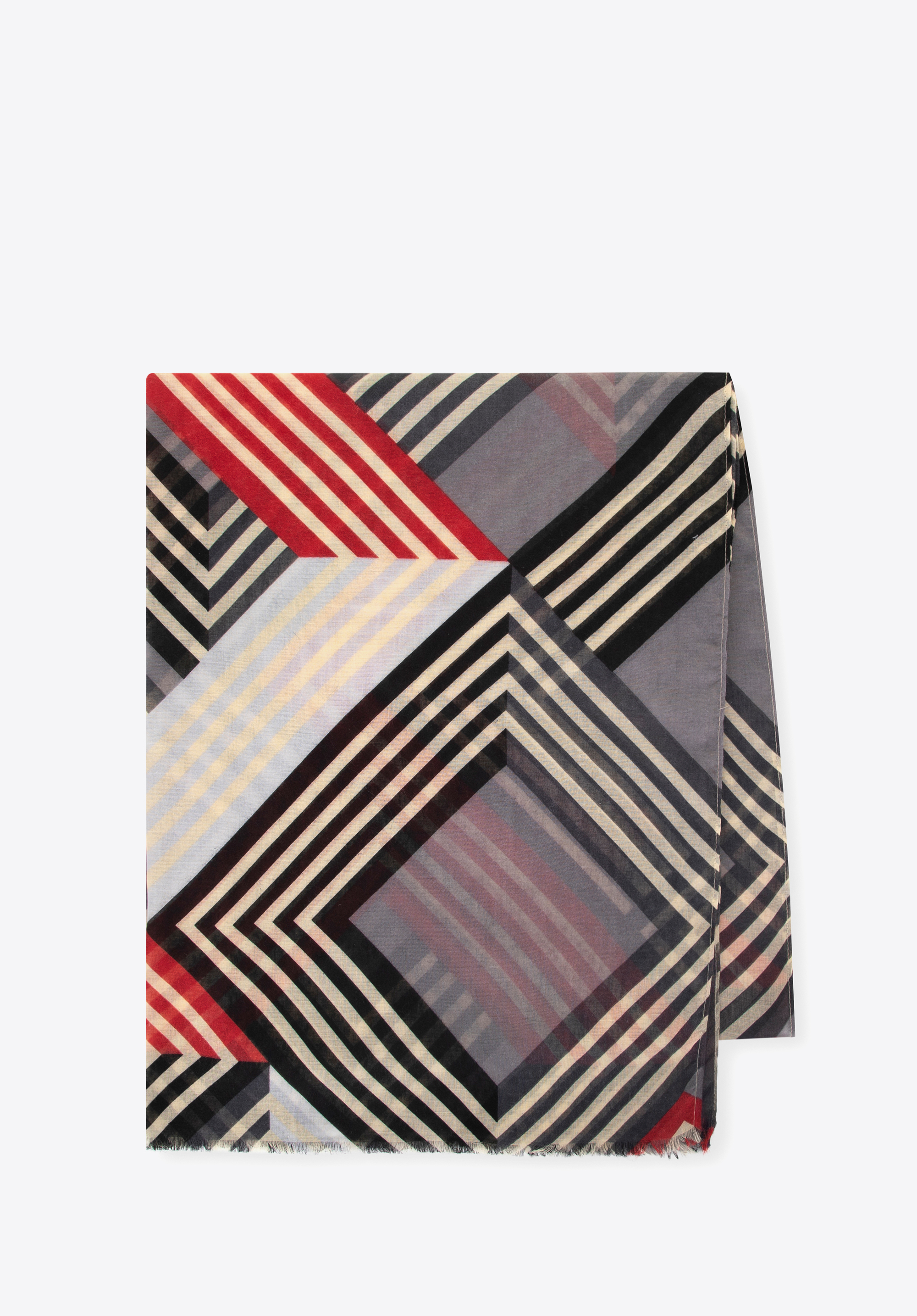 Eșarfă cu model geometric de damă Culoare: negru - roșu