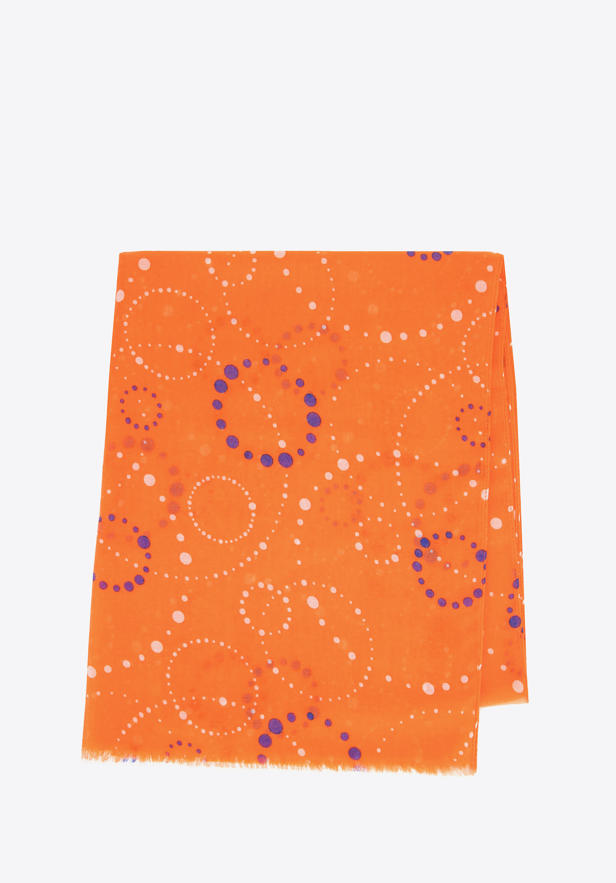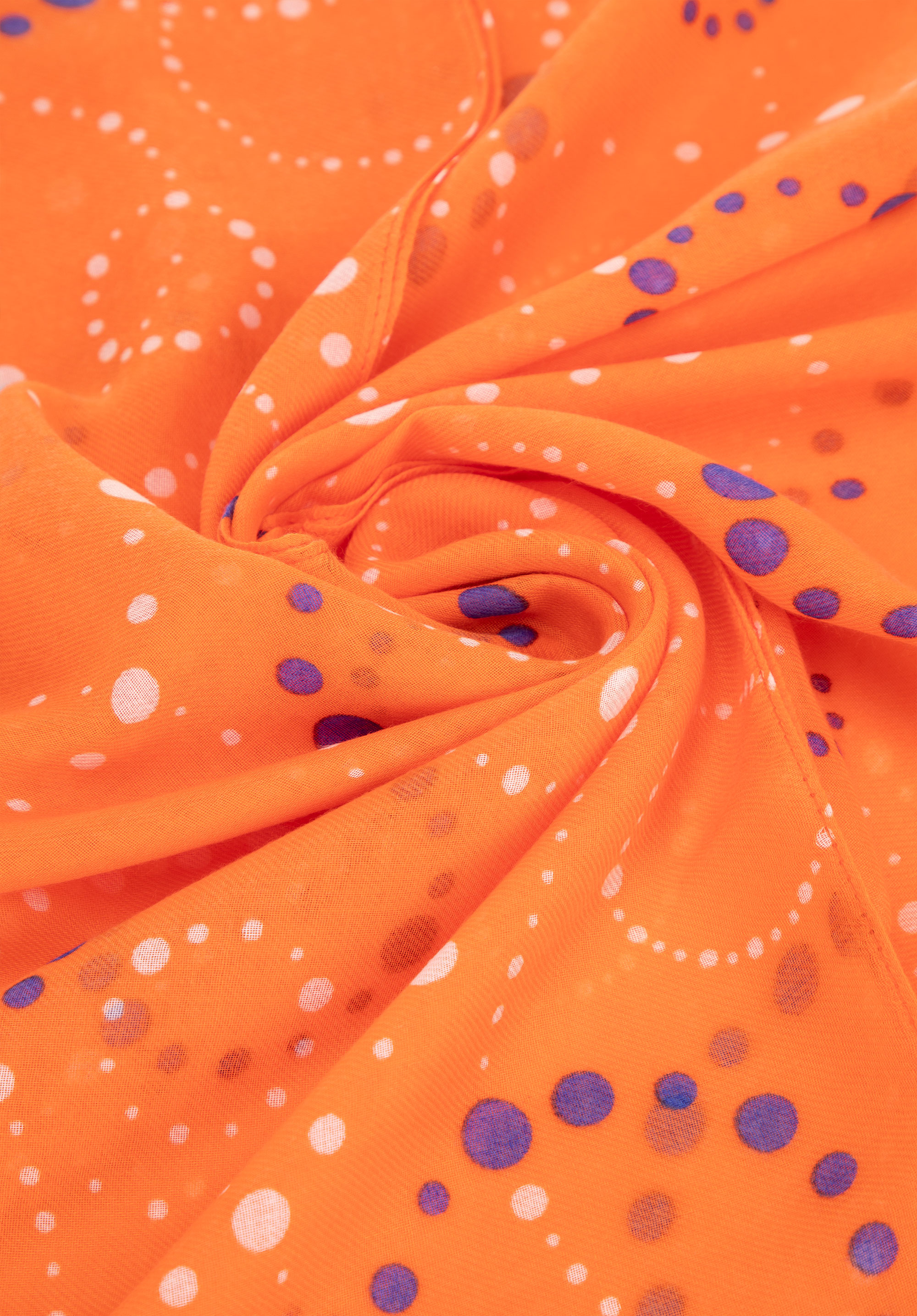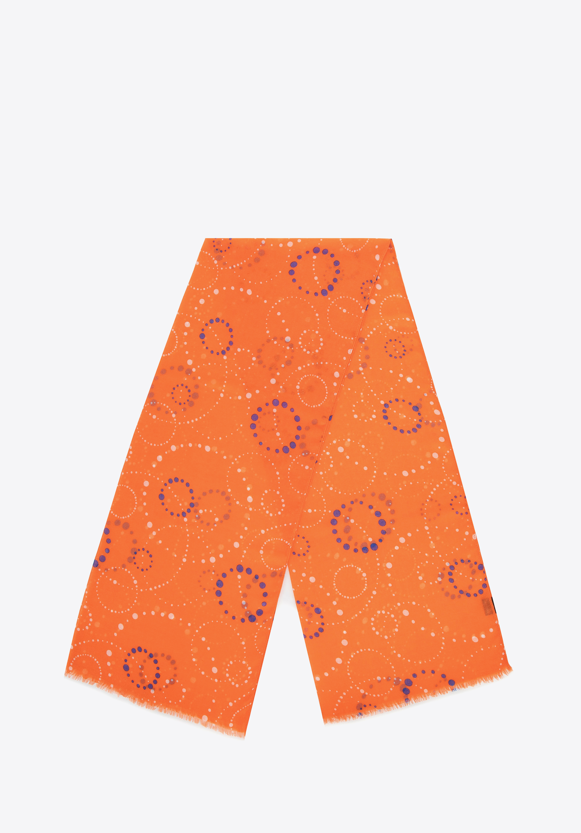 Această eșarfă unică, realizată din poliester moale și ușor , se mândrește cu un design excepțional. Cercurile geometrice formate din puncte minuscule creează un model armonios care completează cu ușurință atât ținutele casual, cât și ansamblurile mai sofisticate.