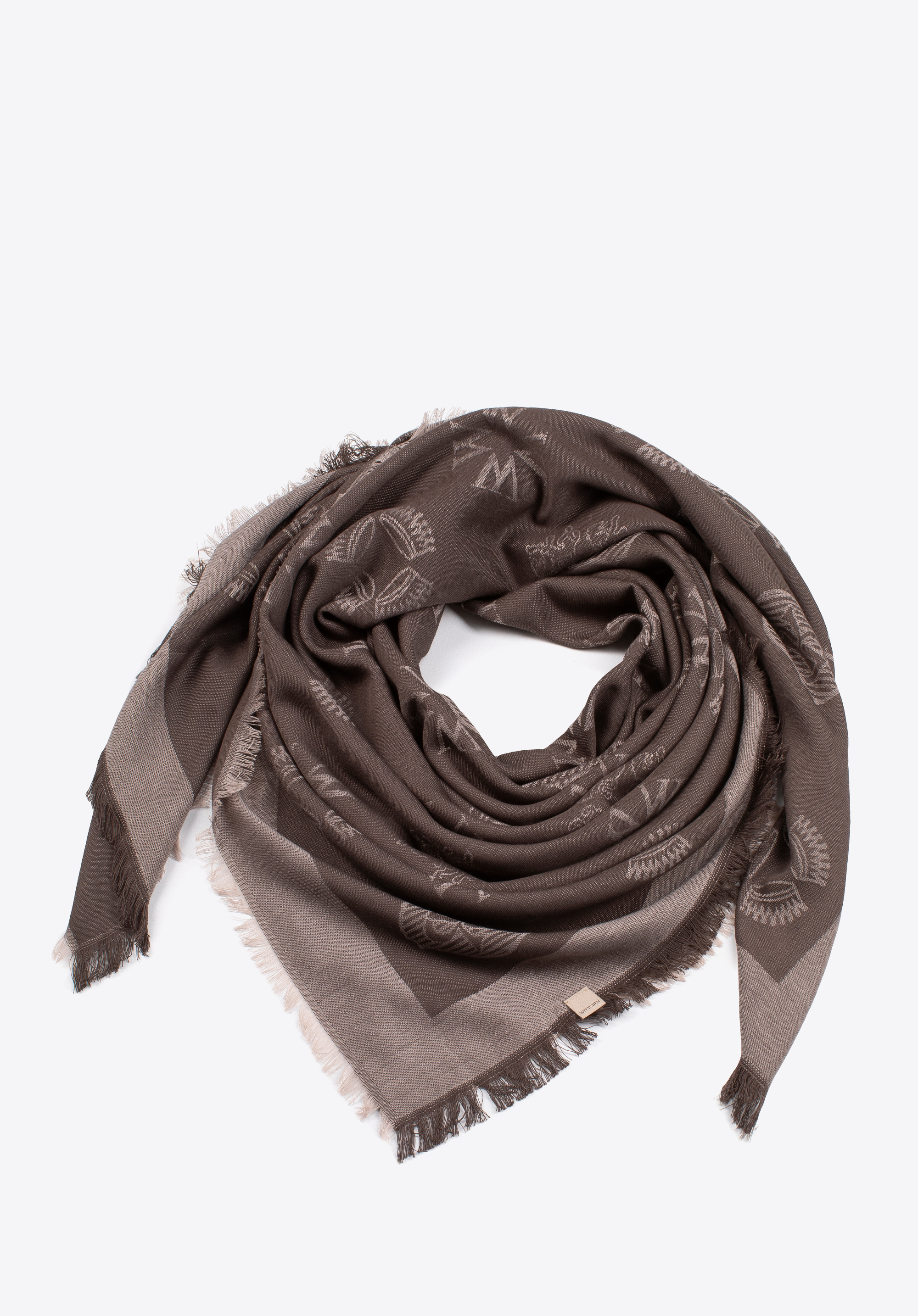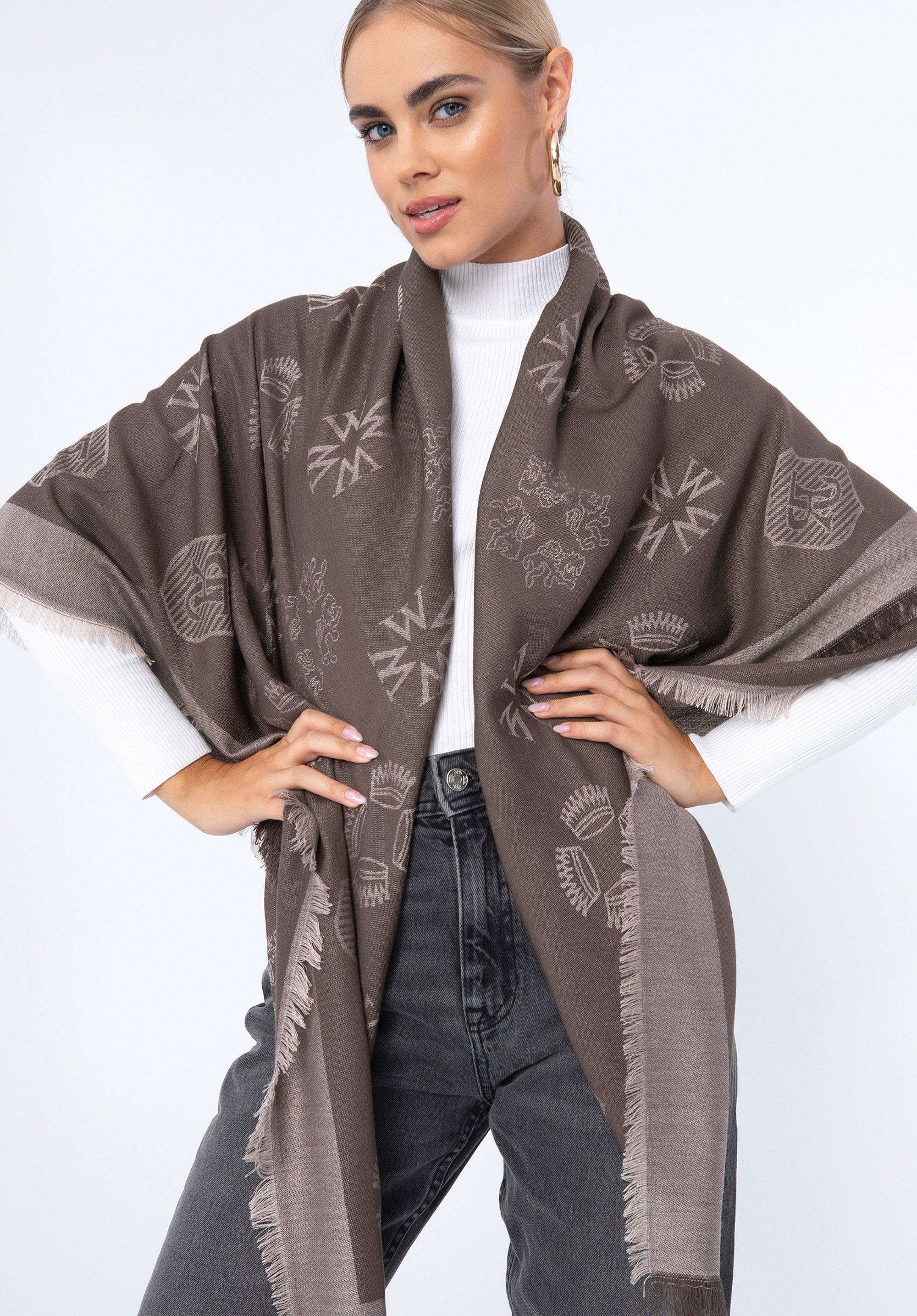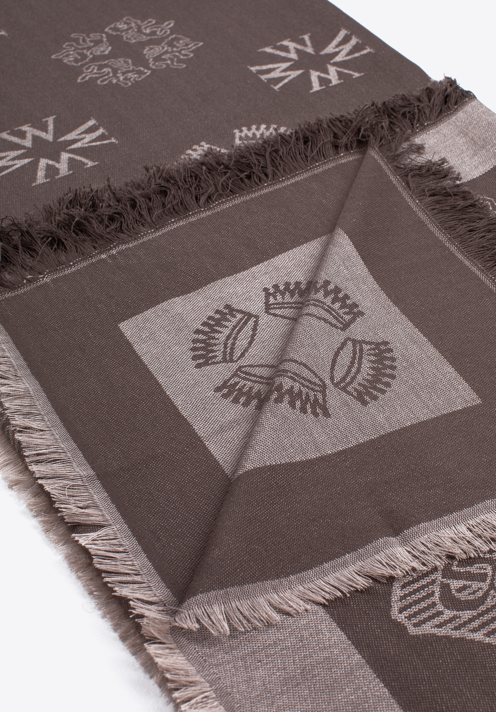 Această eșarfă elegantă pentru femei va fi un accesoriu unic pentru orice ținută. Este moale la atingere, ceea ce îi va permite să fie aranjată liber, atât în jurul gâtului, cât și pe umeri. Modelul cu steme, lei, coroane și litera "W", cunoscut din linia de genți Signature, împodobește întreaga suprafață. Strălucirea delicată face ca culorile eșarfei să arate diferit în funcție de iluminare. Cu toate acestea, în ciuda finisajului perlat, poate fi purtată cu stiluri formale, cum ar fi o fustă creion și o cămașă albă. Eșarfa pentru femei cu monogramă țesută din bambus se va potrivi atât cu un palton elegant, cât și cu o rochie simplă. Este o idee ideală de cadou pentru orice ocazie.