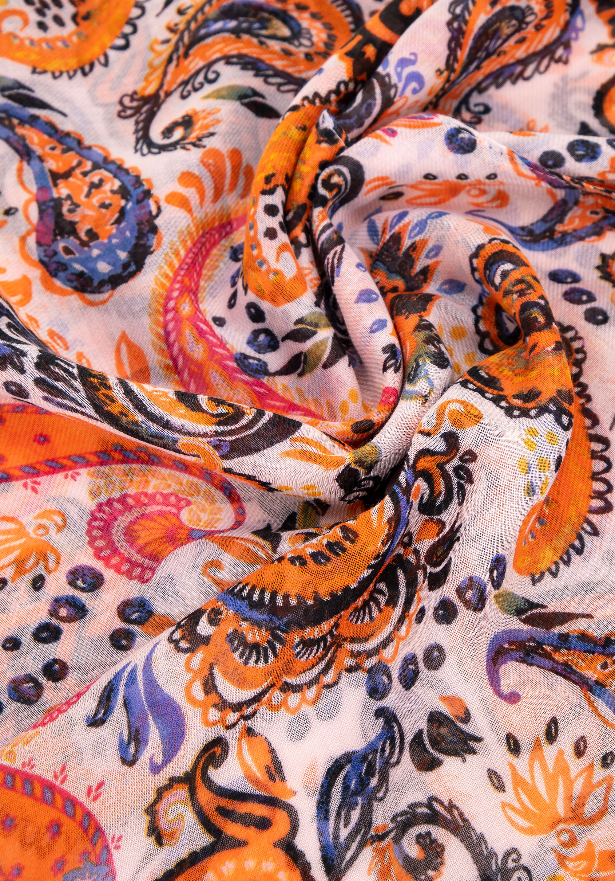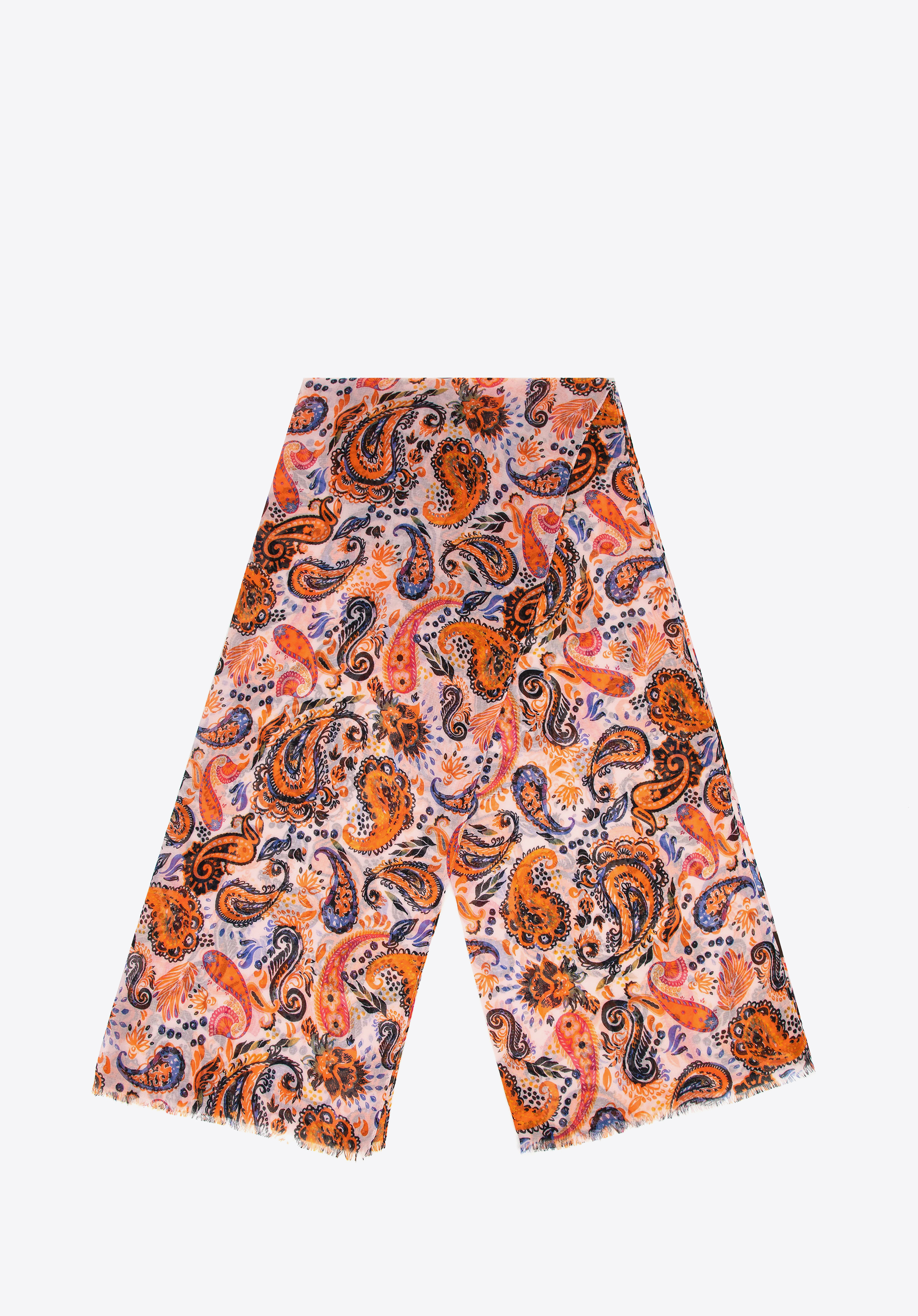 Această eșarfă de damă, din poliester, se remarcă prin moliciune excepțională și textura delicată. Țesătura sa ușoară se drapează frumos, oferind confort și eleganță subtilă. Modelul paisley atemporal adaugă o notă de rafinament oricărei ținute, făcându-l un accesoriu perfect pentru orice, de la look-uri casual până la look-uri mai formale.