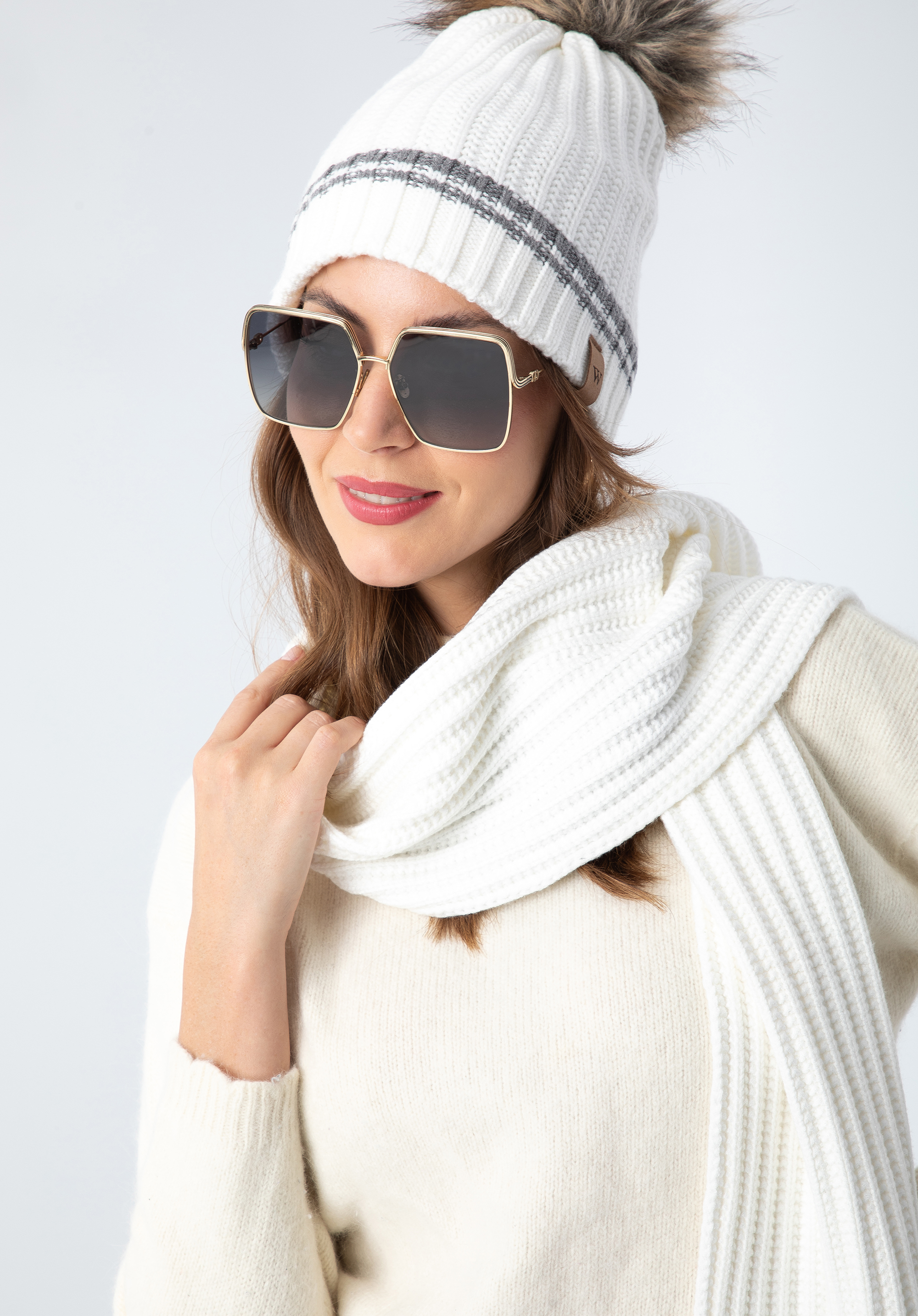 Sfatul nostru: combină această eșarfă cu o pălărie monocromă simplă pentru un look uniform.