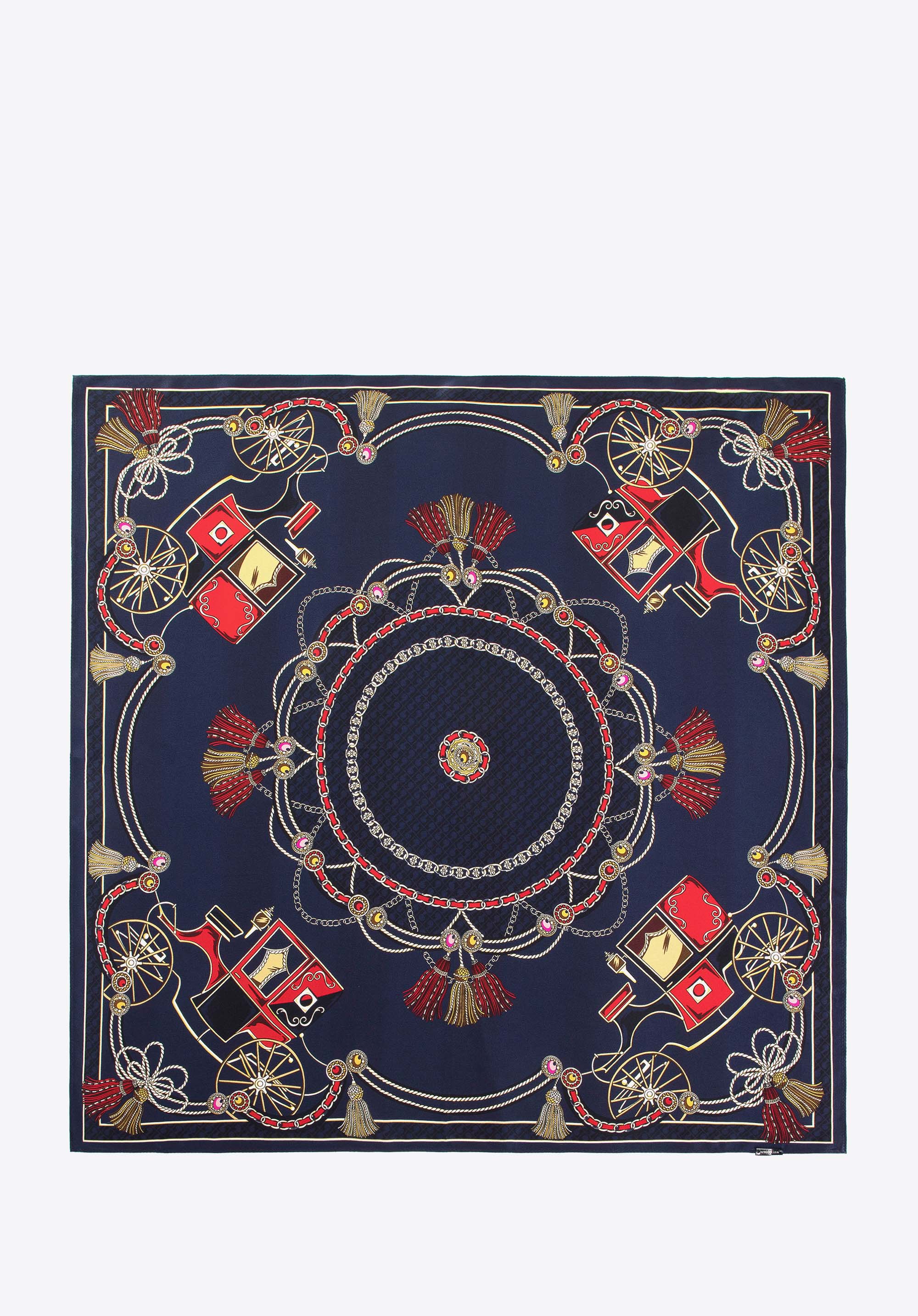 - Dimensiuni: 66 × 66 cm – ideal pentru a fi purtat la gât sau ca accesoriu de geantă.