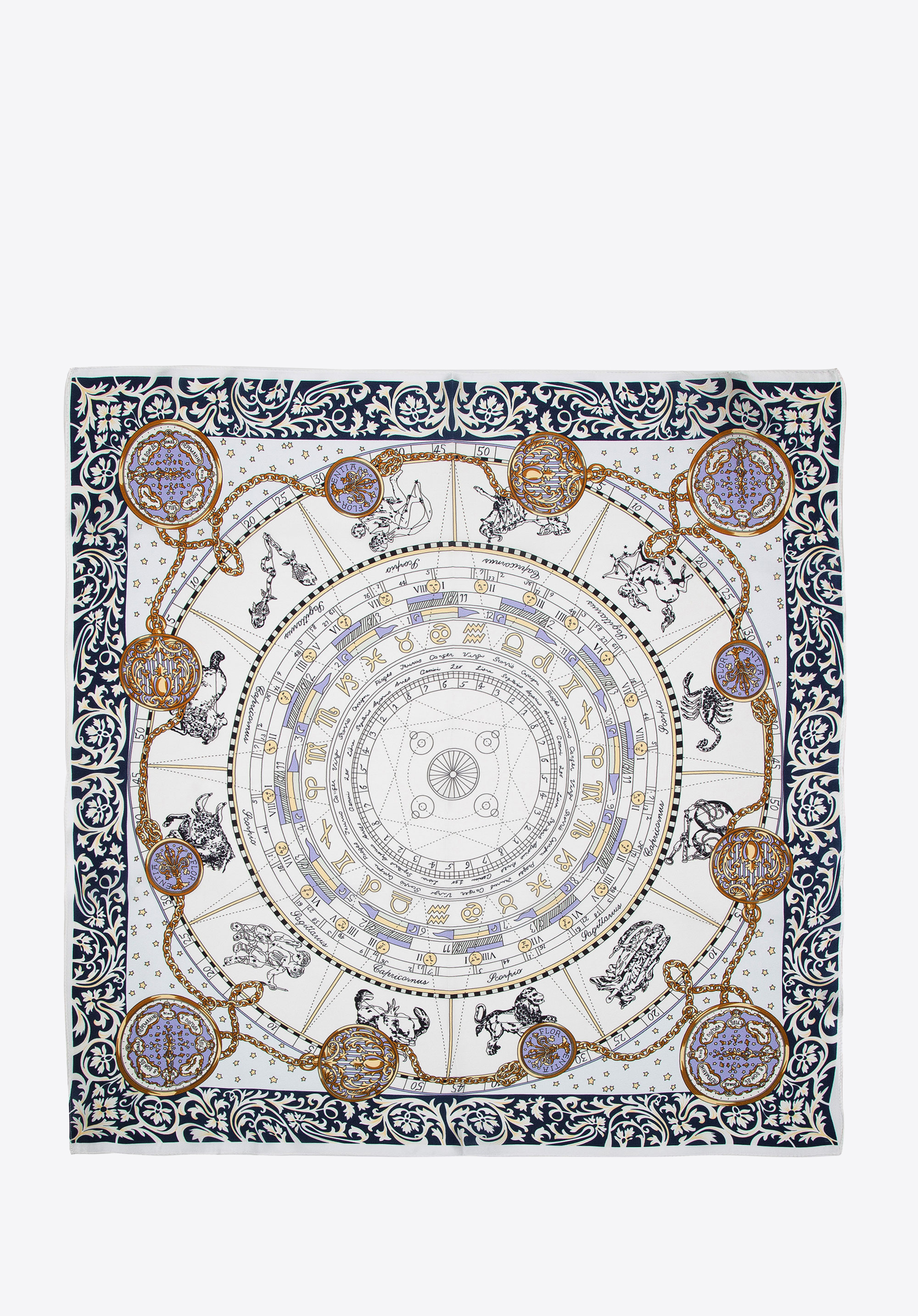 Eşarfă de mătase pentru femei geometrică alb-albastru marin