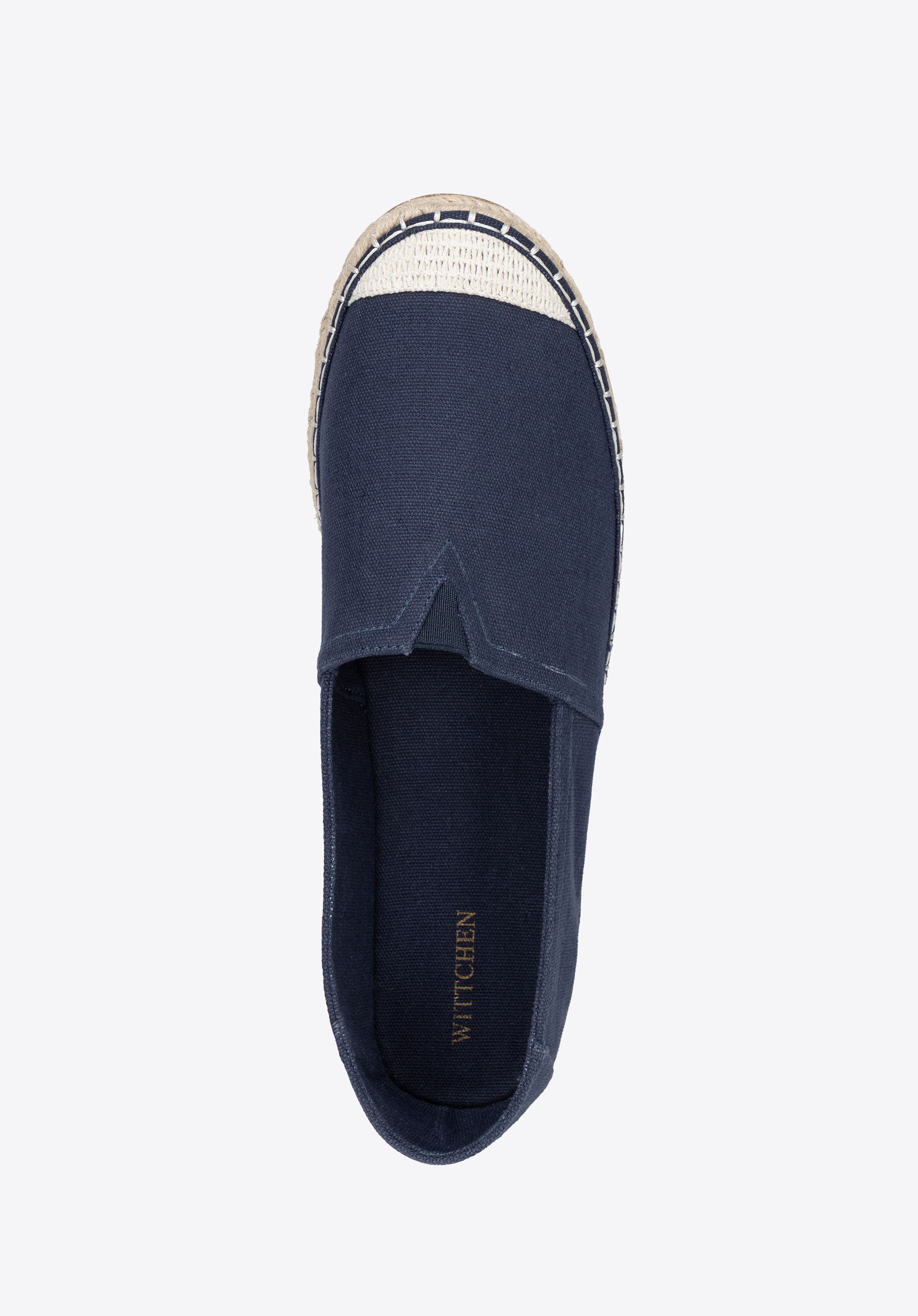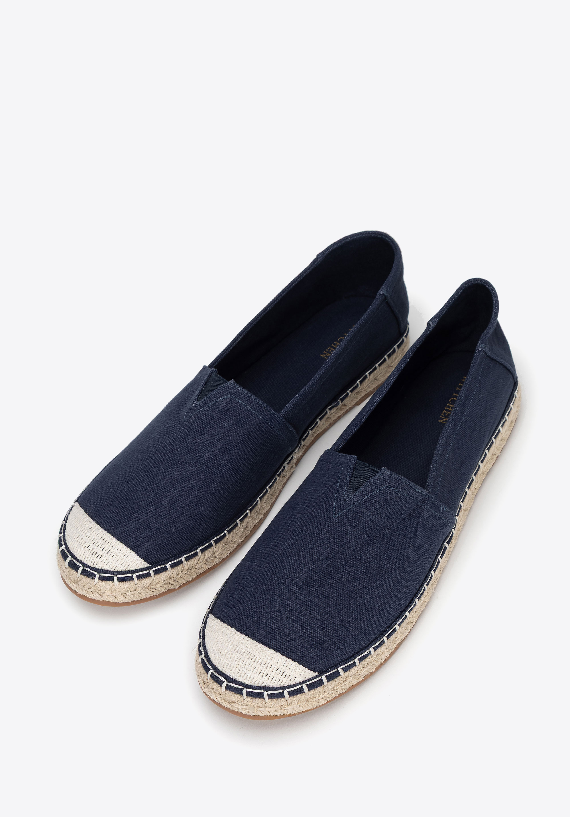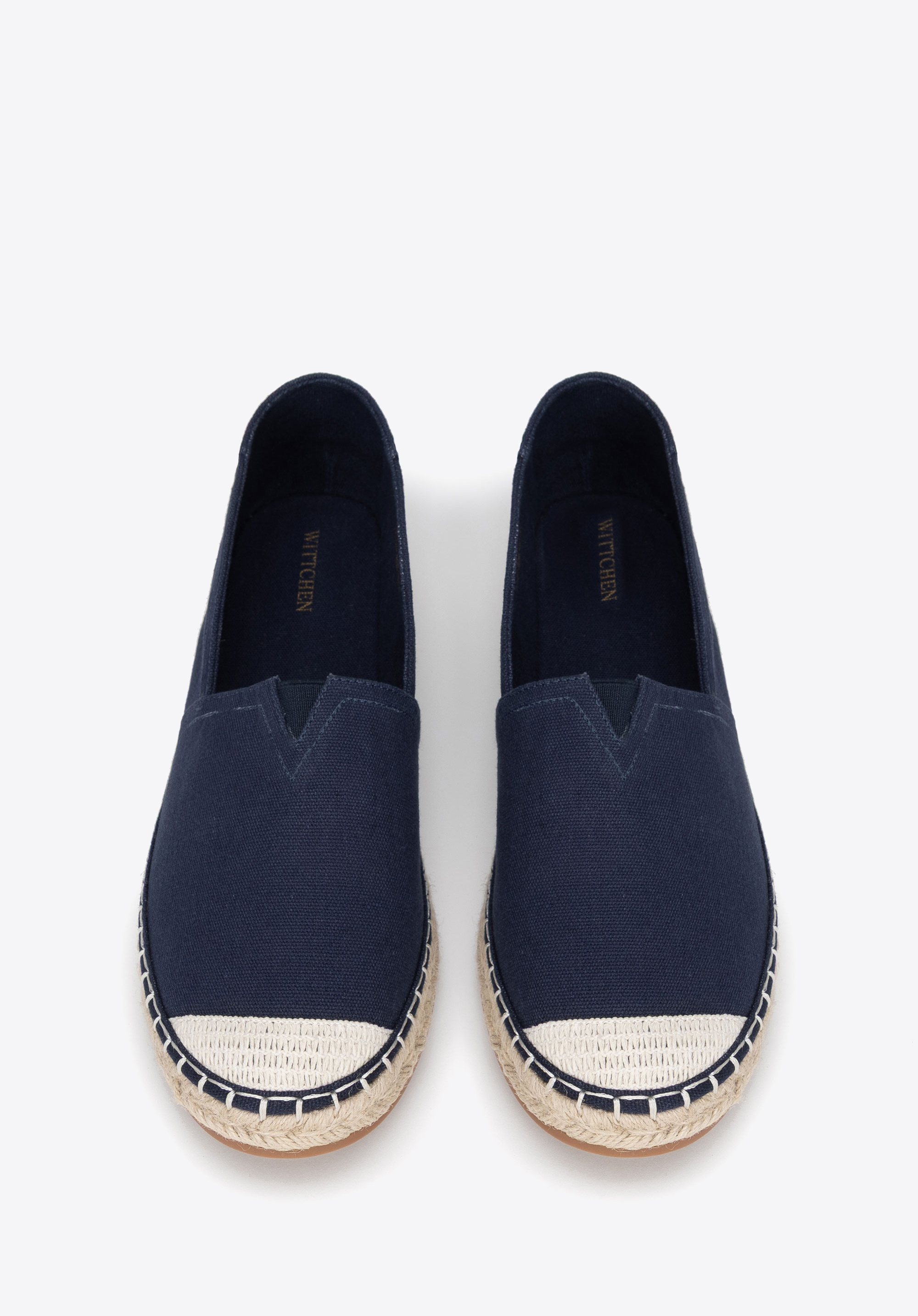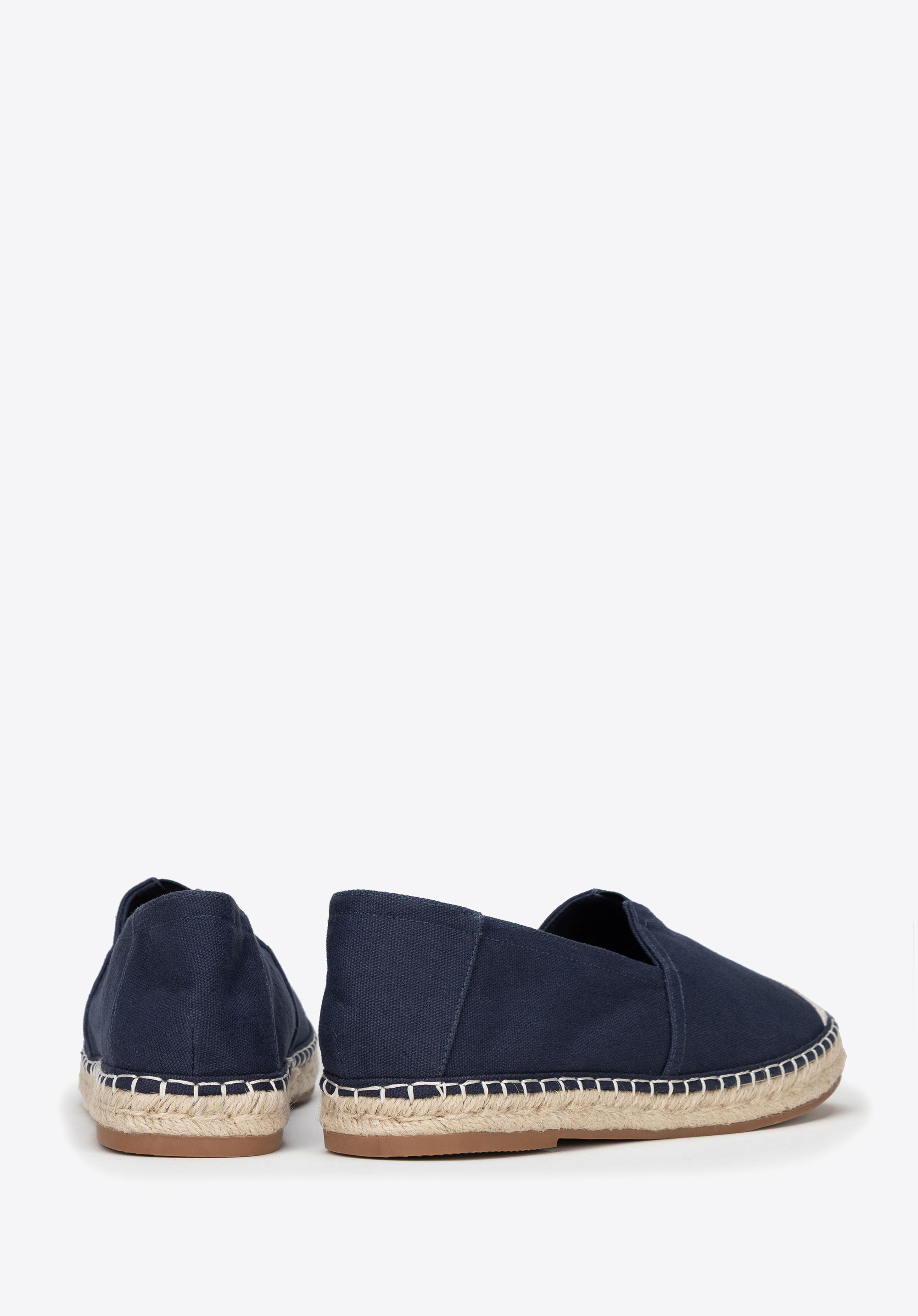 Confecționate din materiale de înaltă calitate, aceste espadrile îmbină confortul cu stilul, fiind ideale pentru ținutele de zi cu zi. Au vârf rotund și talpă joasă, caracteristice acestui model clasic, oferind confort pe parcursul întregii zile. Împletitura decorativă de pe marginea tălpii și a vârfului adaugă un plus de lejeritate și farmec estival, conferind pantofilor un aspect natural, perfect pentru vacanță.