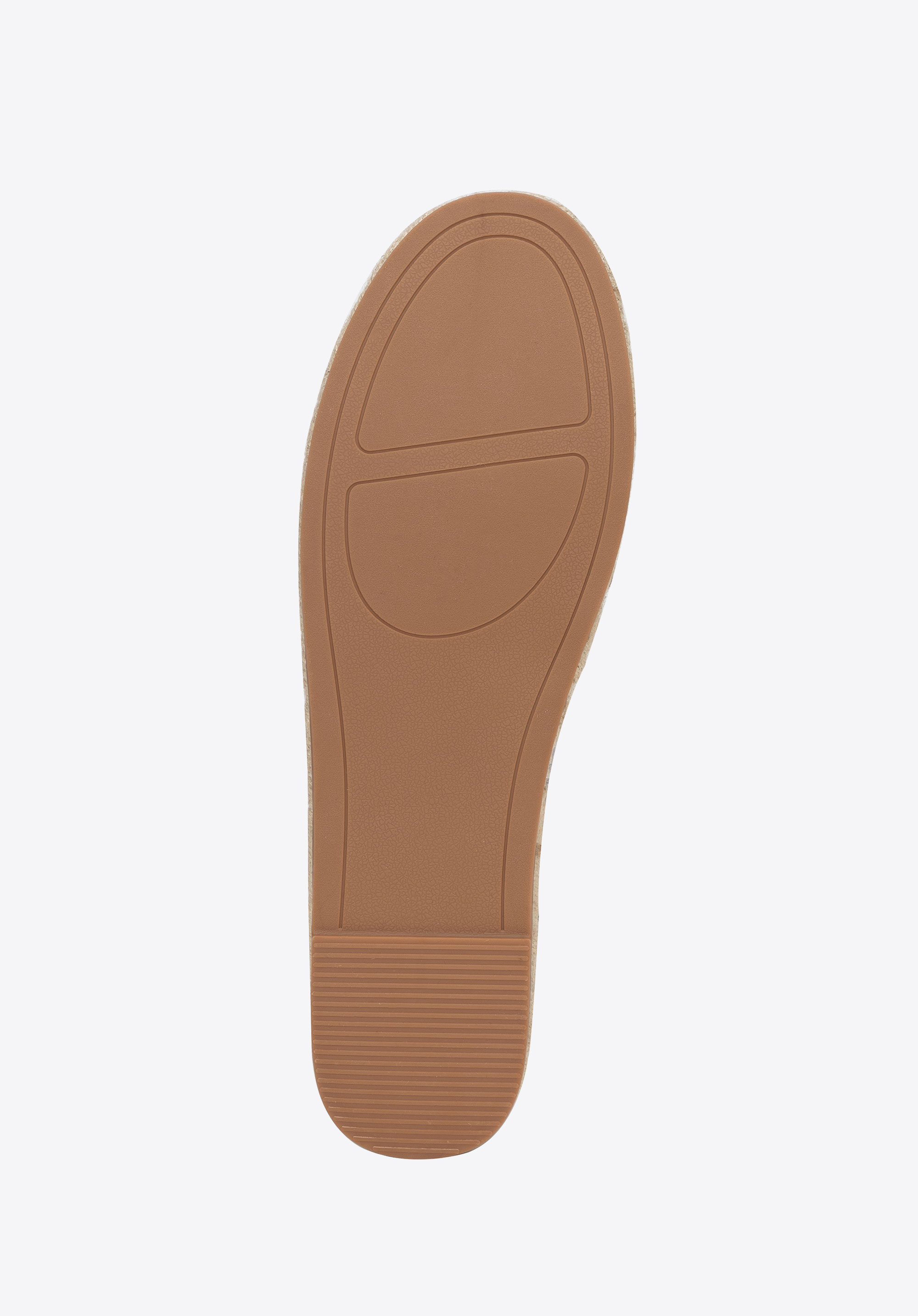 - Design: Împletitura decorativă de pe marginea tălpii și vârfului este un detaliu subtil, dar de efect, ce oferă lejeritate și un farmec estival.