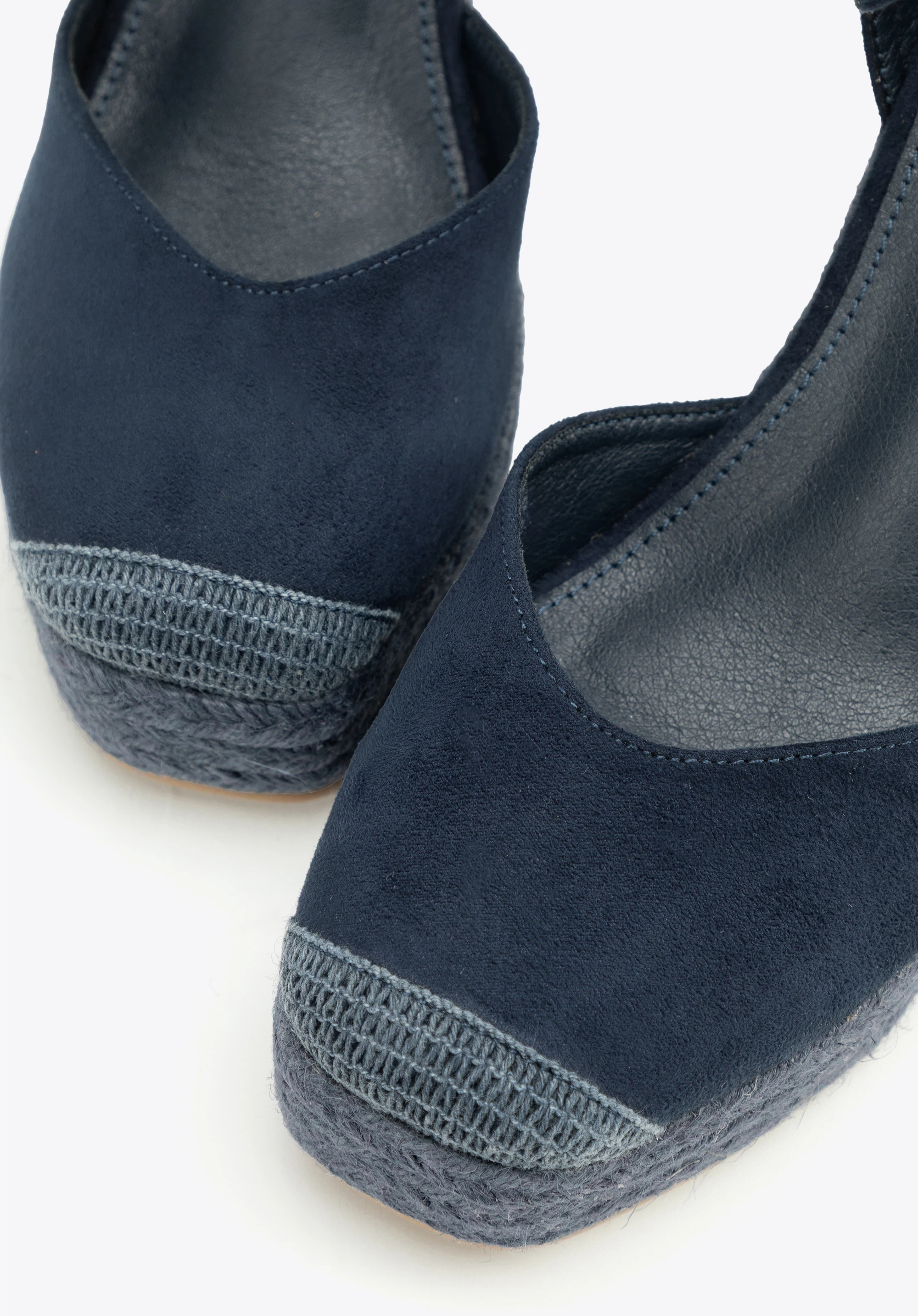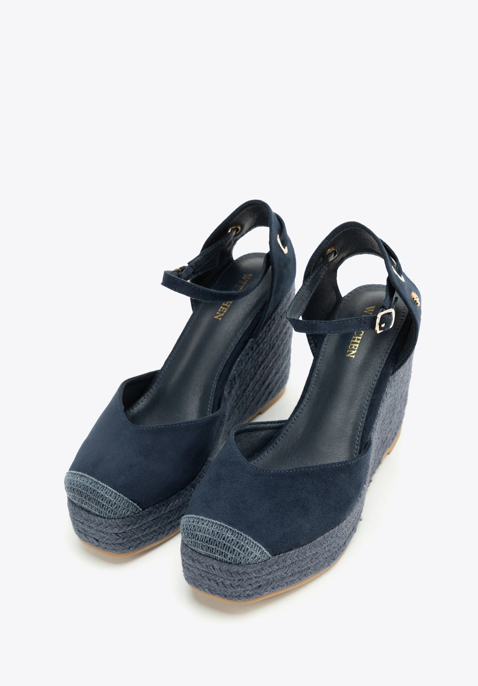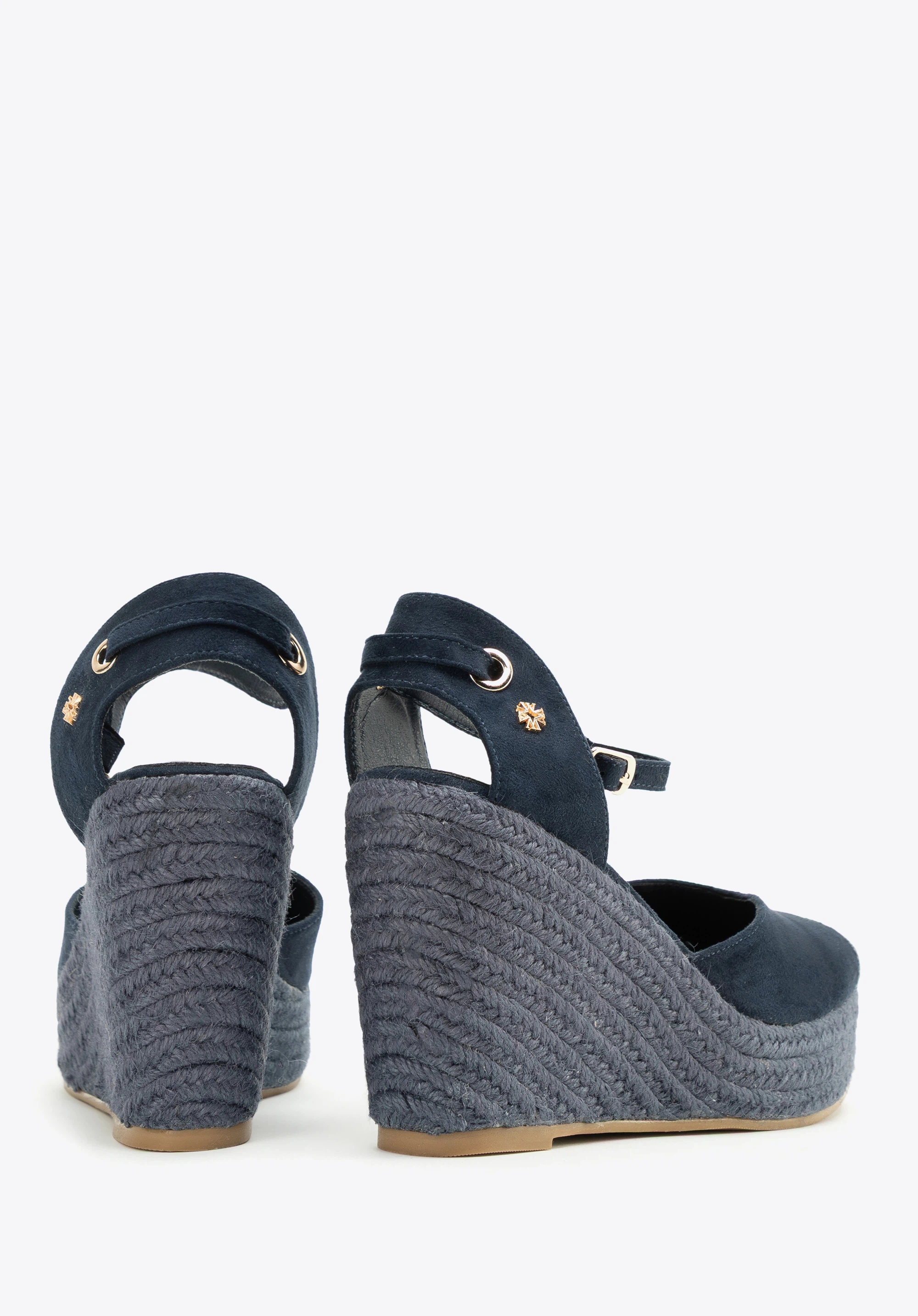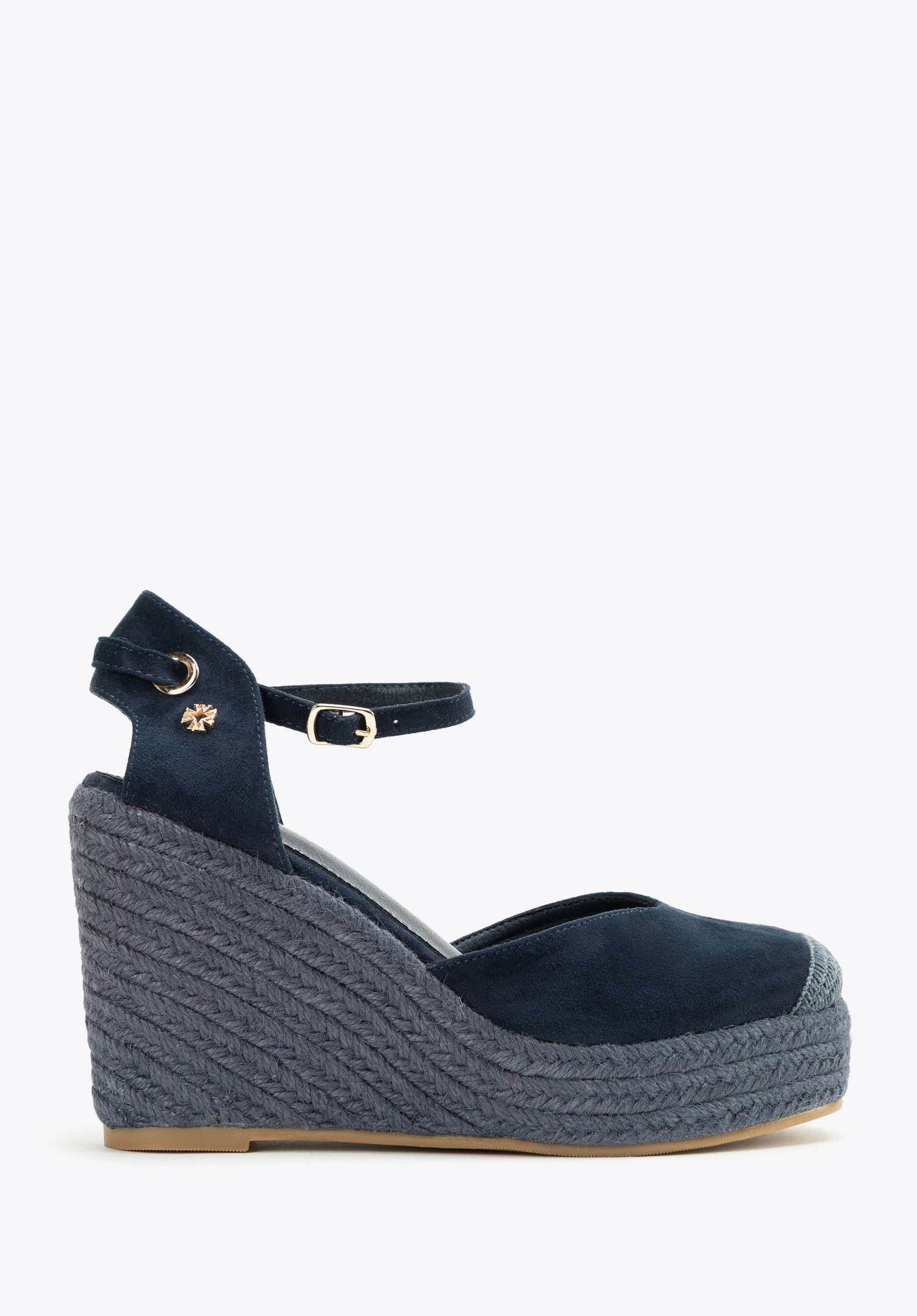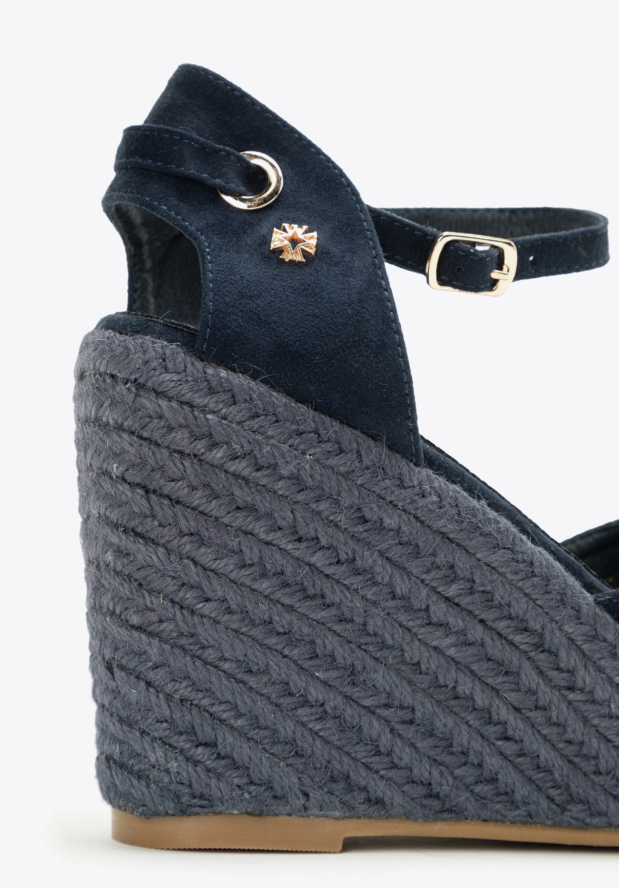 Elegante și rafinate – aceste espadrile pentru femei îmbină clasicul cu lejeritatea verii. Confecționate din material sintetic, atrag atenția prin împletitura decorativă de pe vârf și marginea tălpii. Vârful pătrat și talpa tip platformă alungesc optic silueta, iar detaliul discret cu logo adaugă o notă elegantă. Bareta cu cataramă și șnurul ce se leagă în jurul gleznei permit personalizarea stilului după bunul plac.