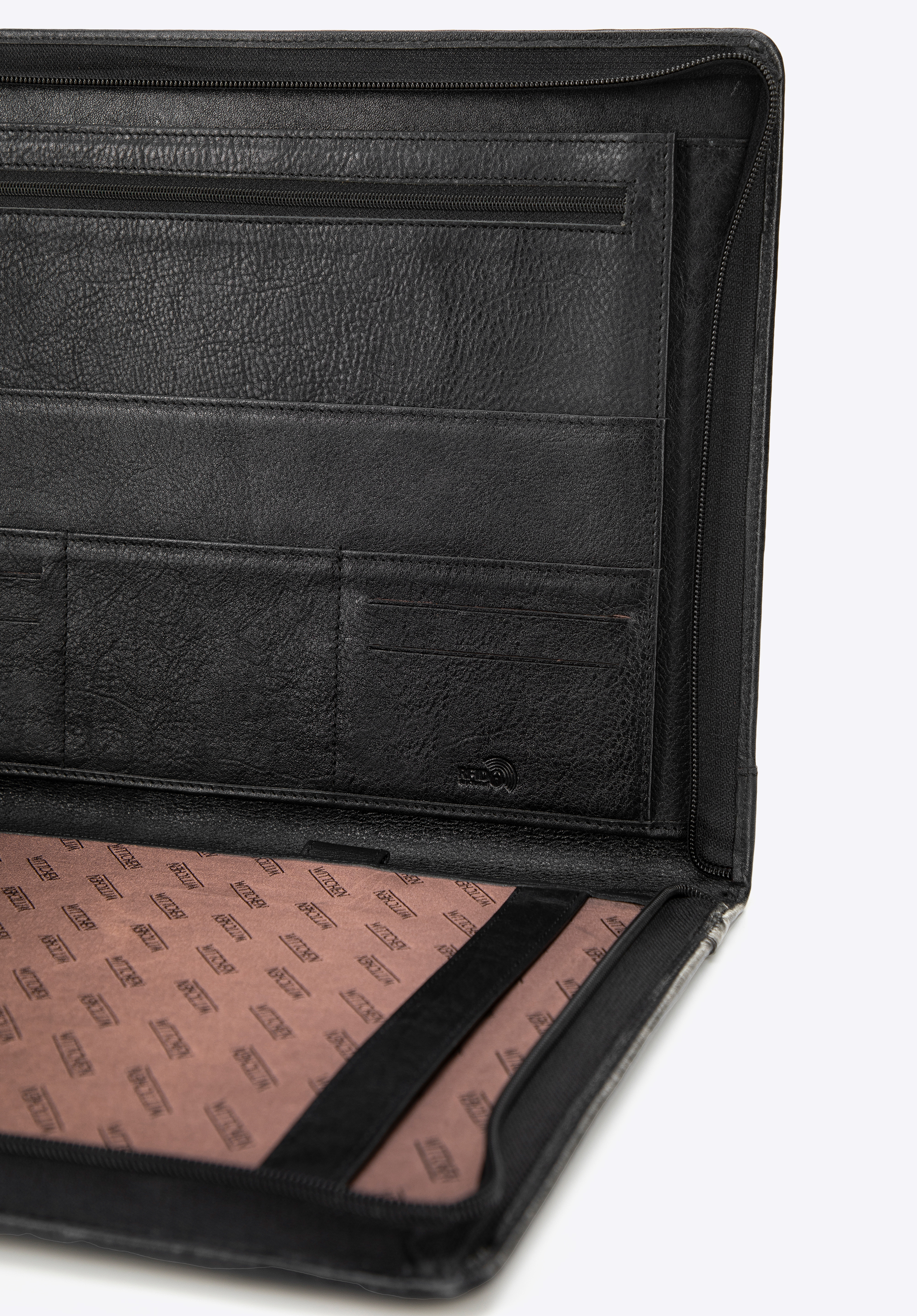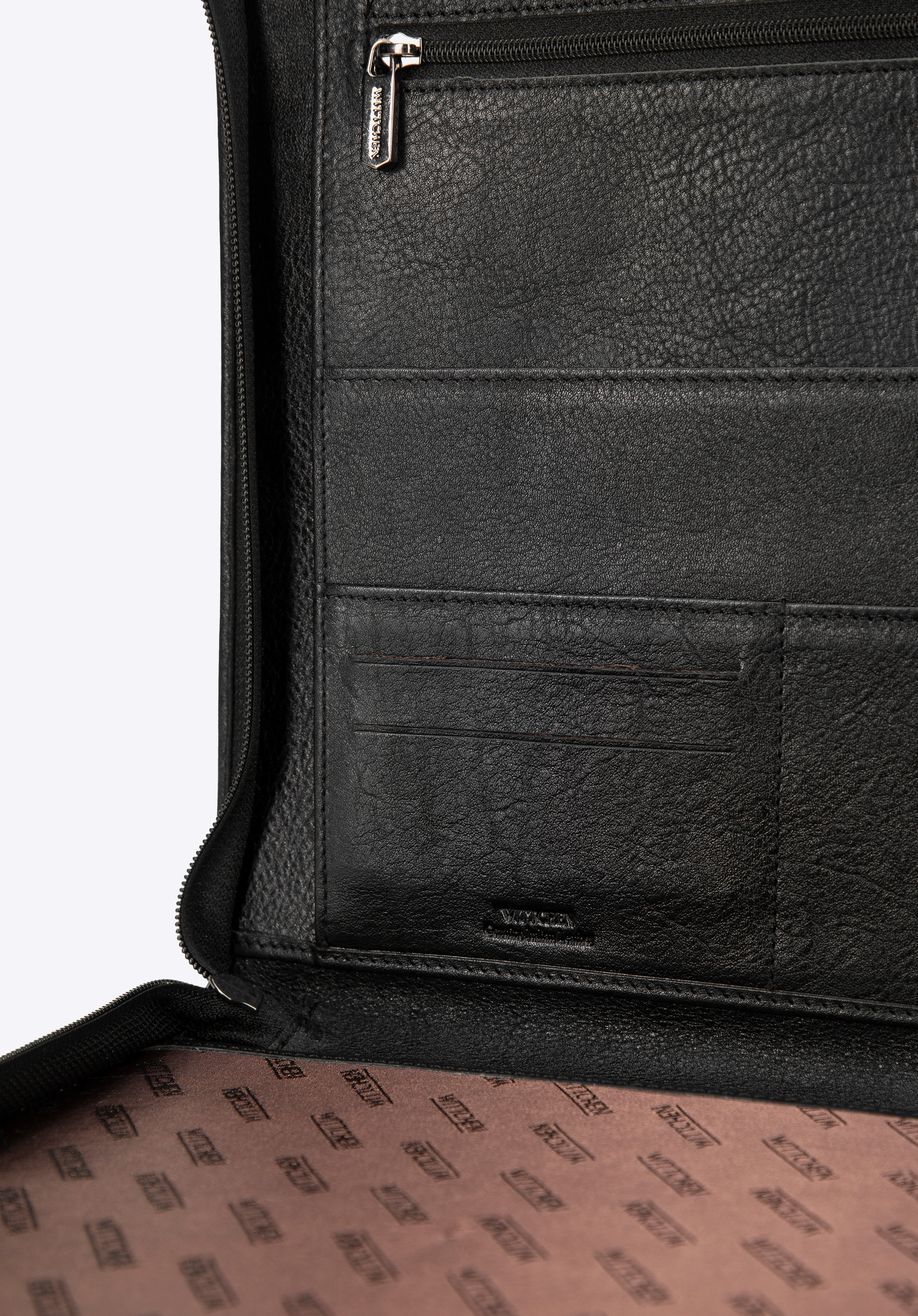 - Interior: 4 buzunare practice, inclusiv unul cu fermoar, plus 7 sloturi dedicate pentru carduri.