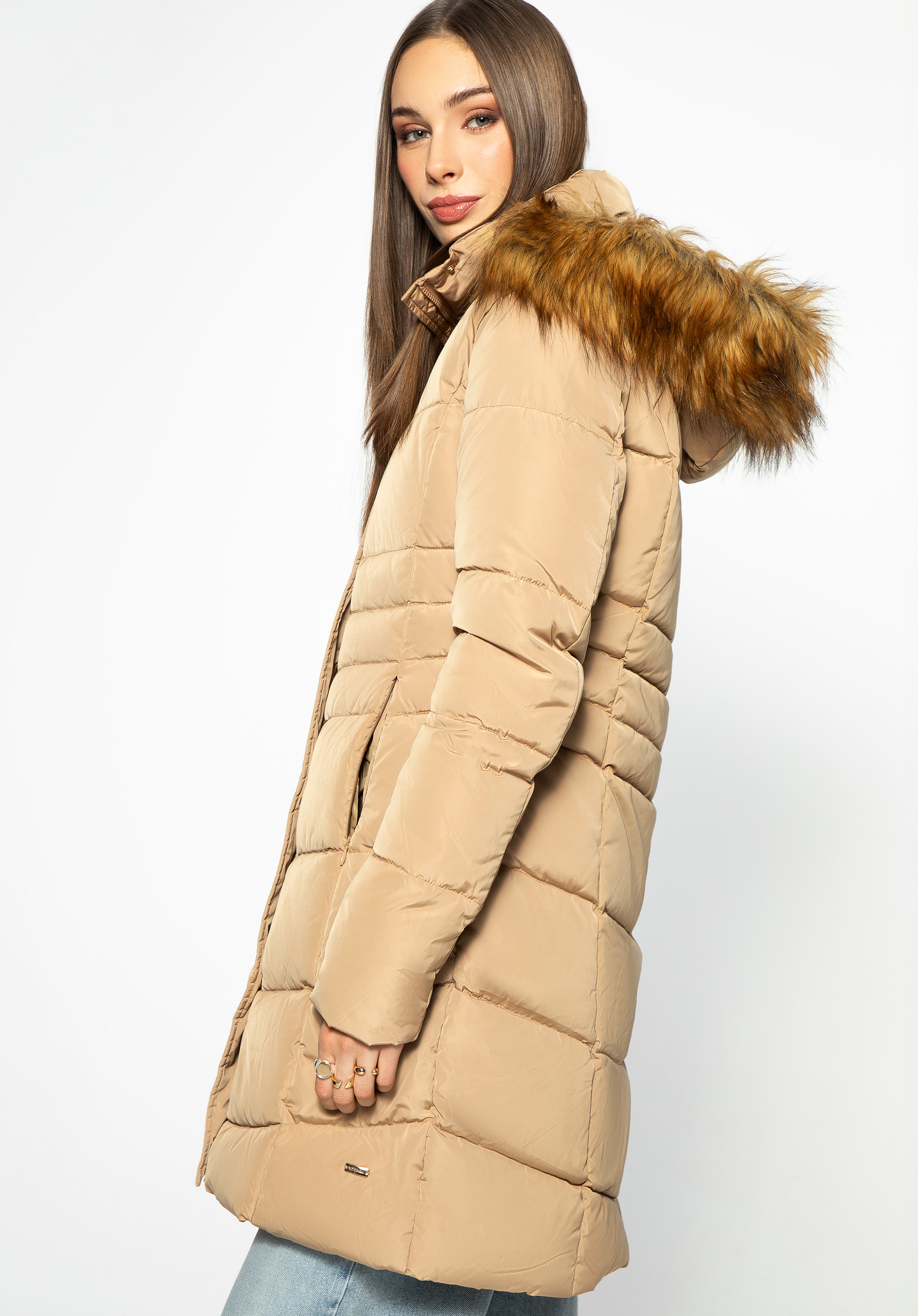 O geacă călduroasă și elegantă este o alegere obligatorie pentru lunile de toamnă și iarnă. Acest model este umplut cu 70% puf de rață și 30% pene de rață, astfel încât vă va ține de cald în zilele foarte reci. Are o glugă mare cu blană artificială detașabilă, așa că va fi perfectă dacă nu vă plac căciulile. Există buzunare ascunse cu fermoar în cusături, în care vă puteți băga mâinile atunci când vă uitați mănușile. Tăietura simplă, matlasată se va asorta cu aproape orice ținută, fie că este vorba de blugi și trappers cu talpă groasă, fie de o rochie și cizme lungi. Geaca matlasată pentru femei din puf cu glugă este o alegere excelentă pentru fanele clasicului care apreciază accesoriile practice și elegante.