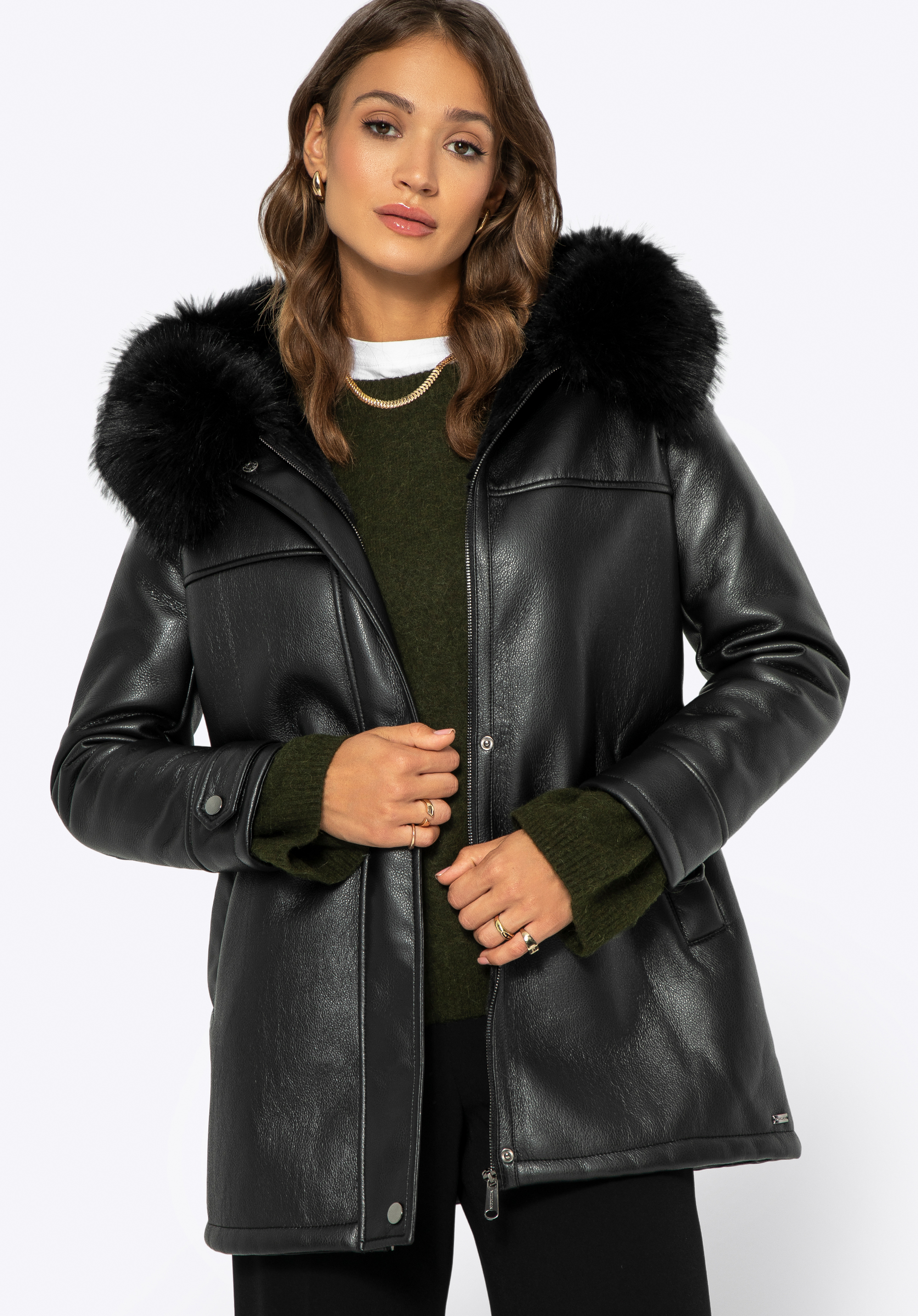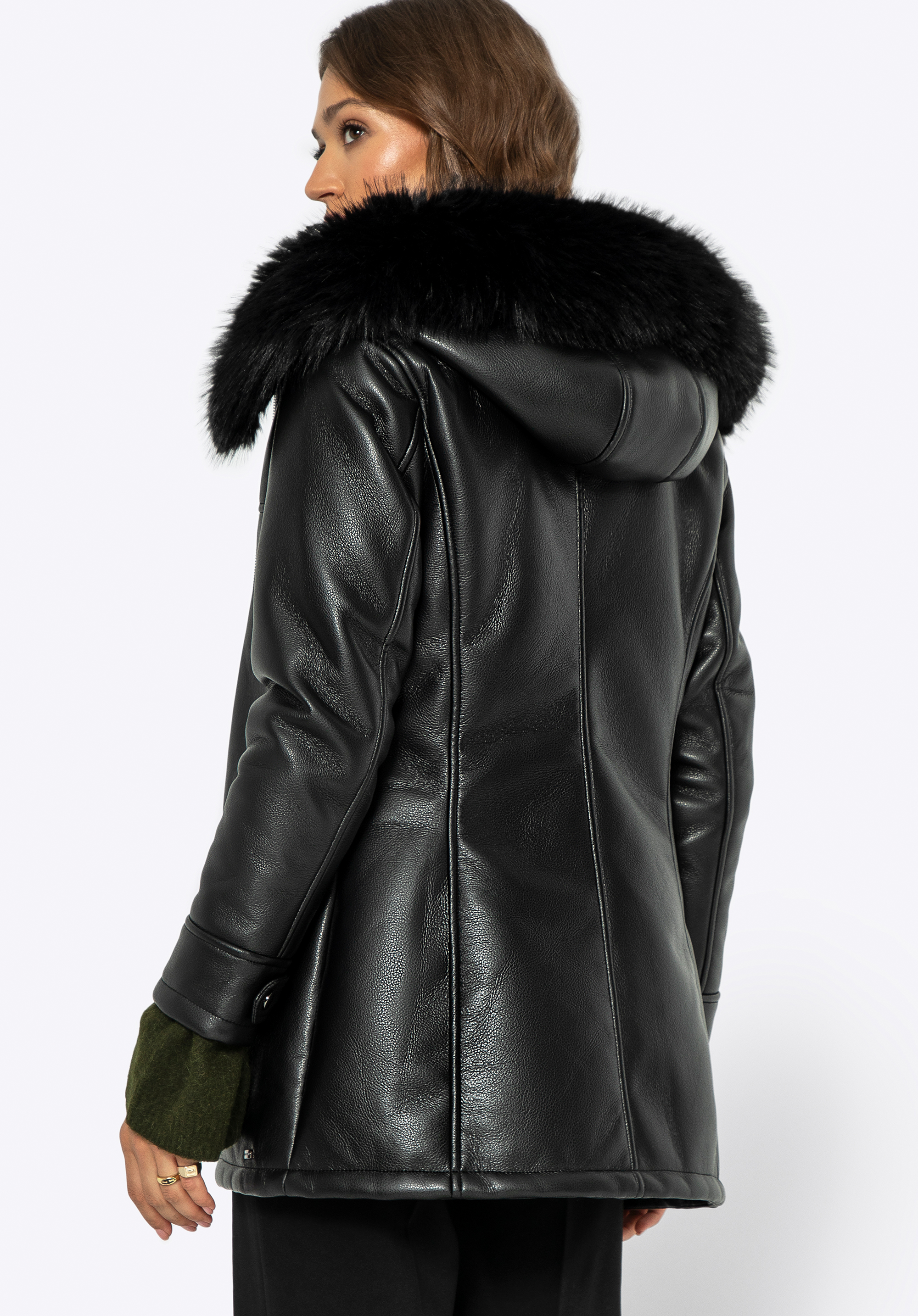 Sfatul nostru: Asorteaz-o cu o rochie elegantă și stiletto pentru o ținută cochetă, de seară. Blana artificială de pe guler adaugă o notă de lux oricarui stil.