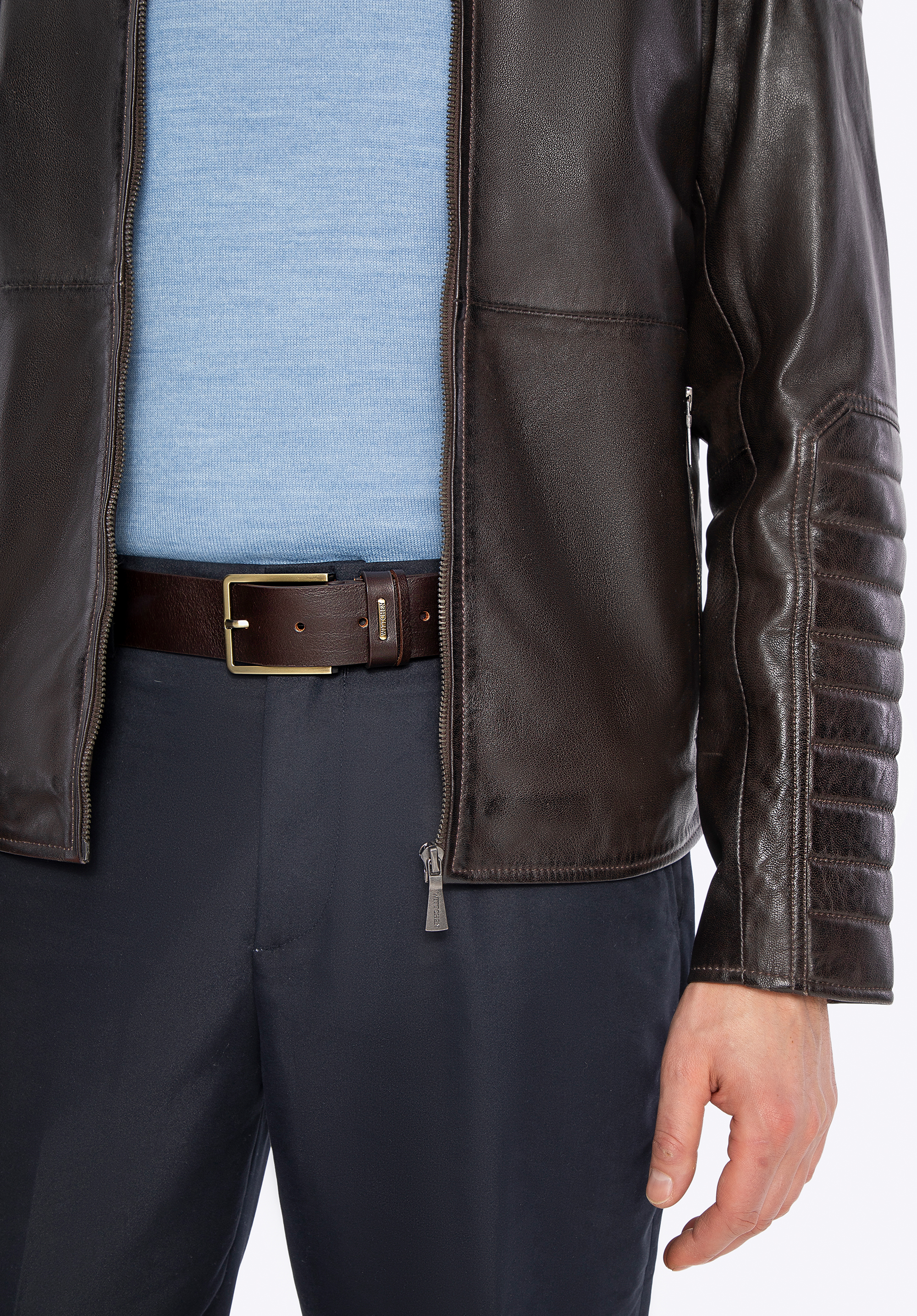 Ieși în evidență prin stil atemporal și eleganță rafinată. Această jachetă pentru bărbați , realizată din cea mai fină piele de oaie , are o textură moale și o potrivire perfectă . Logo-ul metalic pe lateral, fermoarele cu semnătură și matlasarea precisă îi evidențiază caracterul exclusivist. Detaliile rafinate, cum ar fi buzunarele funcționale – două buzunare exterioare cu fermoar și două buzunare interioare (unul cu fermoar, unul deschis) – combină luxul cu caracterul practic. Este alegerea perfectă pentru bărbații care apreciază calitatea de încredere și designul atemporal.