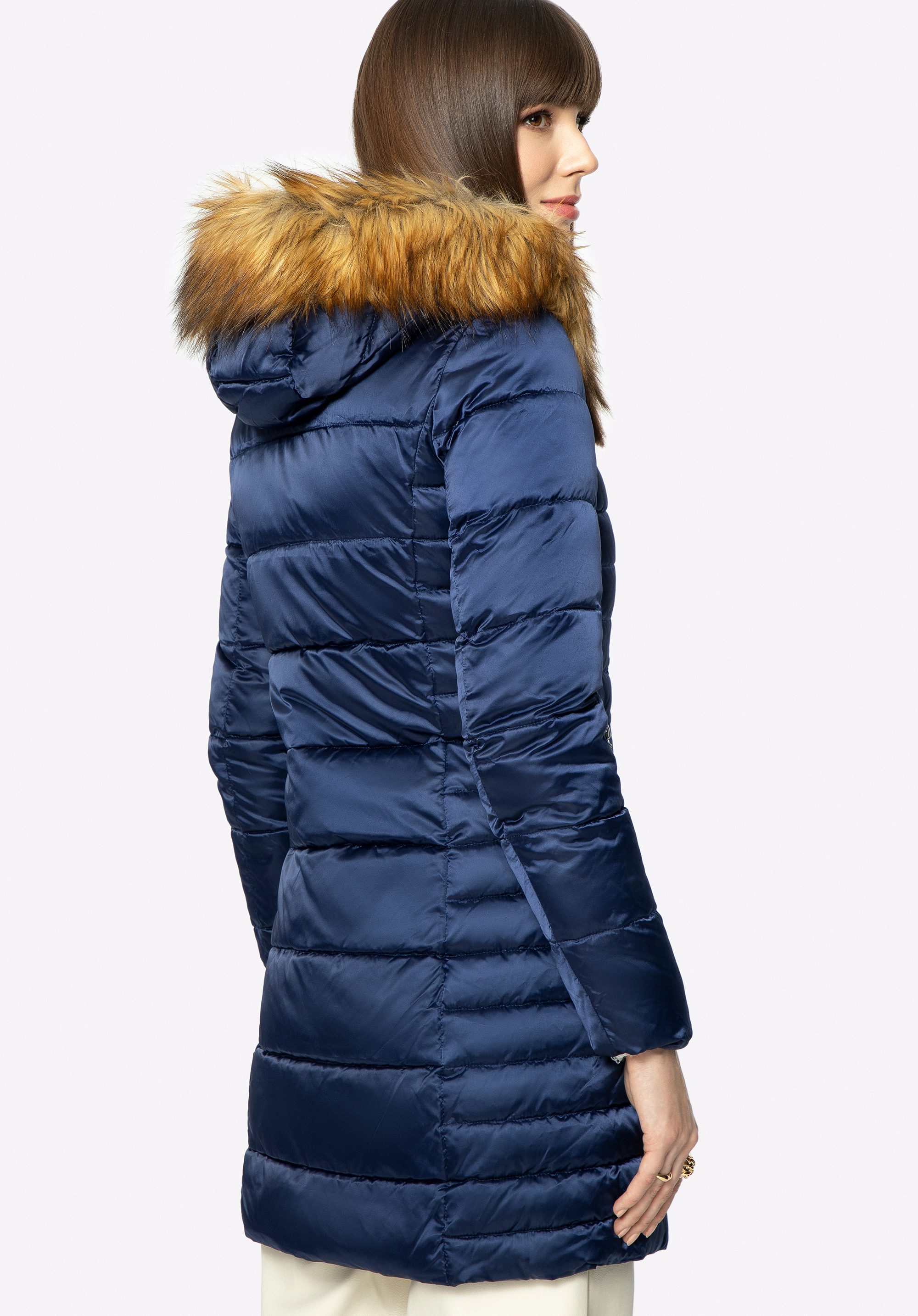 fabricată din nailon plăcut la atingere, ușor lucios.Gluga este împodobită cu blană artificială.
