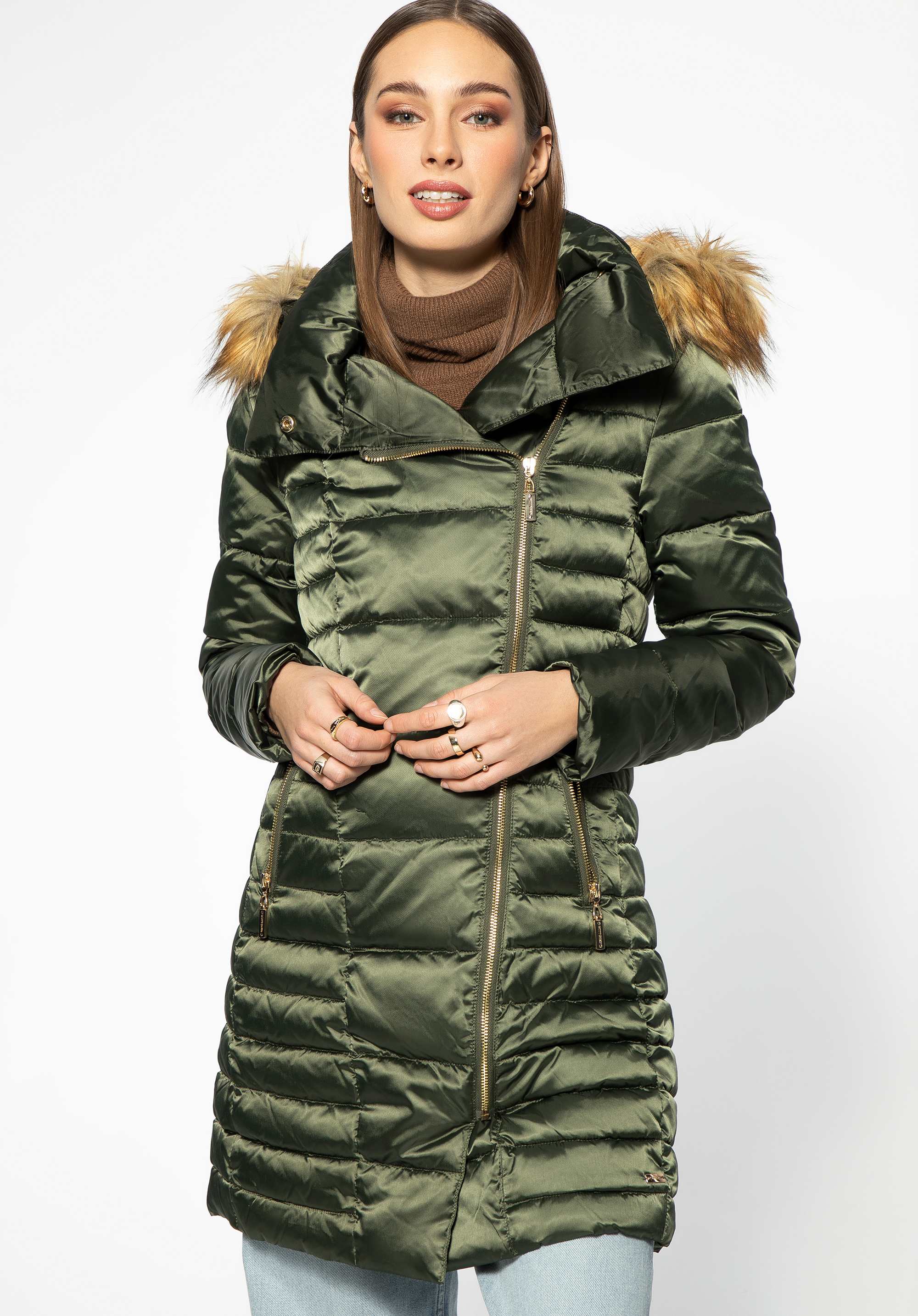 Geaca de puf pentru femei cu închidere asimetrică este o alegere atemporală pentru multe anotimpuri.