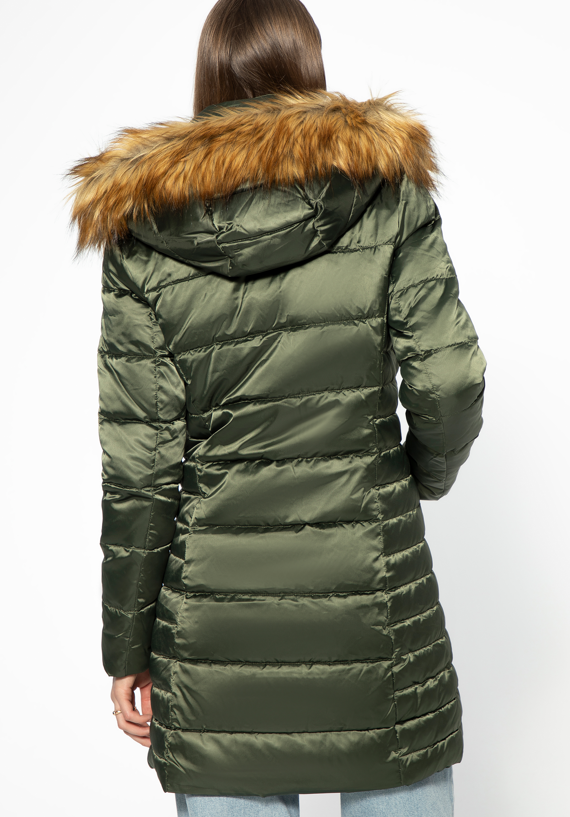 - glugă detașabilă cu blană artificială.
