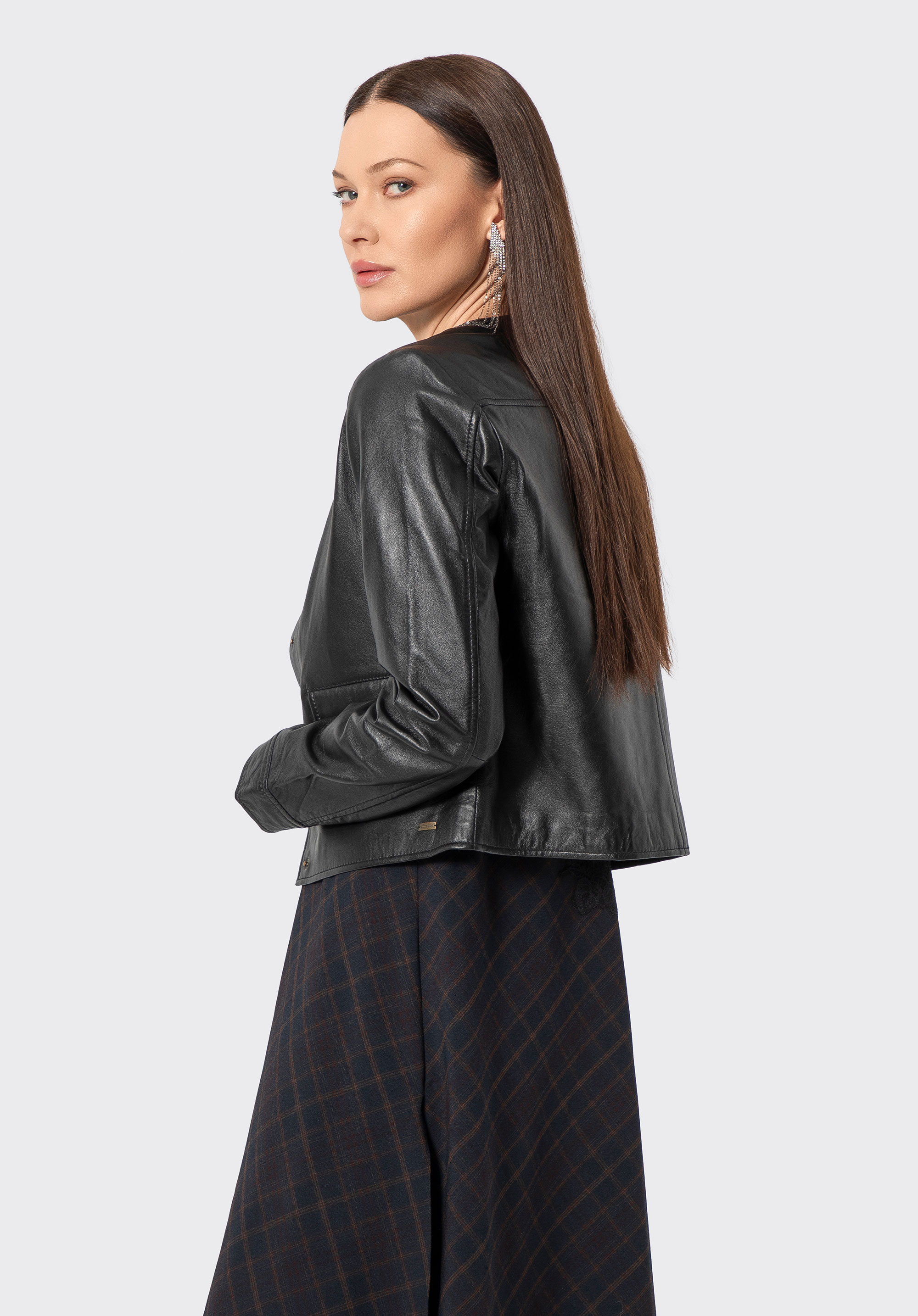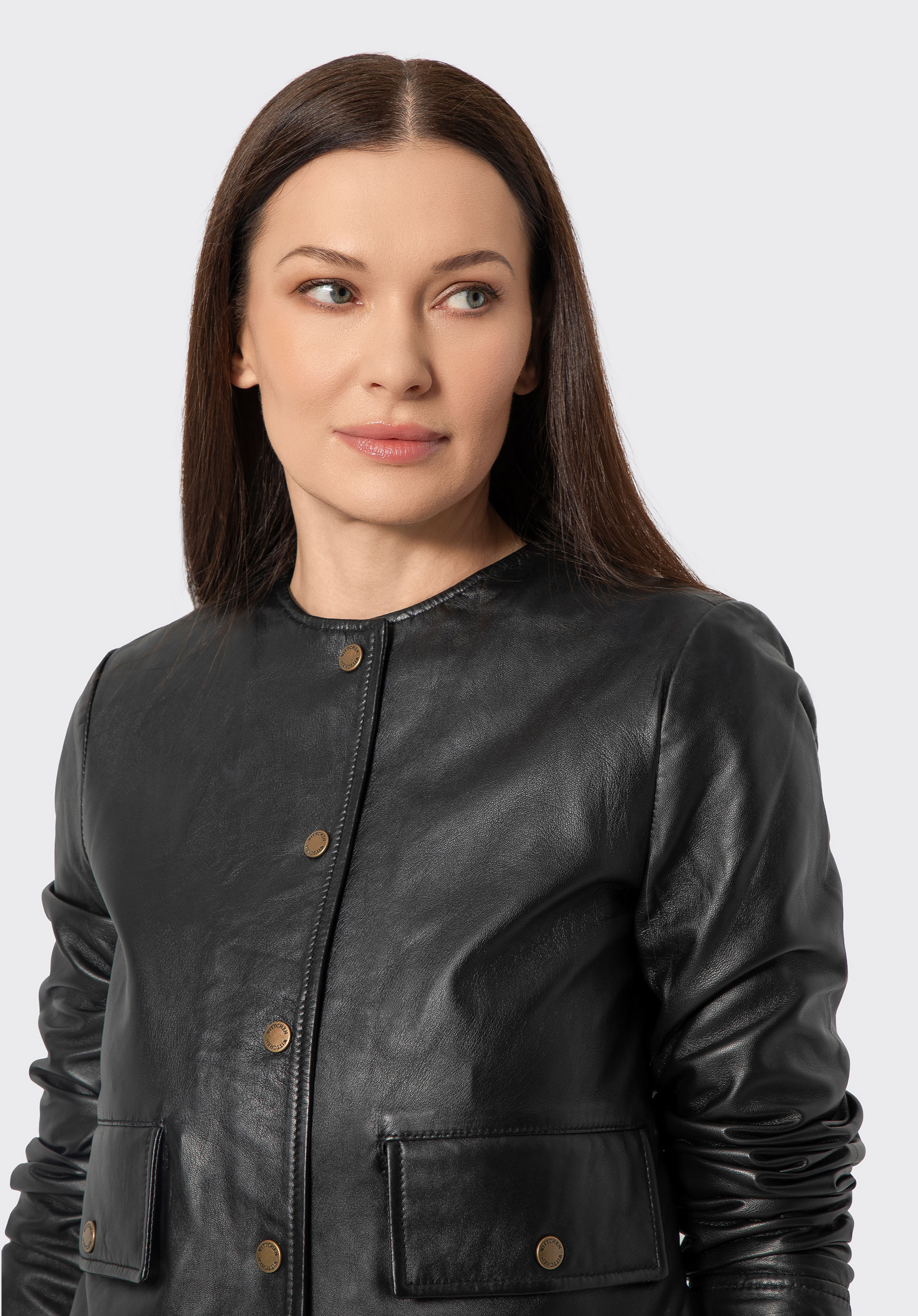 Dacă visezi la îmbrăcăminte excepțională care îmbină eleganța cu confortul, această geacă din piele naturală de oaie va fi alegerea ideală. Croiala simplă asigură libertatea completă de mișcare, iar detaliile subtile, cum ar fi nasturii metalici cu logo-ul producătorului, subliniază caracterul luxos. Buzunarele verticale cu clape cu capse sunt un element funcțional care îi conferă șic urban. Este o propunere ideală, care îmbină clasicul cu accentele moderne – perfectă atât pentru zi cu zi, cât și pentru ocazii speciale.