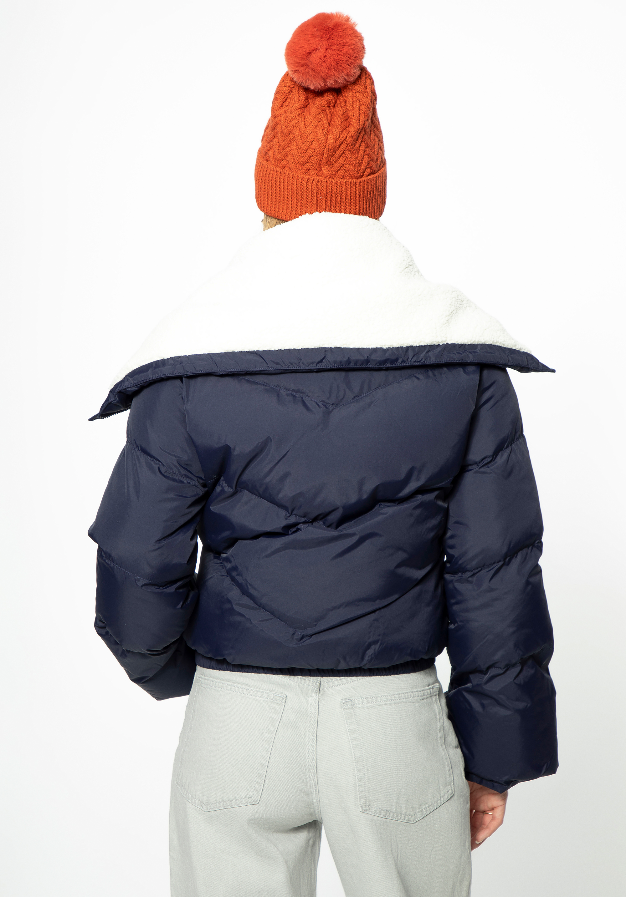 Geacă puffer cu guler de blană artificială Teddy bleumarin