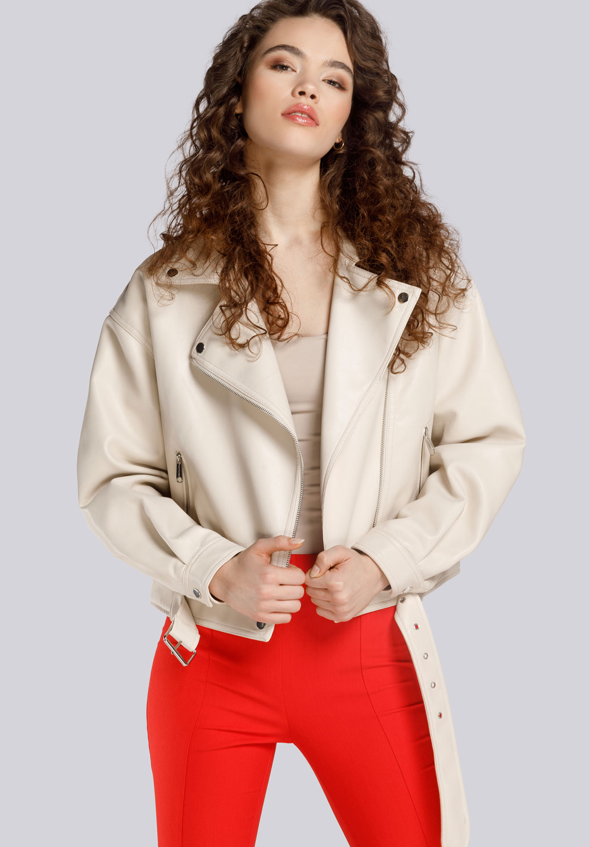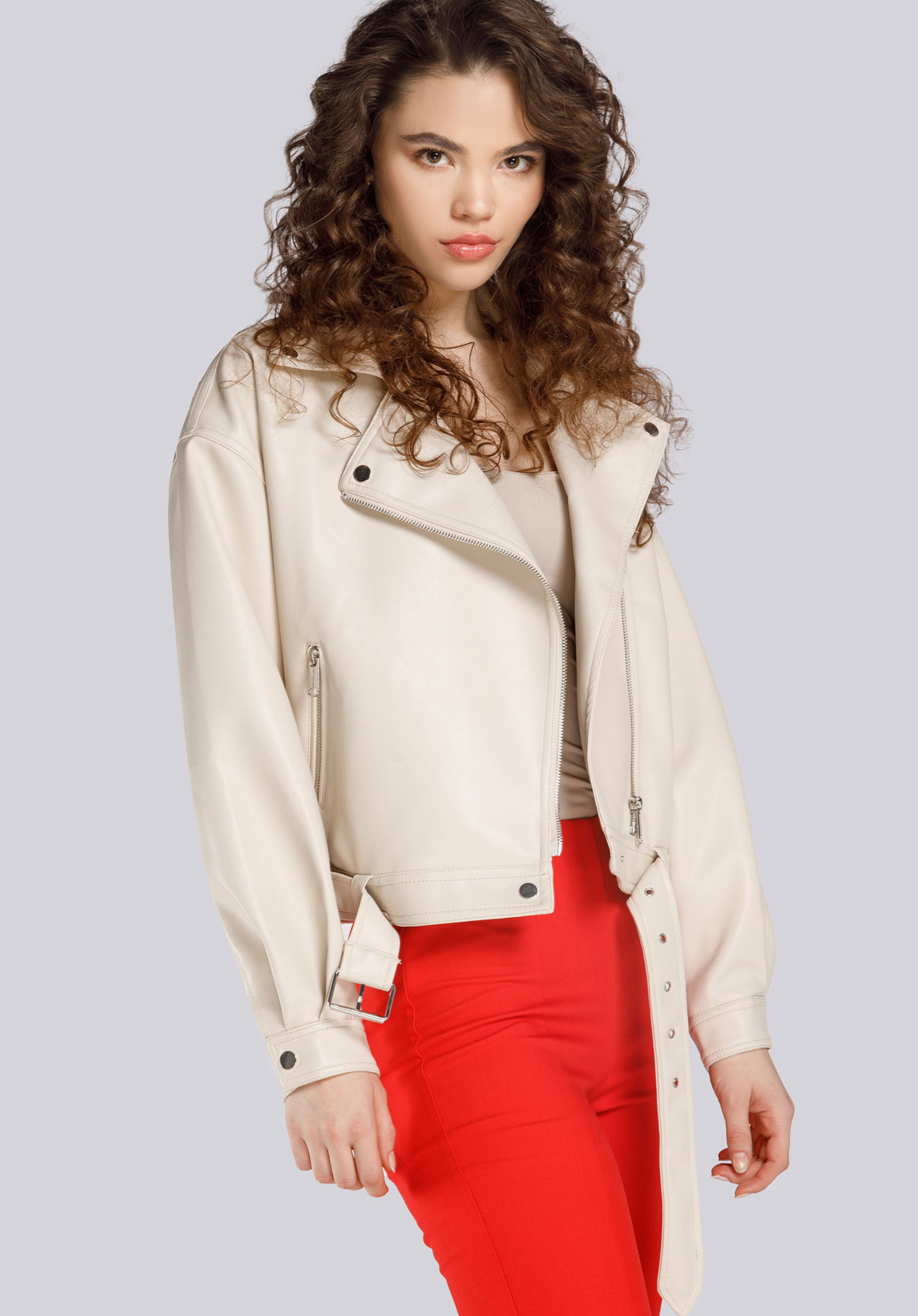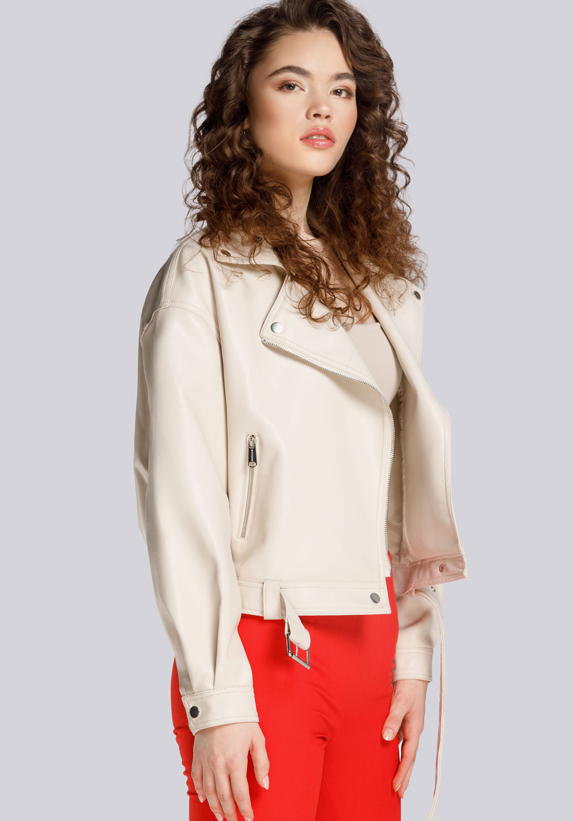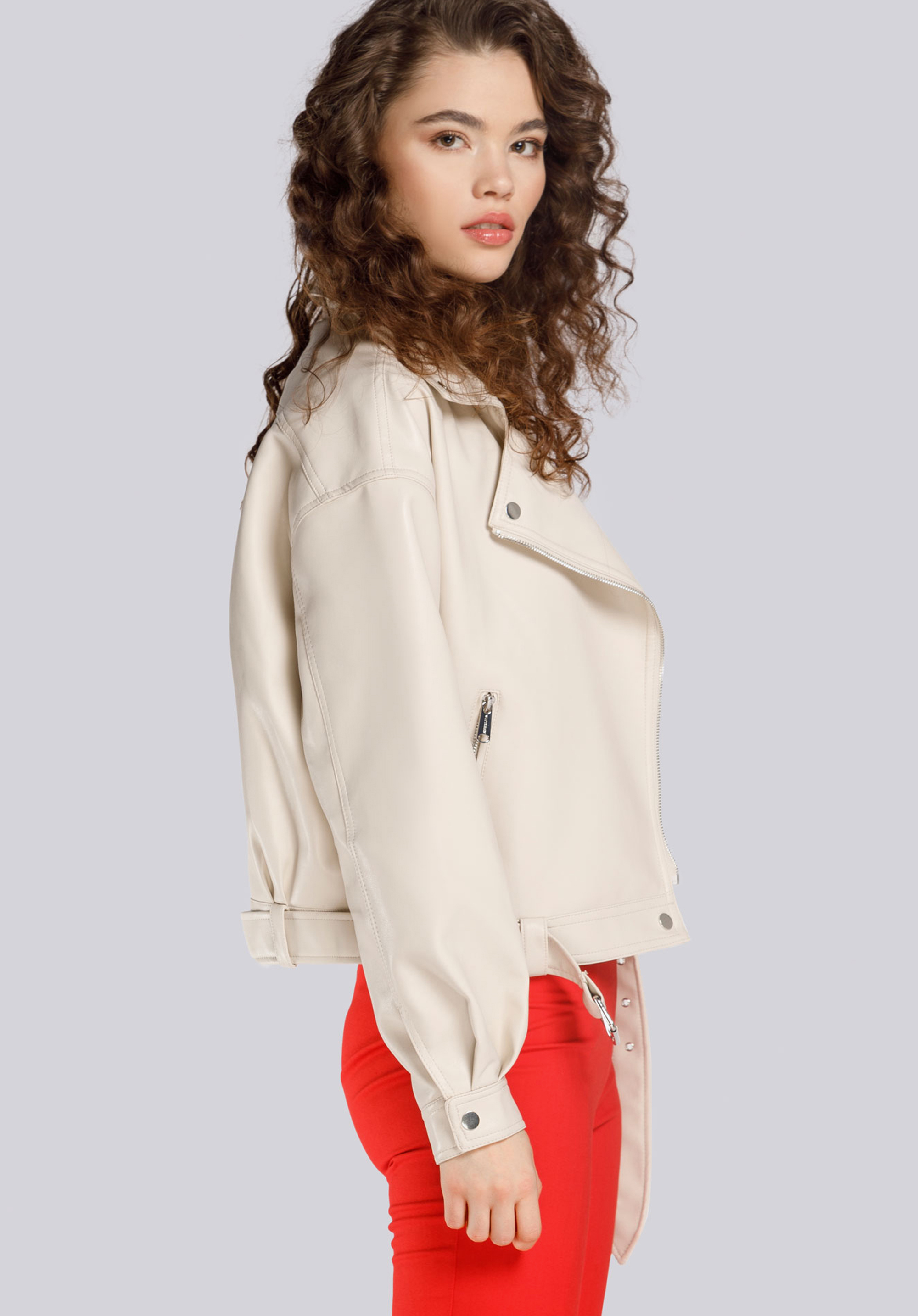 Cureaua reglabilă cu cataramă și accesorii metalice poate fi purtată sau scoasă, în funcție de caracterul stilizării. Geaca ramones de damă oversize cu curea va fi perfectă atât la plimbare, cât și la o ieșire seara cu prietenii.