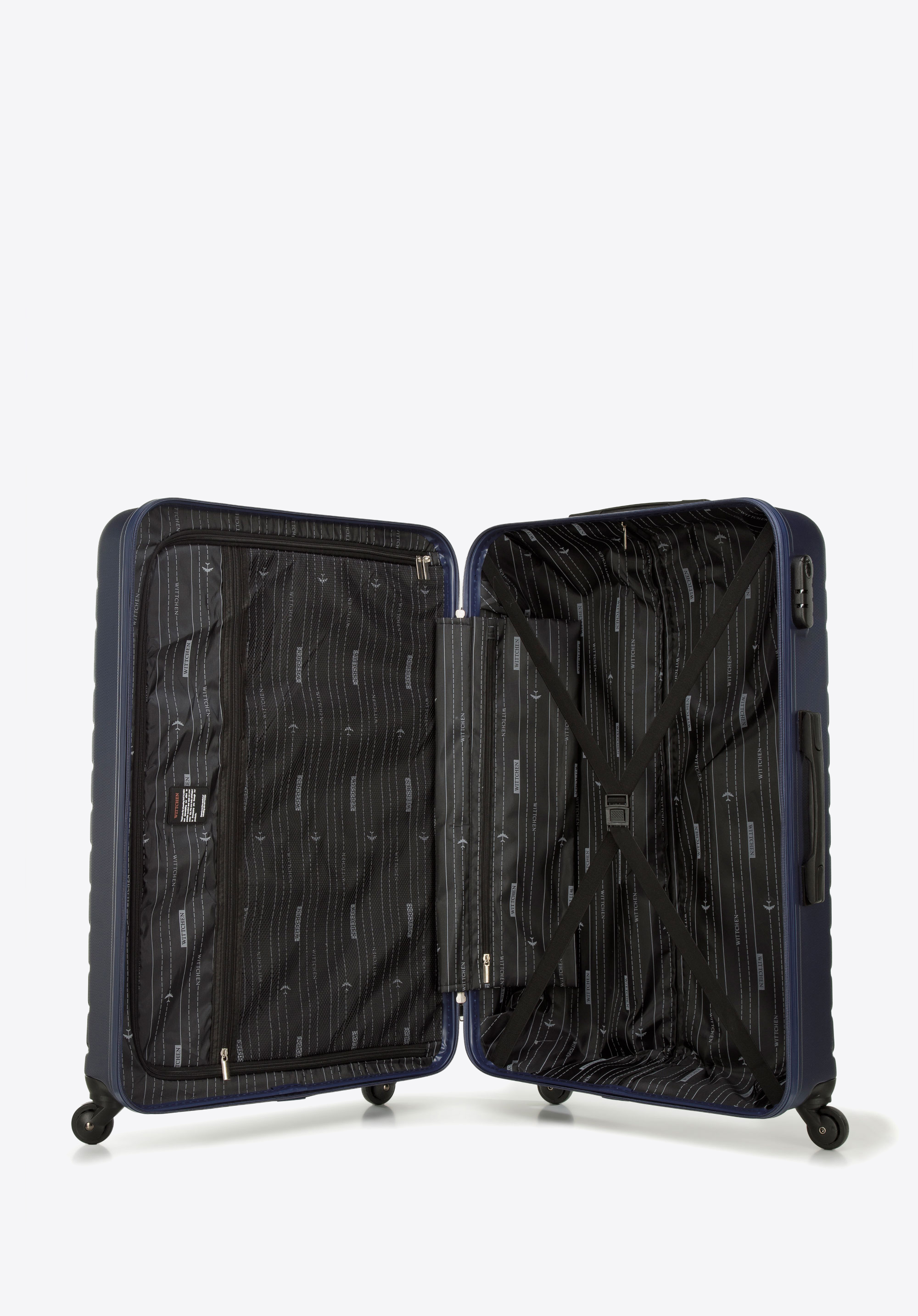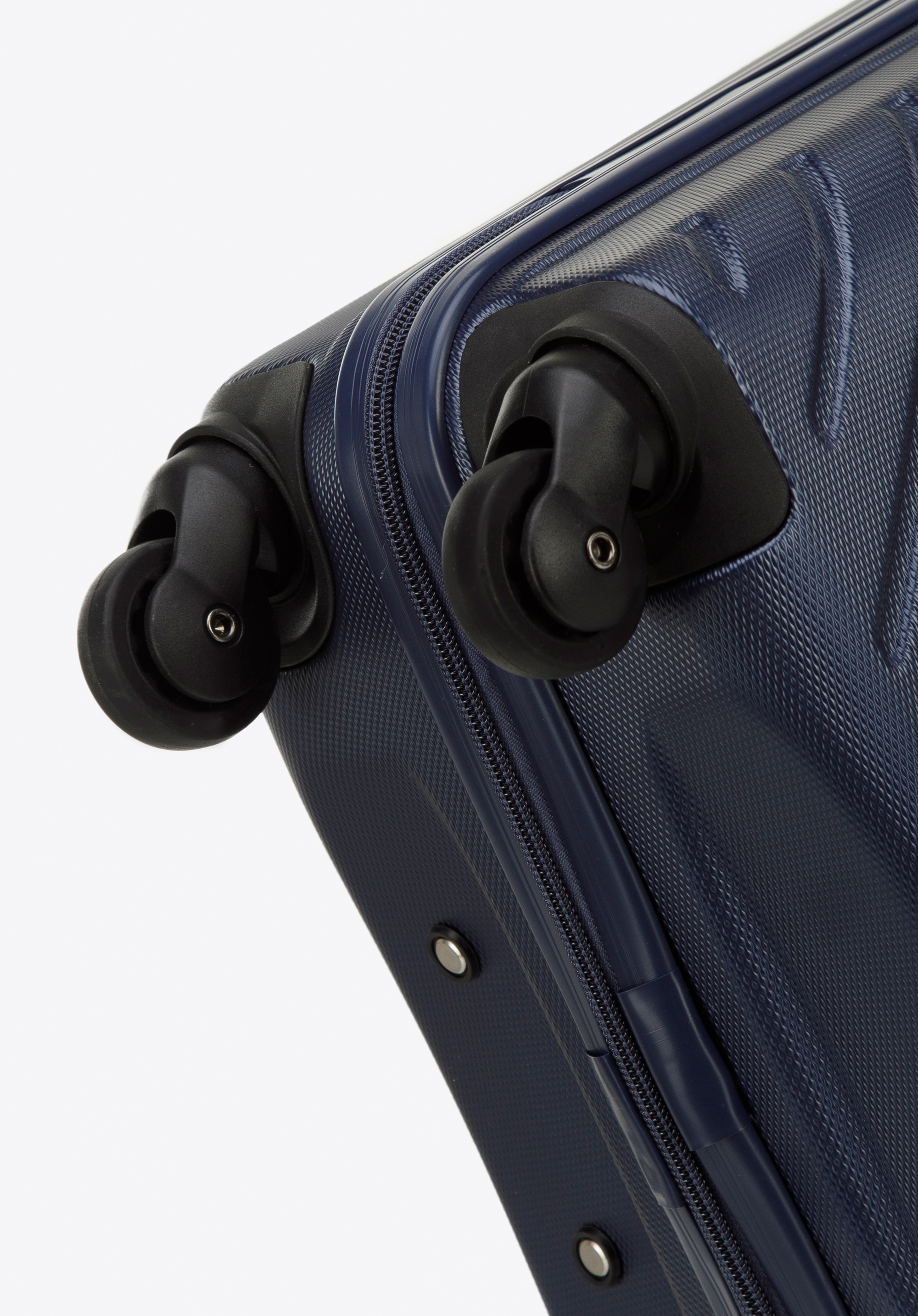 Valiza mareîn ABS cu relief geometric este o alegere excelentă pentru multe călătorii lungi de vacanță.