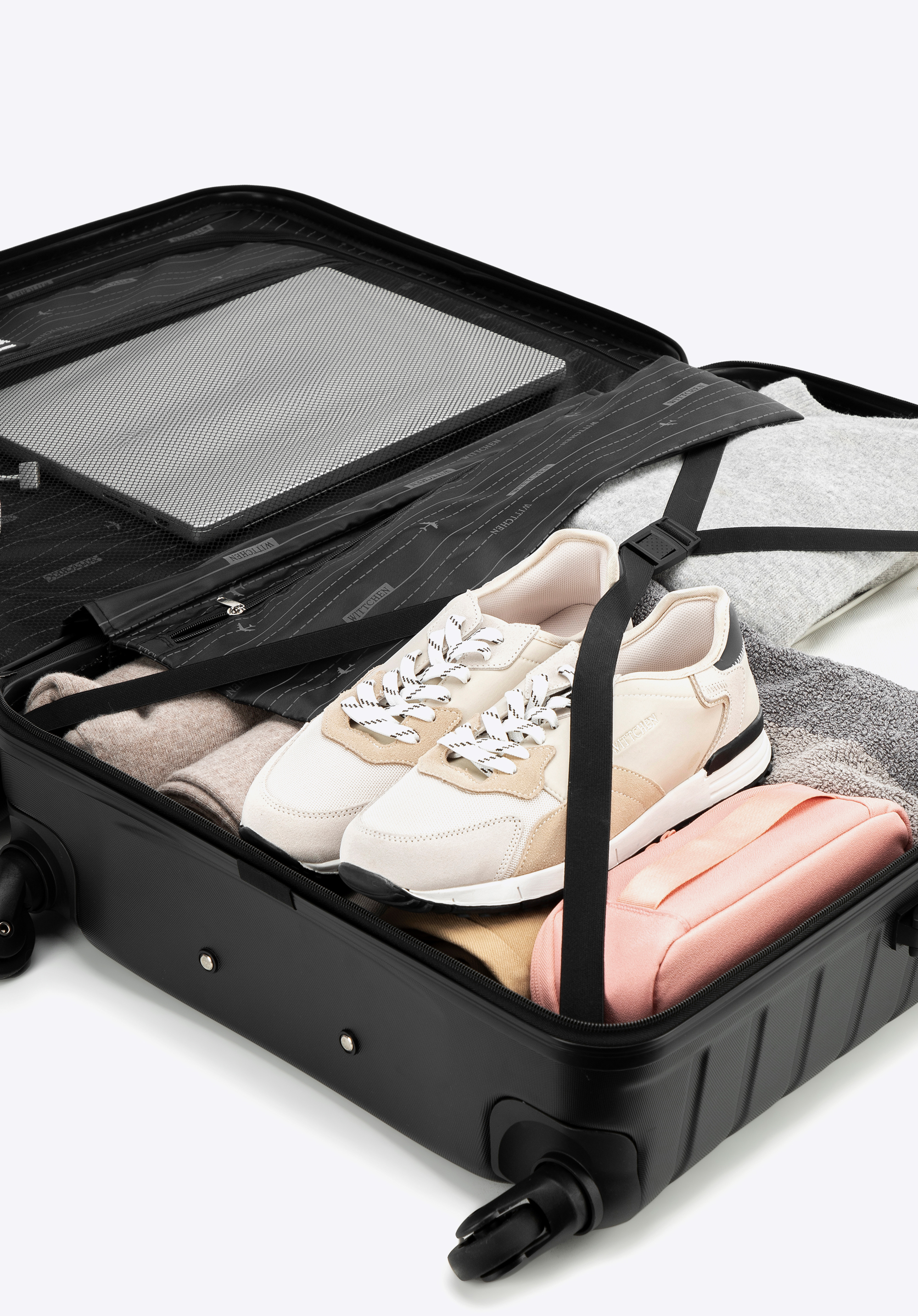 - Compartiment principal cu curele elastice de fixare pentru a asigura hainele împotriva mișcării;