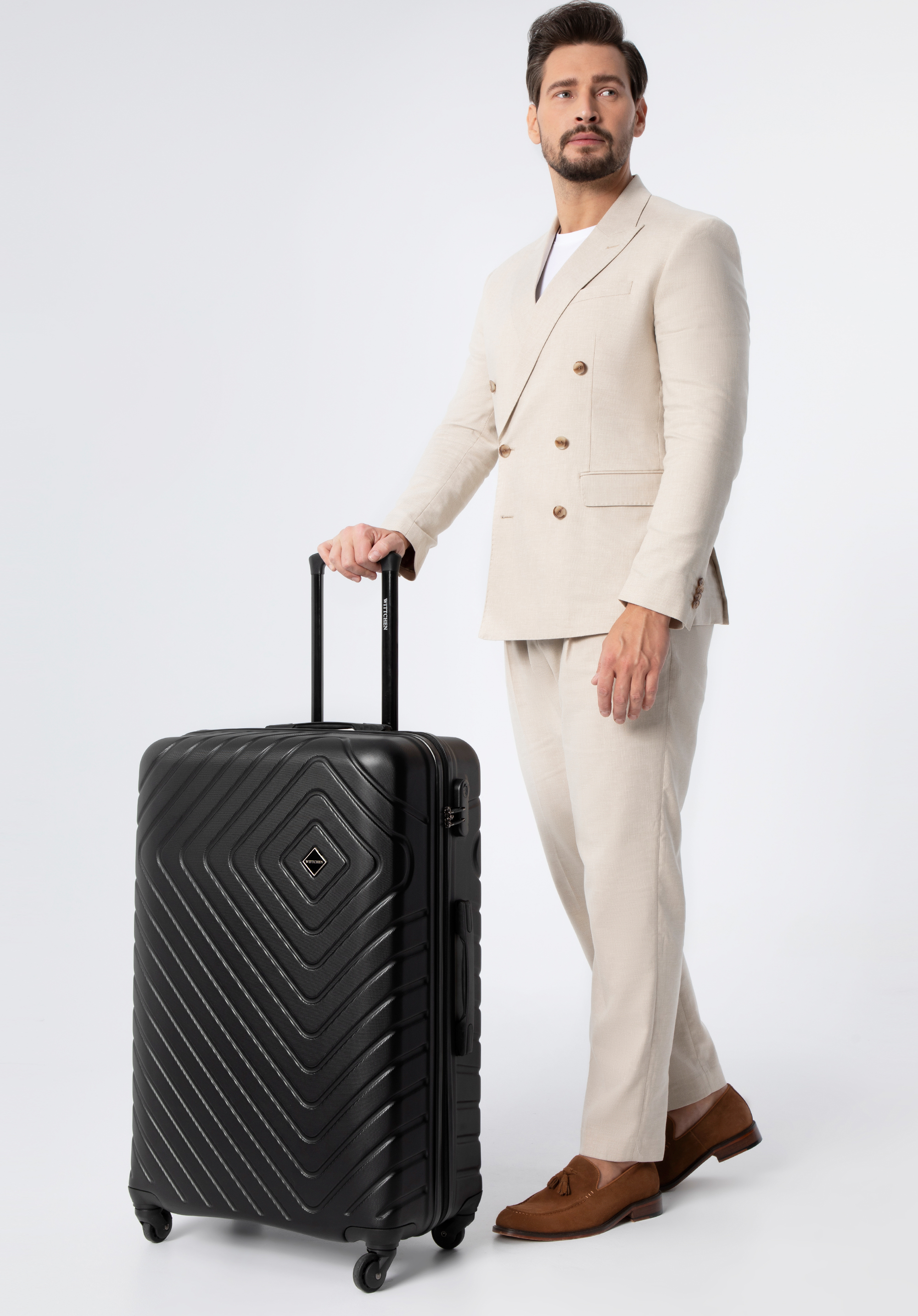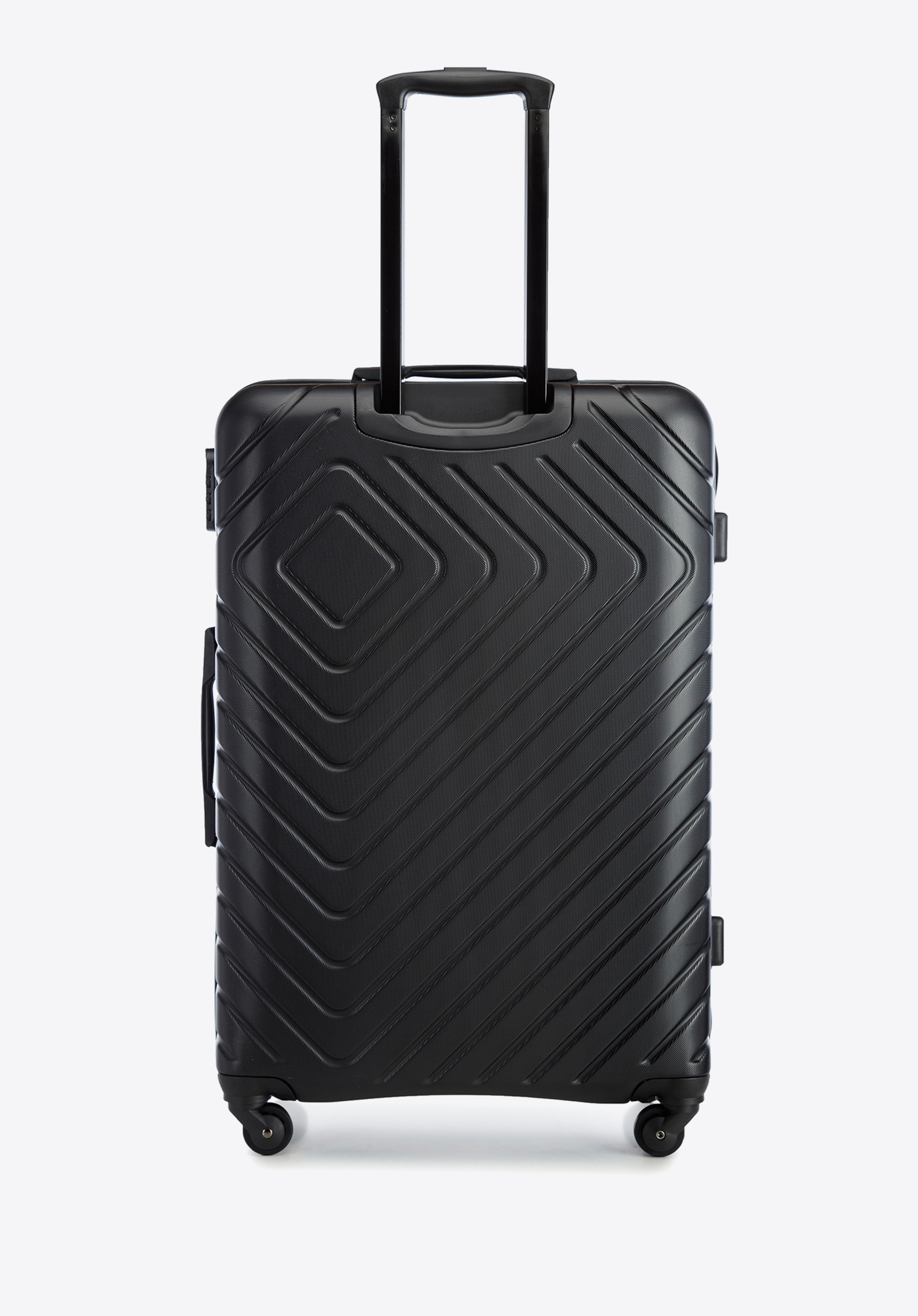 Valiza mareîn ABS cu relief geometric este o alegere excelentă pentru multe călătorii lungi de vacanță.