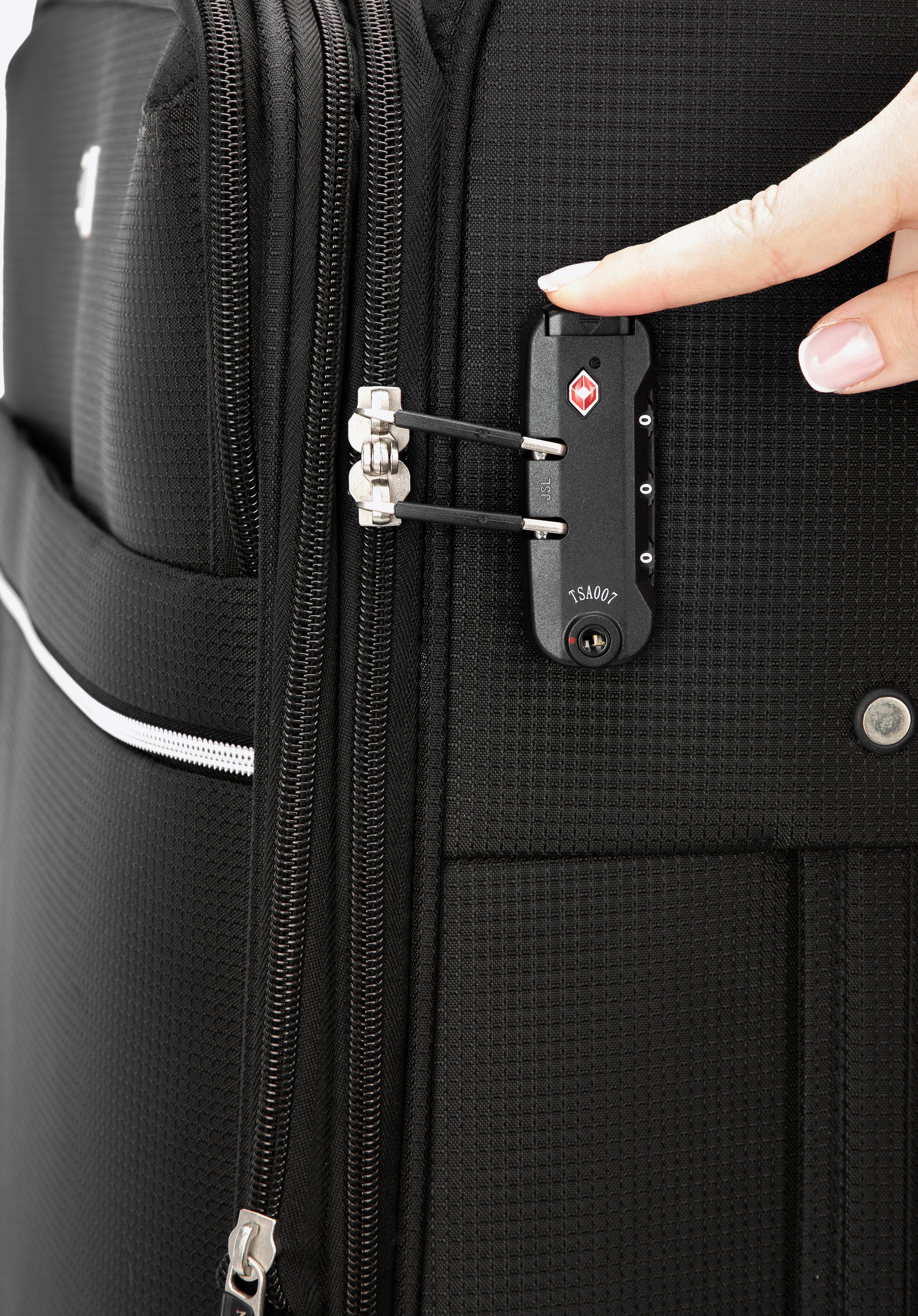 - lacăt cu cod TSA - foarte util în cazul inspectării bagajelor de către vamă - garantează deschiderea neinvazivă a valizei și reînchiderea acesteia, fără a deteriora broasca;