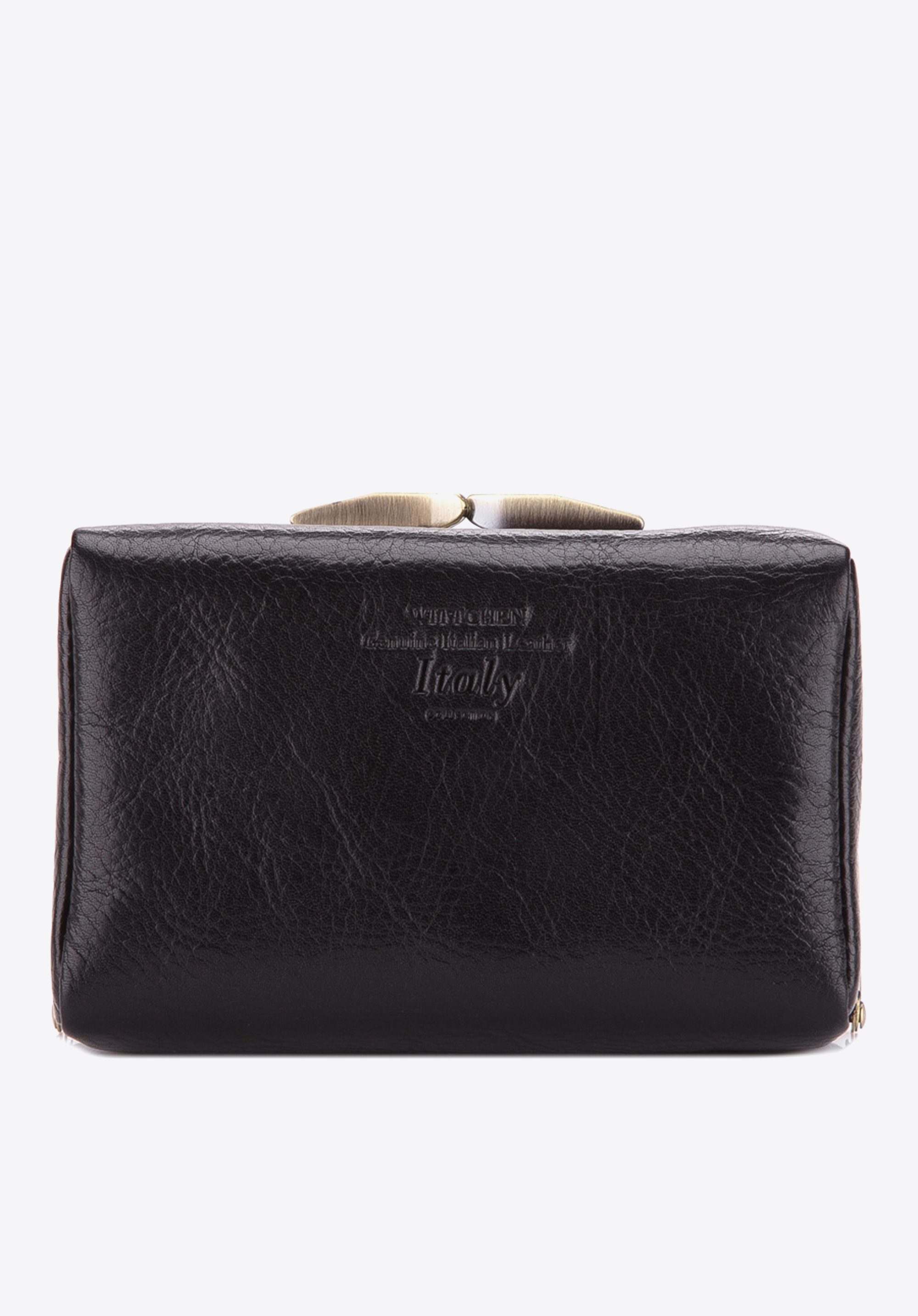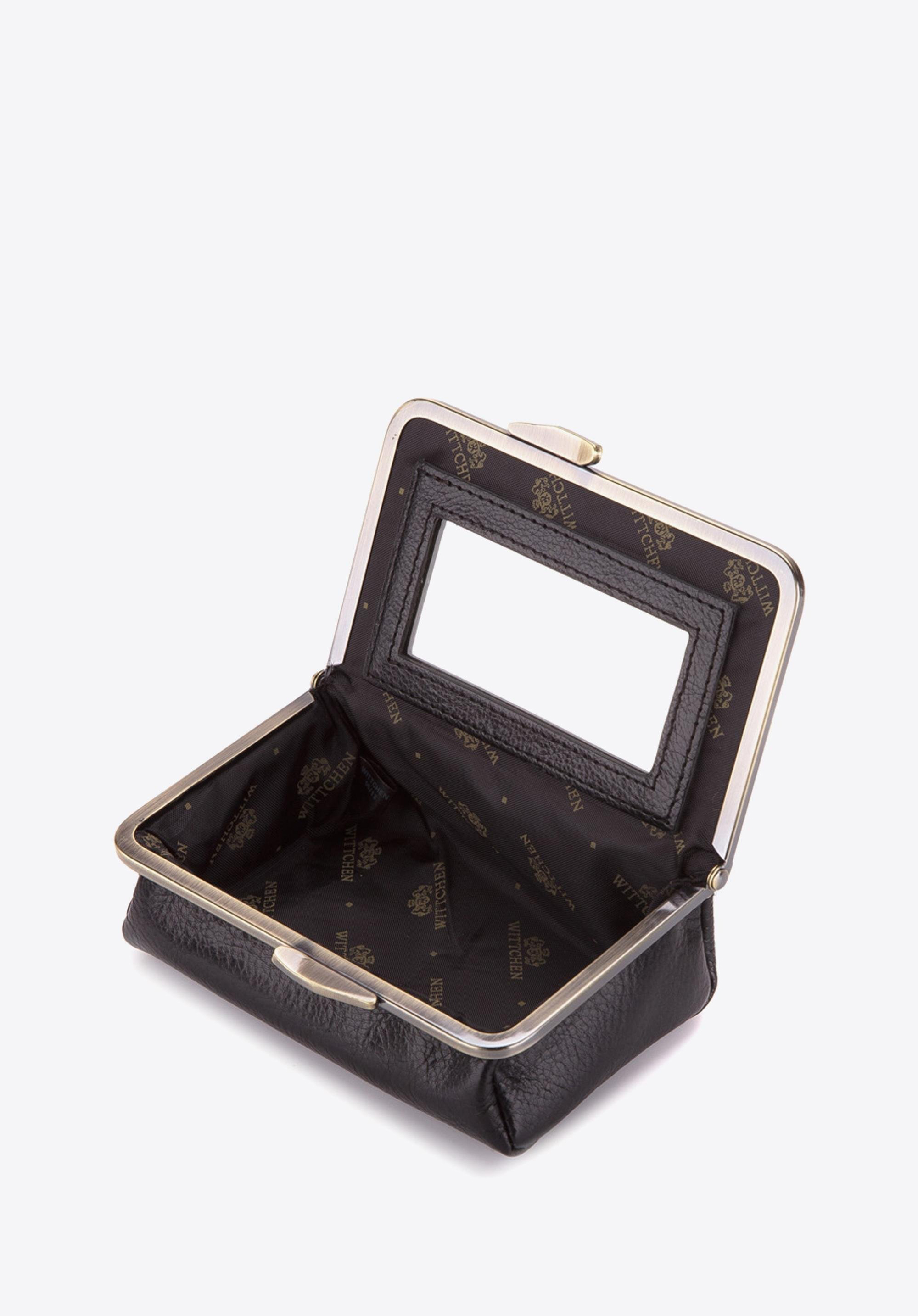 Geanta cosmetică elegantă fabricată din piele de vițel cu un luciu delicat este un accesoriu practic și stilat.Închiderea comodă cu cadru de culoarea aurului vechi îi conferă un aspect șic incomparabil.