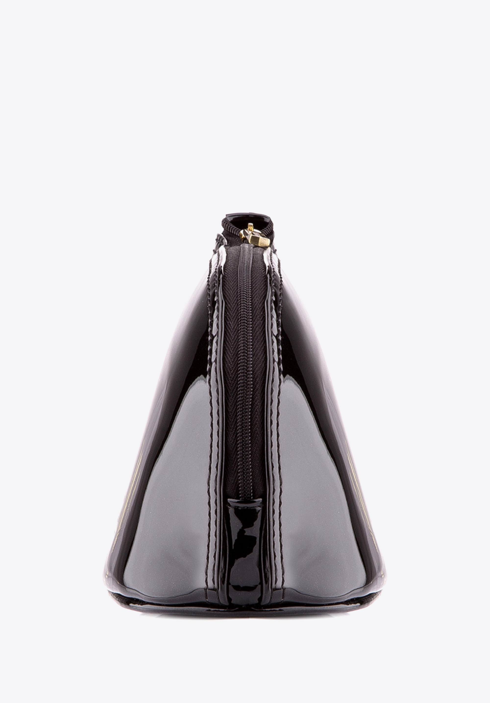 Geantă de cosmetice elegantă pentru femei cu o forma subtila este un model care iese in evidenta din multime.Elegant piele lacuita iar elementele metalice de culoarea aurului vechi subliniază aspectul sofisticat.Accesoriul perfect pentru a sublinia clasa și bunul gust.