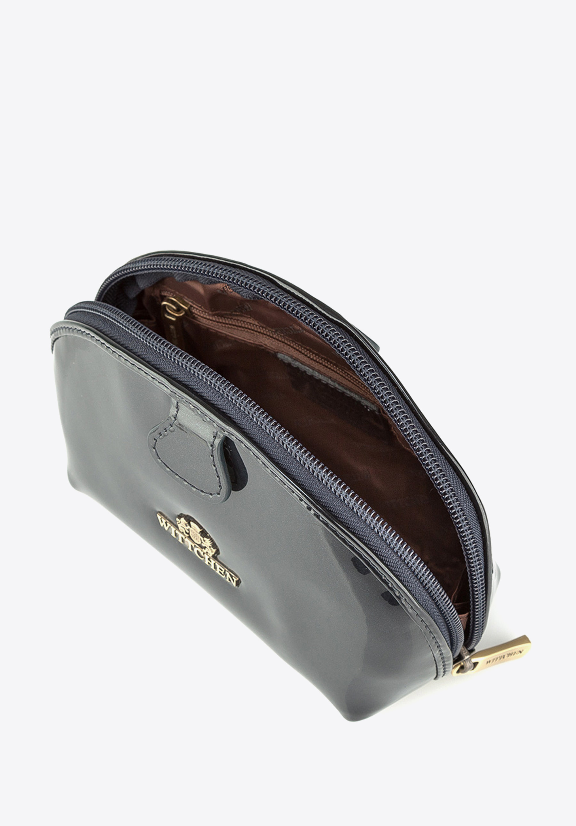 Această geantă cosmetică micărealizată dinpiele lăcuită este un accesoriu, al cărui aspect unic va atrage, cu siguranță, atenţia. Forma comodă șiînchiderea practică cu fermoar reprezintă avantaje suplimentare ale acestui model.